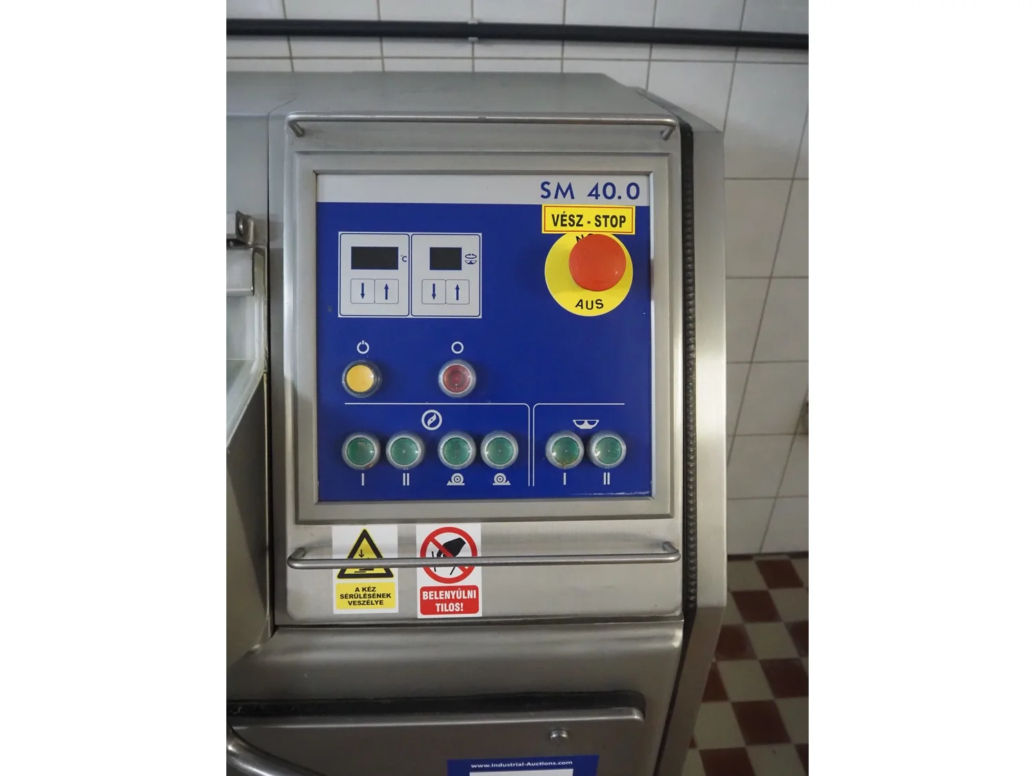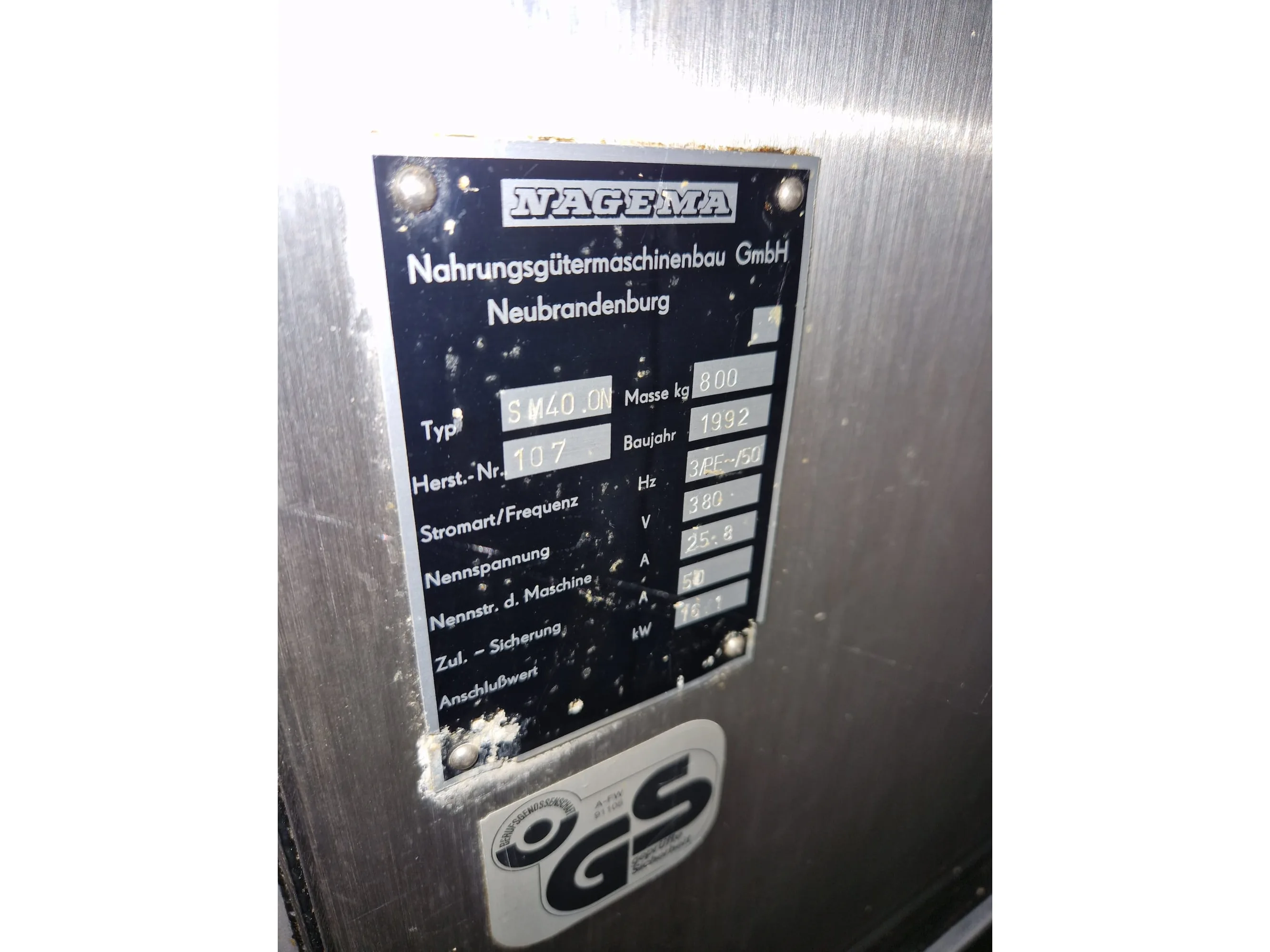 Nagema cutter, type: SM40.0N, number: 107, year of construction: 1992, 380 V, 3 Ph, 50 Hz, 25.8 A, 16.1 kW, s/s bowl, volume: 40 liter, dimensions: 1300 mm x 900 mm x 1200 mm.