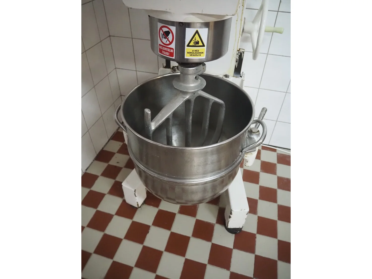 Kon-Techn Kft mixer with paddle, type: MH60A, year of construction: 1998, 400 V, 4.3 A, s/s bowl, inside dimensions: Ø 450 mm x 420 mm, total dimensions: 800 mm x 670 mm x 1350 mm.
