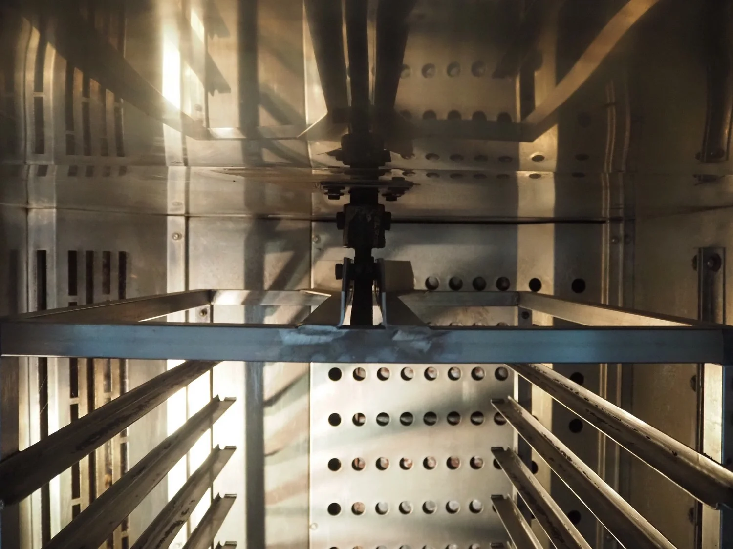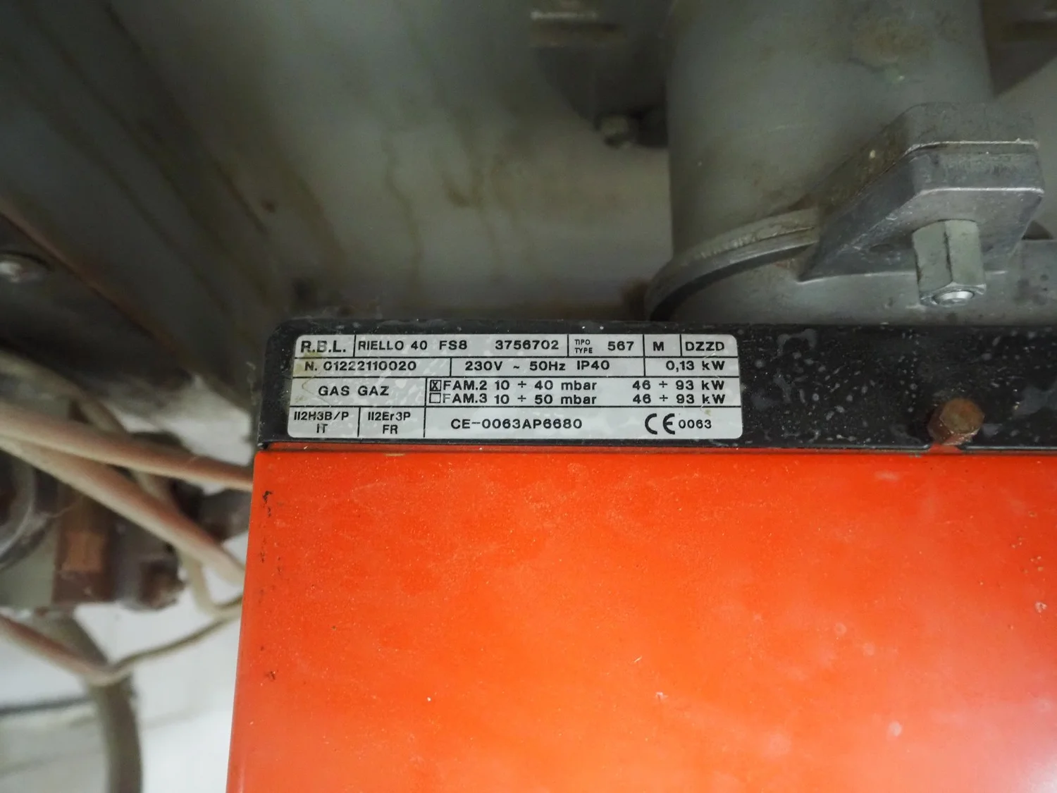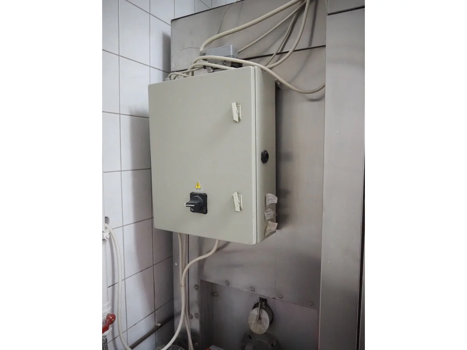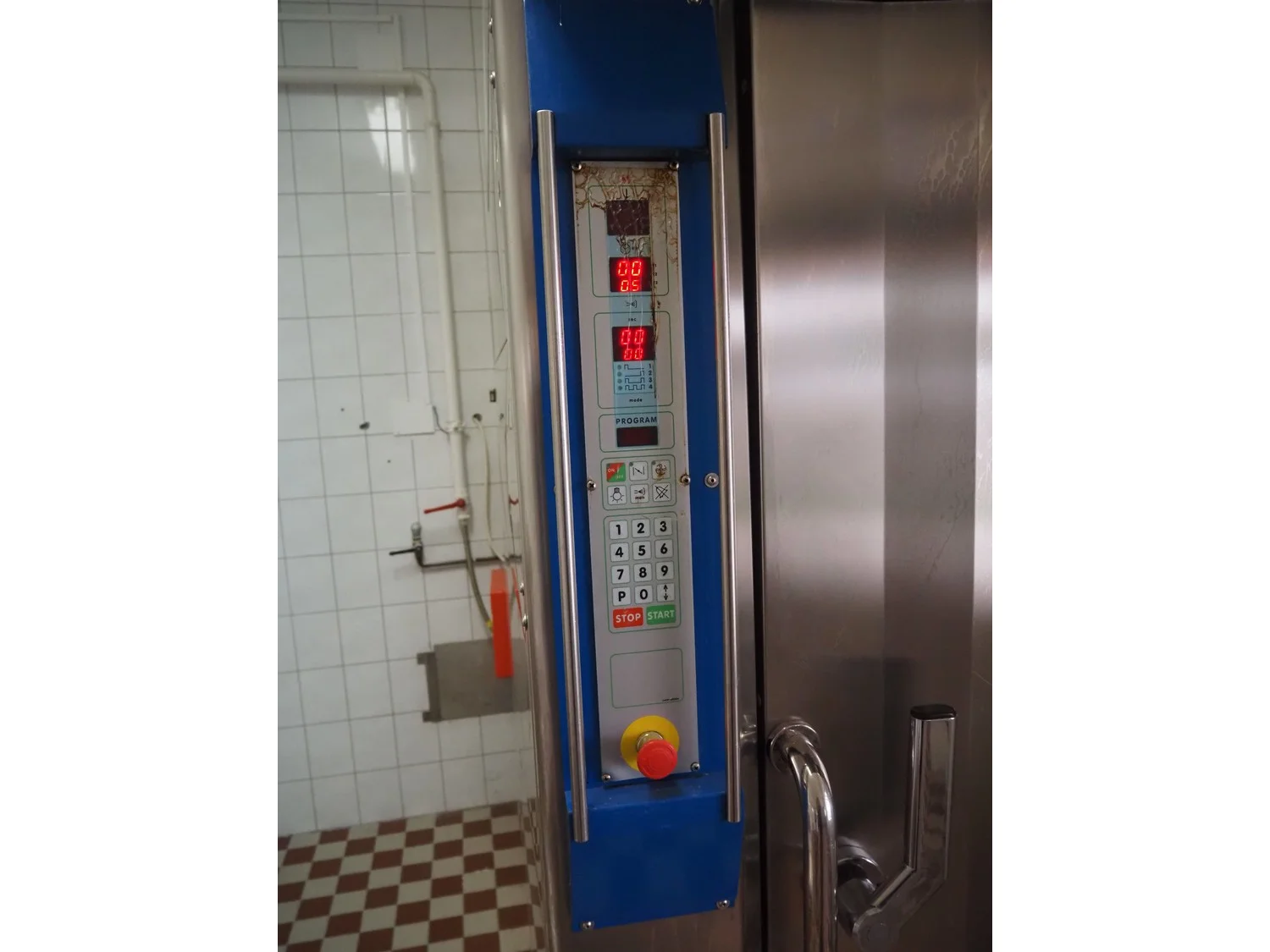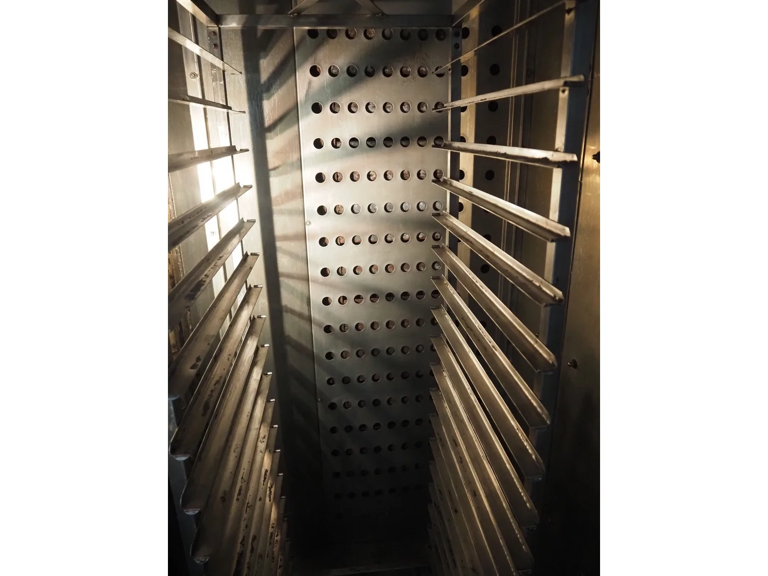 Ideal rotary oven for 1 trolley, gas heated, Riello burner, model: Riello 40 FS8, inside dimensions: 1100 mm x 970 mm x 1870 mm, total dimensions: 2500 mm x 1400 mm x 2650 mm.