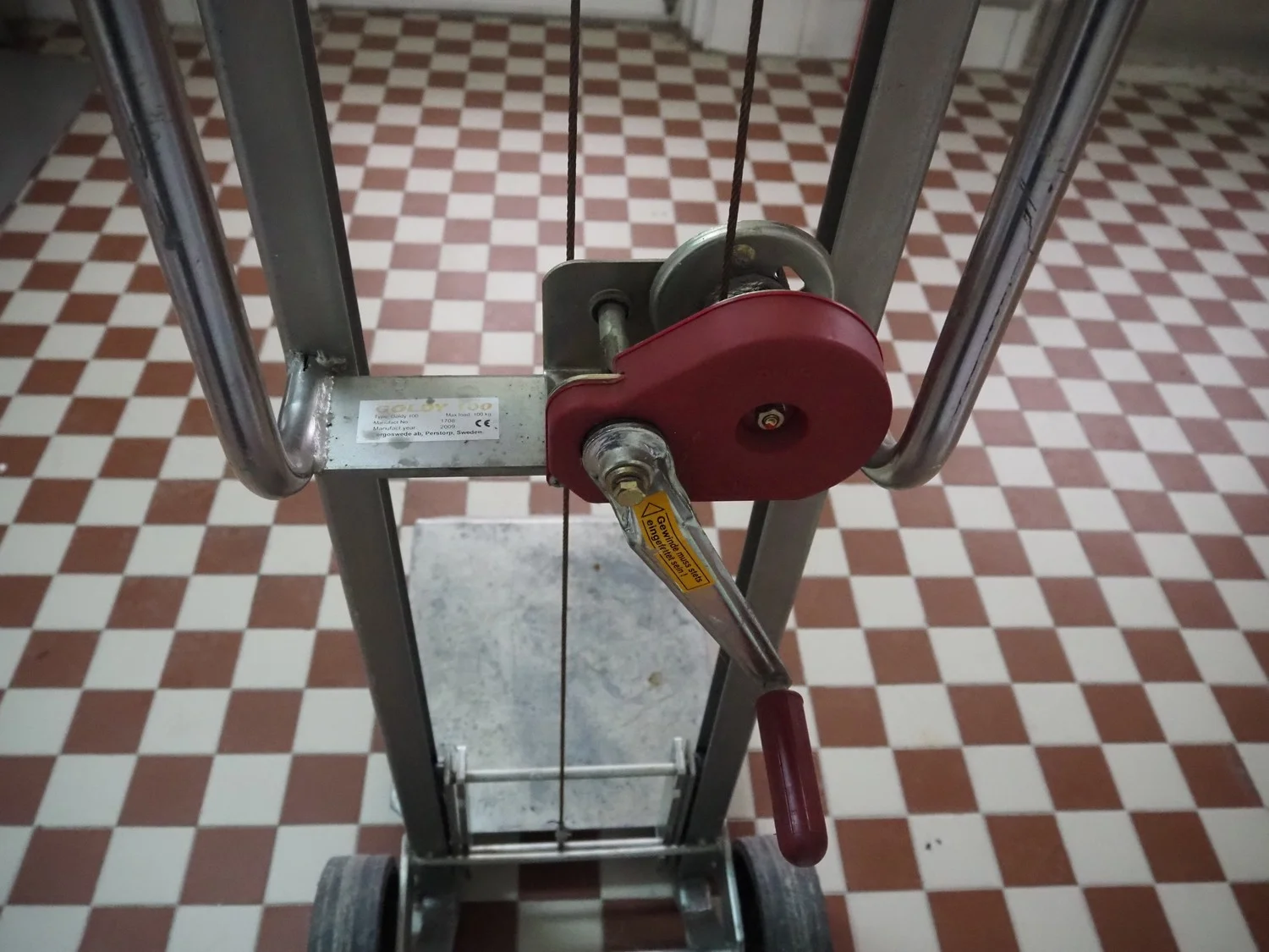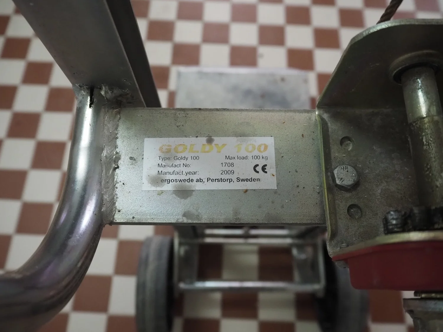 Ergoswede AB mobile lifter for boxes, type: Goldy 100, manufacturing number: 1708, year of construction: 2009, capacity: 100 kg, dimensions: 800 mm x 500 mm x 1600 mm.