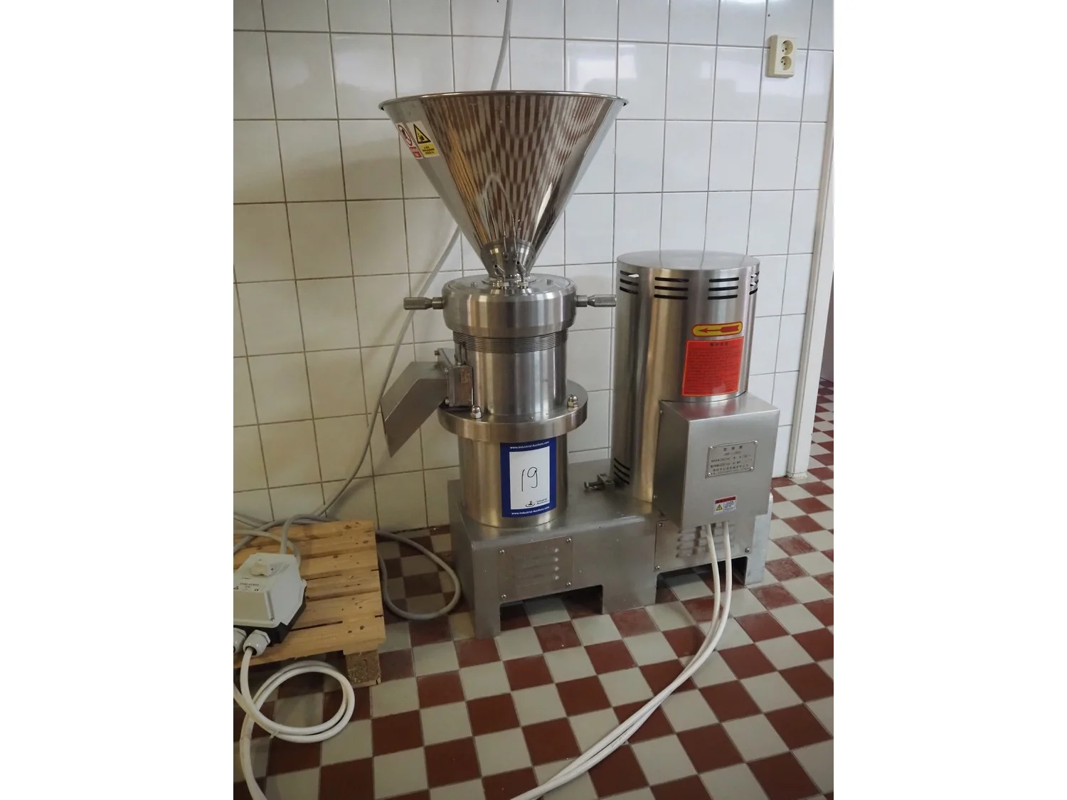 Langfang Huitong Machinery colloid mill, model: JMS-180X, 380 V, 18.5 kW, dimensions: 1100 mm x 550 mm x 1230 mm.