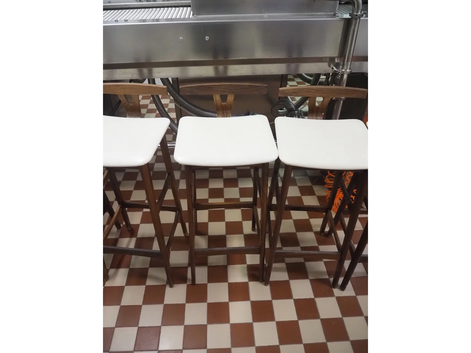 5 wooden stools, dimensions: (5x) 370 mm x 370 mm x 880 mm.