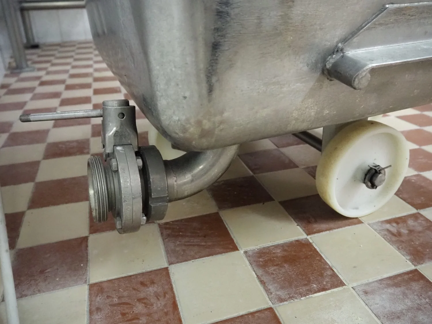 2 s/s meat bins with drain, with 1 lid, volume: 200 liter.