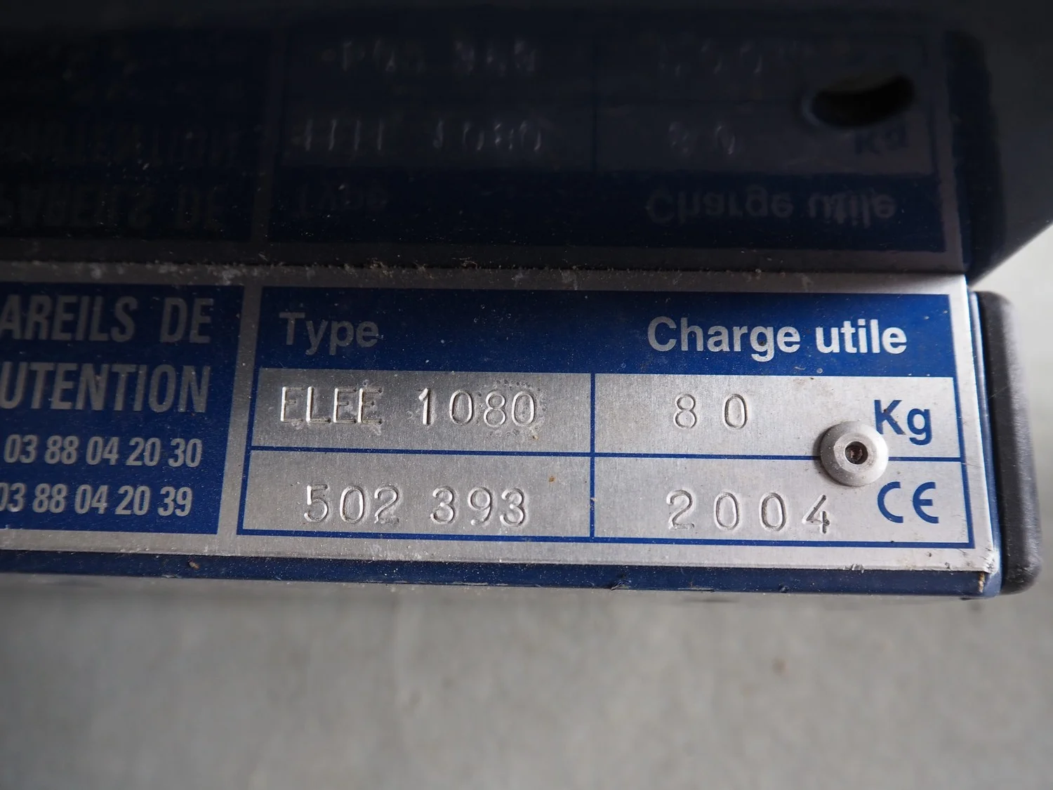 Expresso lifter for rolls of film, type: Elee 1080, serial number: 502 393, year of construction: 2004, weight: 80 kg, lifting height: 2100 mm, total dimensions: 900 mm x 600 mm x 2310 mm.