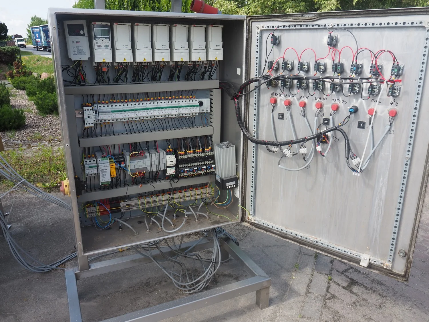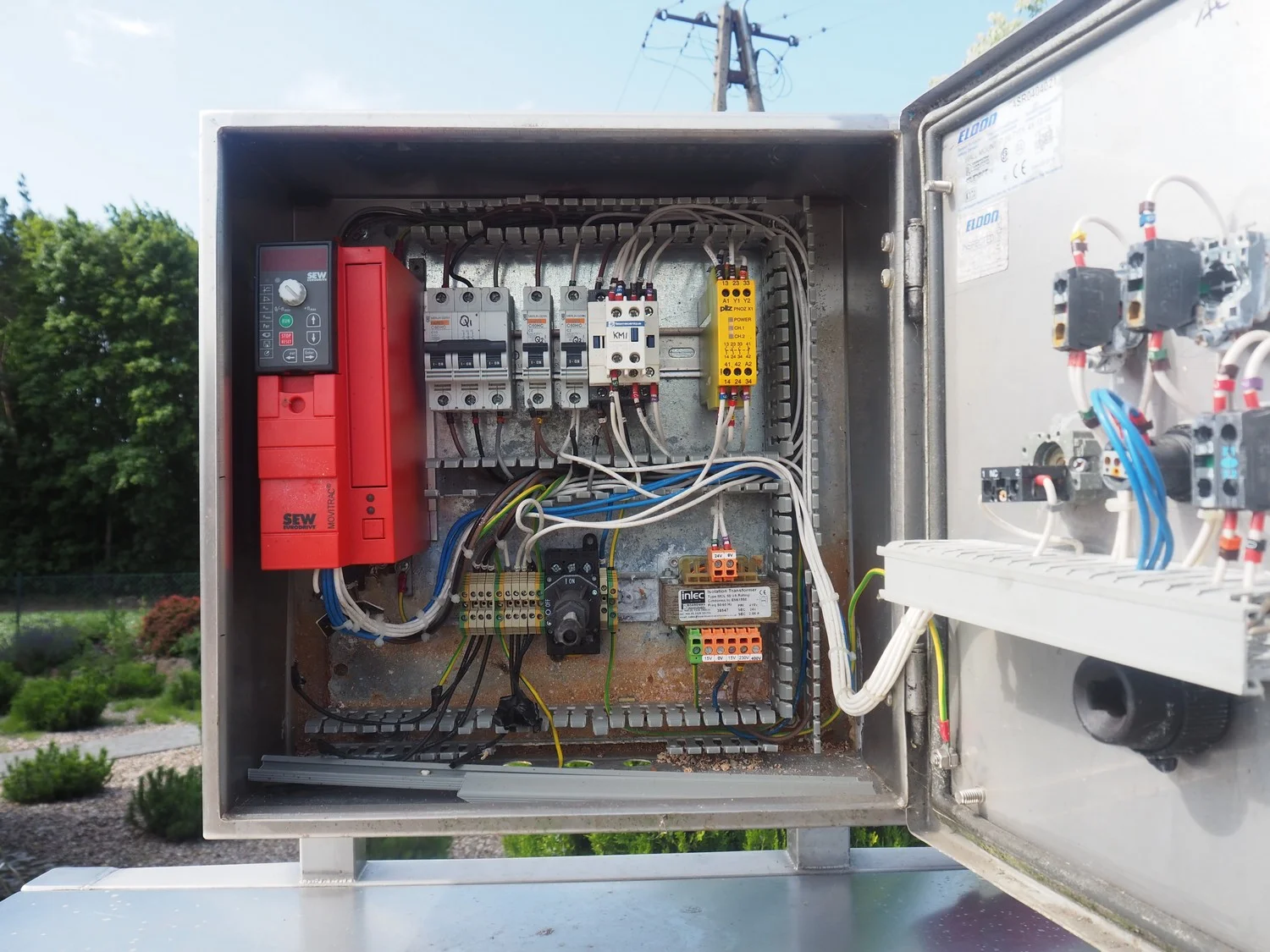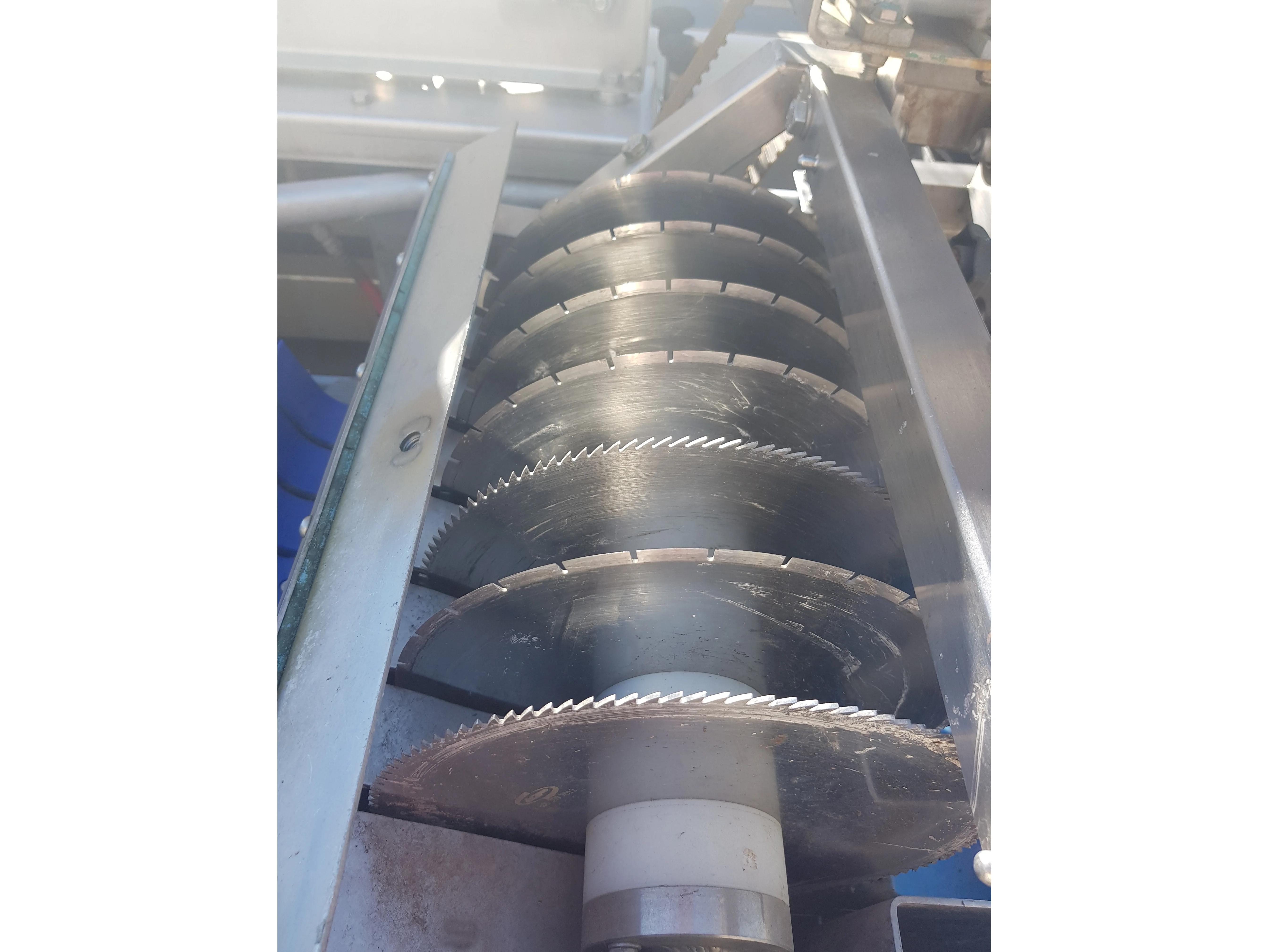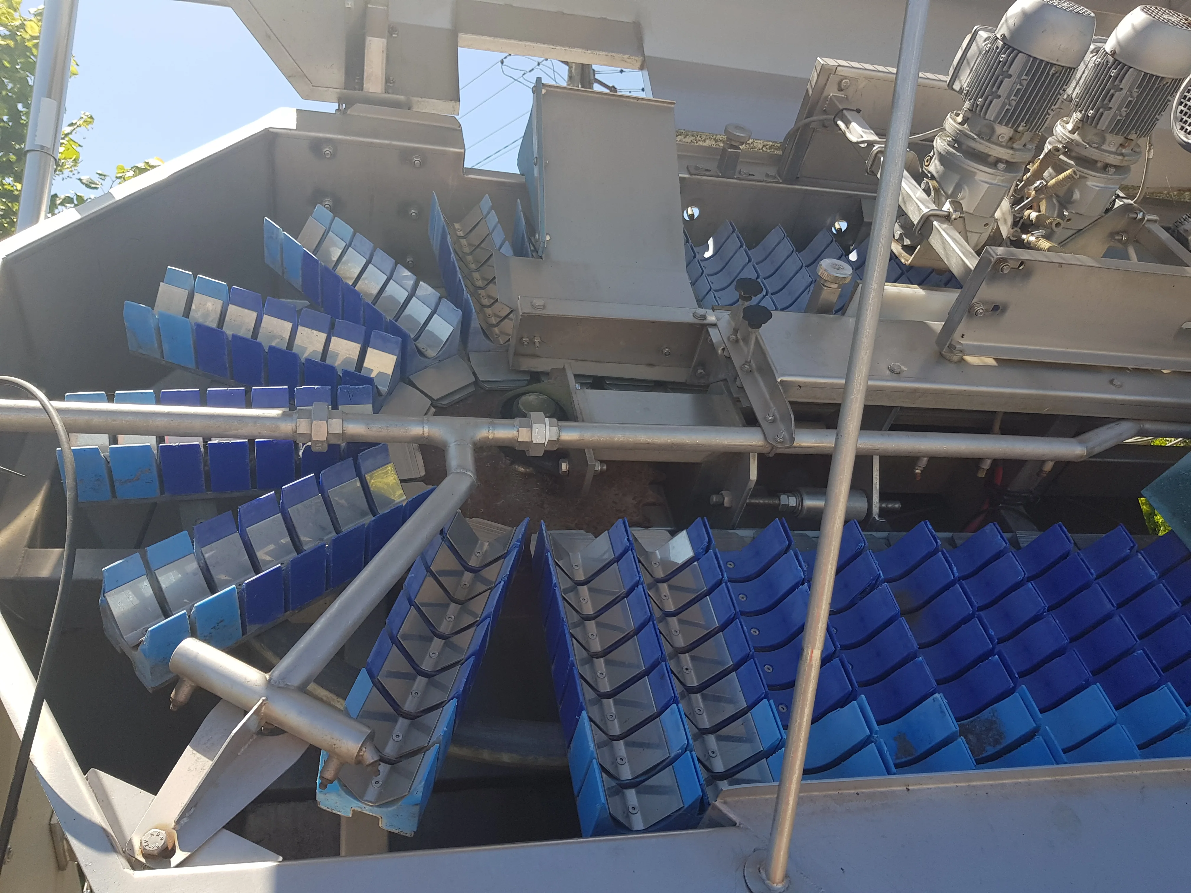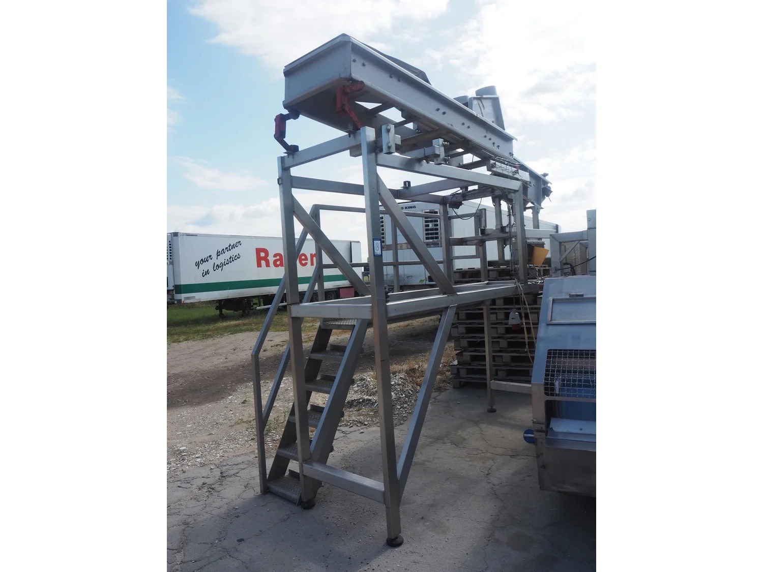 Everet Bross/Niagri Engineering carrot cutter with vibrating infeed gutter, year of construction: 2009, dimensions cutter: 4000 mm x 1600 mm x 2850 mm, dimensions infeed gutter: 3300 mm x 1270 mm x 3150 mm. Including switch cabinet, dimensions: 1000 mm x 550 mm x 2000 mm.