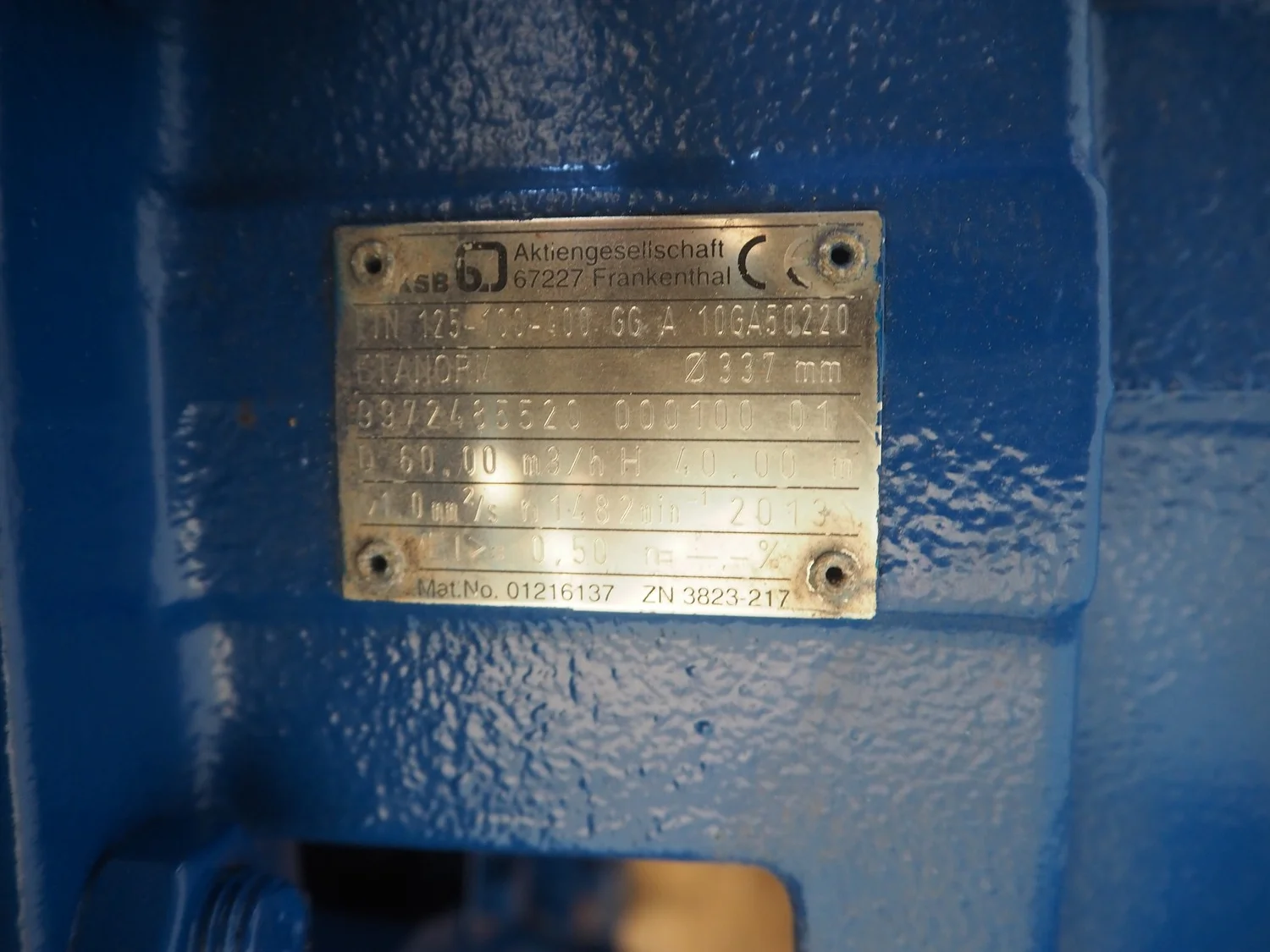 KSB centrifugal pump, type: ETN 125-100-400, year of construction: 2013, capacity: 60.00 m3 per hour, dimensions: 750 mm x 500 mm x 650 mm.