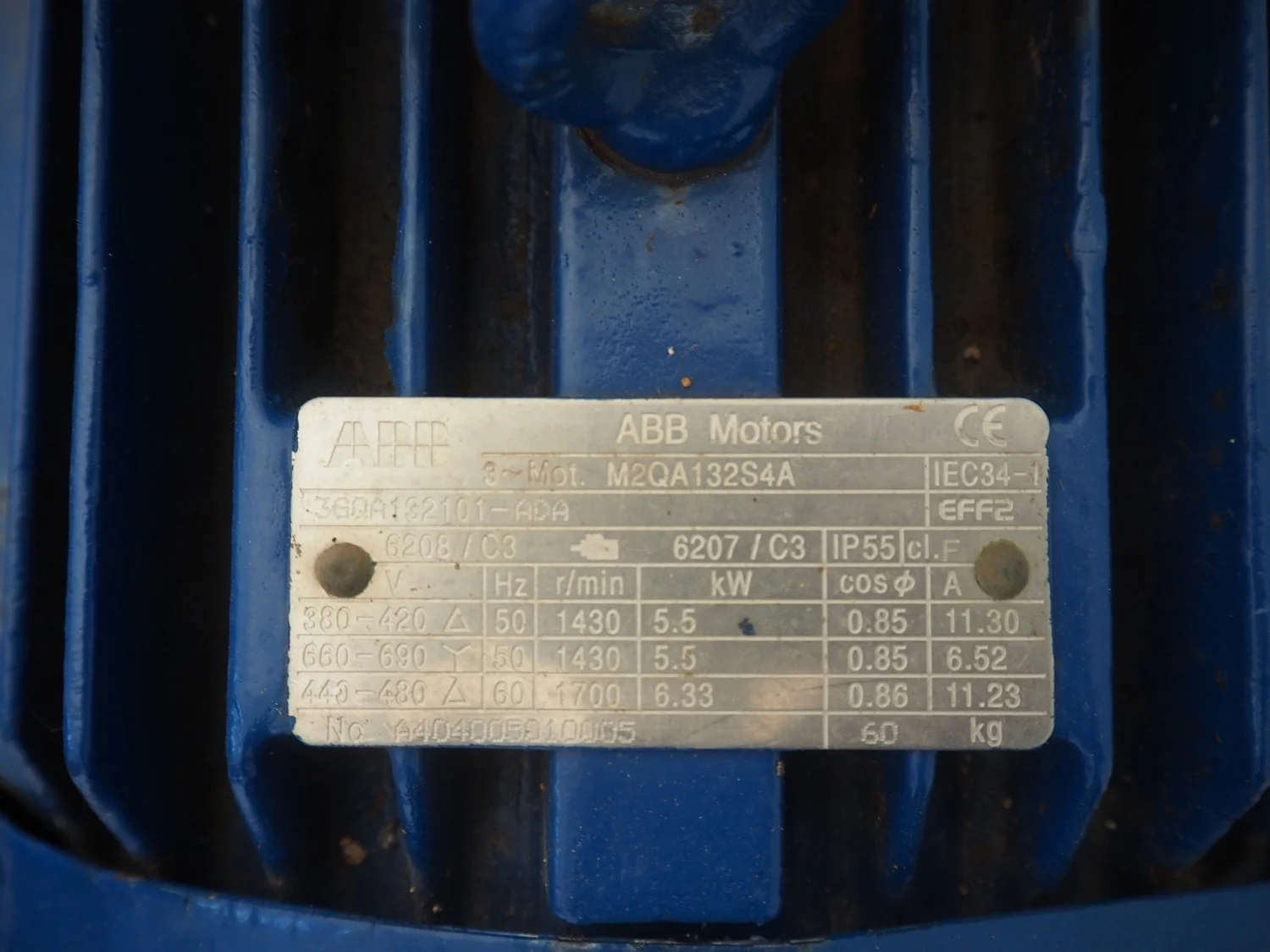 KSB centrifugal pump with ABB motor, dimensions: 1400 mm x 600 mm x 700 mm.