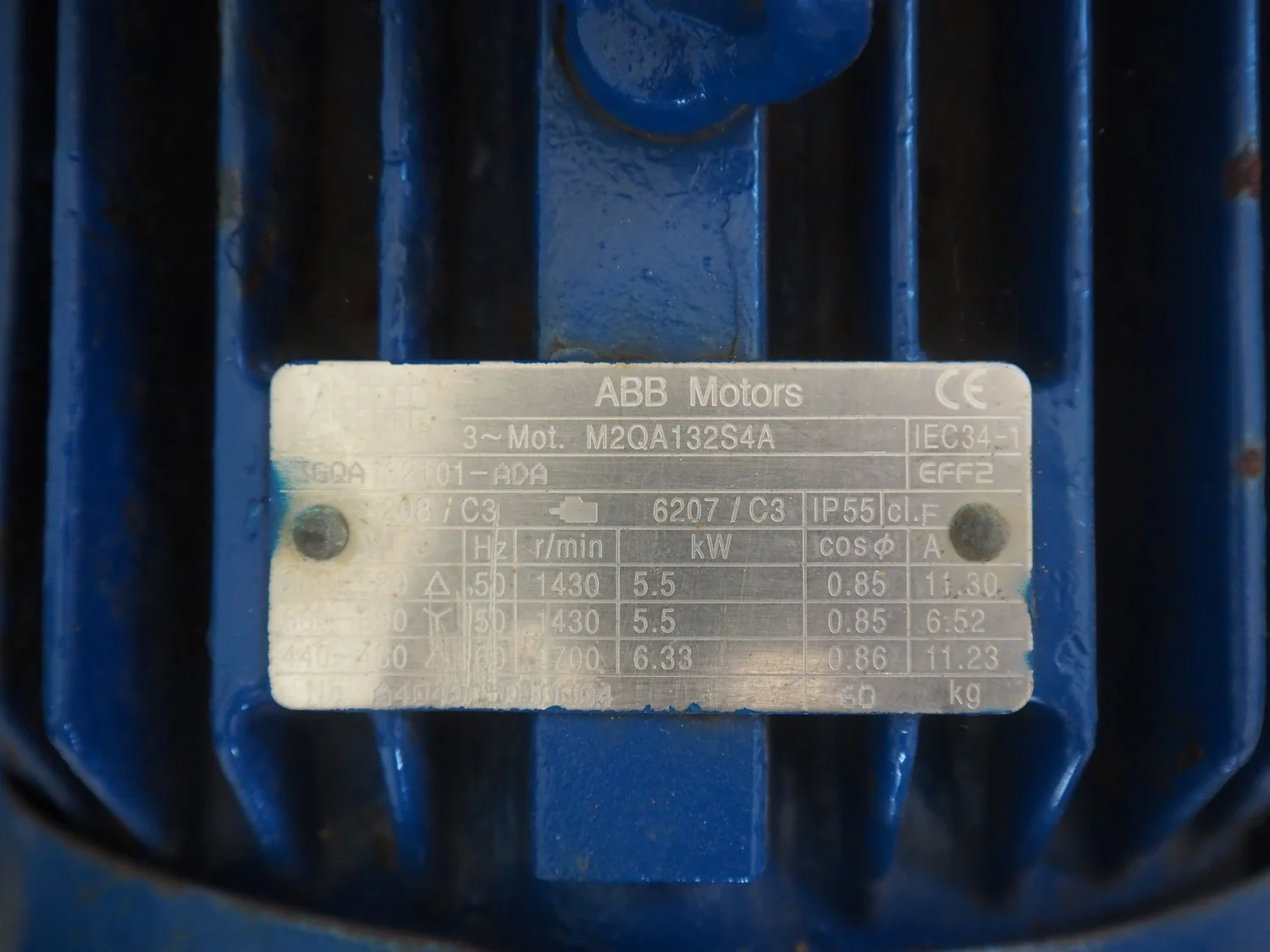 KSB centrifugal pump with ABB motor, dimensions: 1400 mm x 600 mm x 700 mm.