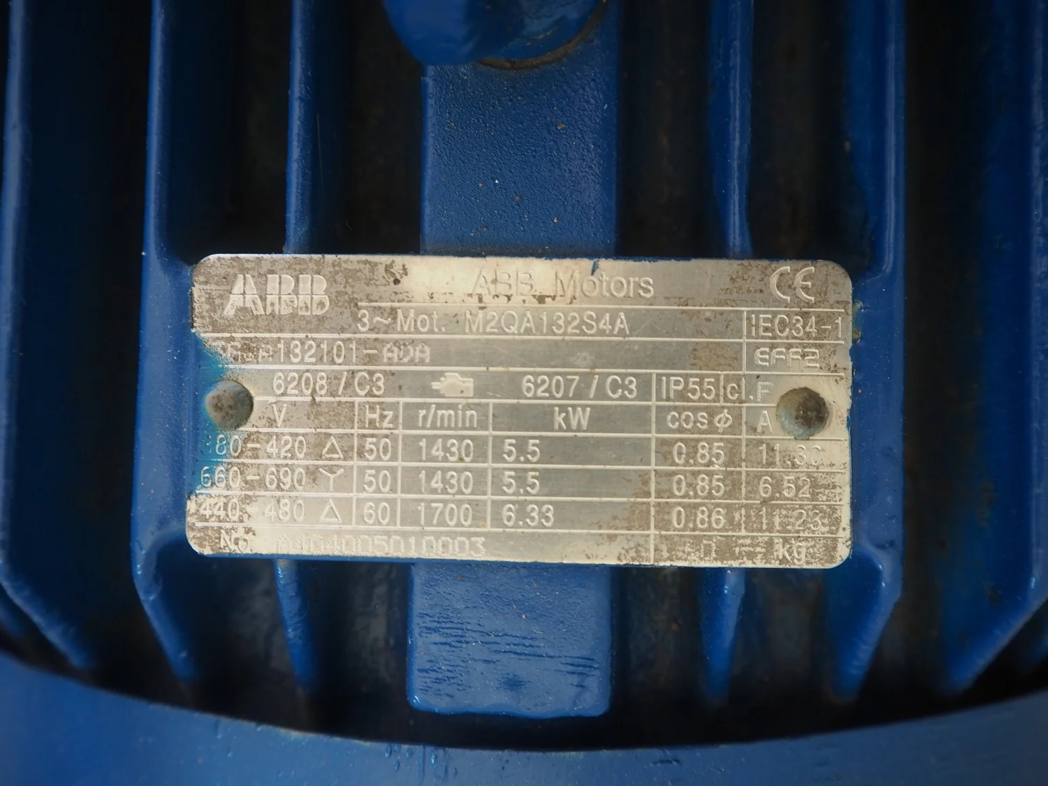 KSB centrifugal pump with ABB motor, dimensions: 1400 mm x 550 mm x 700 mm.