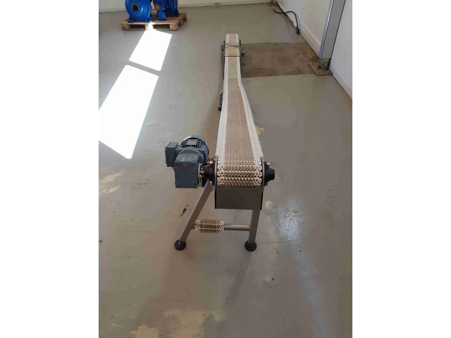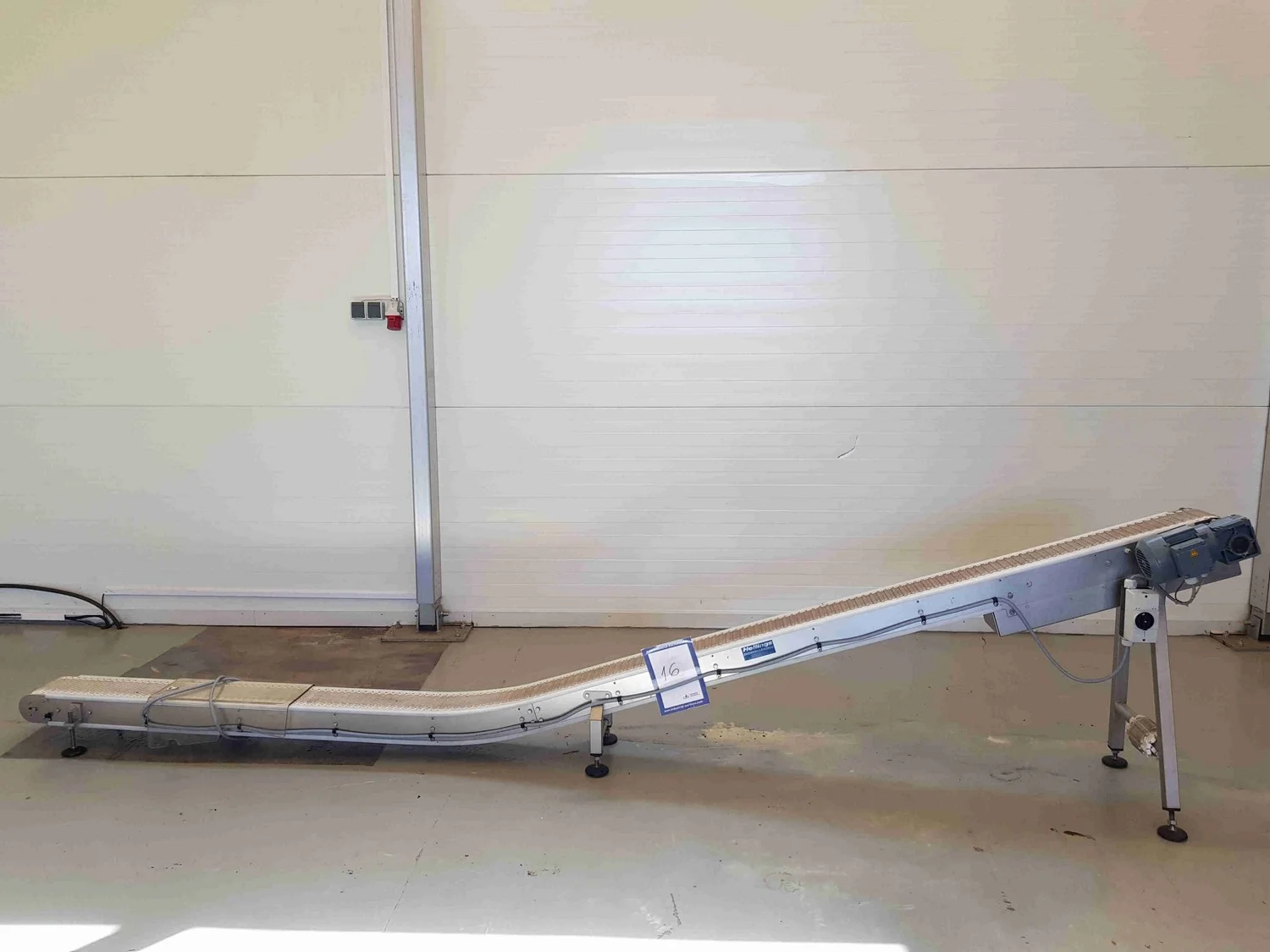 Hellings Machinebouw B.V. elevating belt, year of construction: 2011, plastic belt, belt width: 175 mm, elevating height: 900 mm, total dimensions: 4400 mm x 580 mm x 1000 mm.