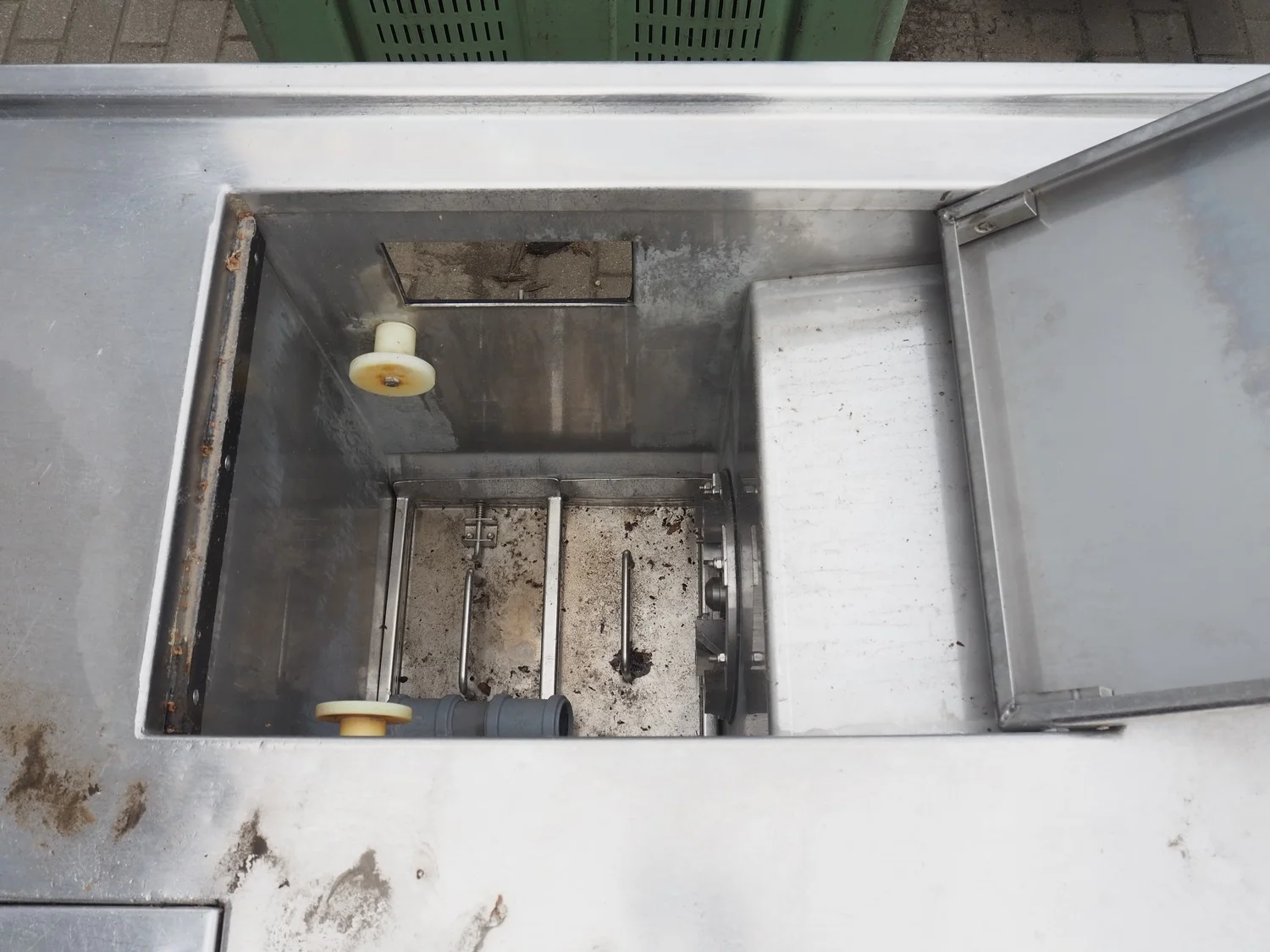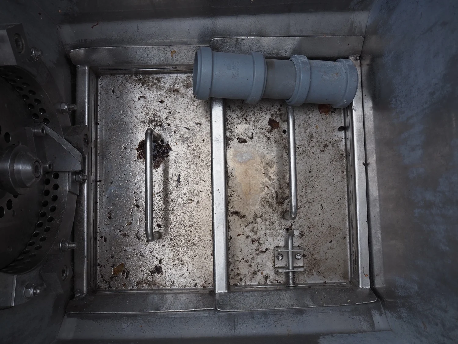 Metos waste processor, dimensions: 2250 mm x 950 mm x 1600 mm. Incomplete.