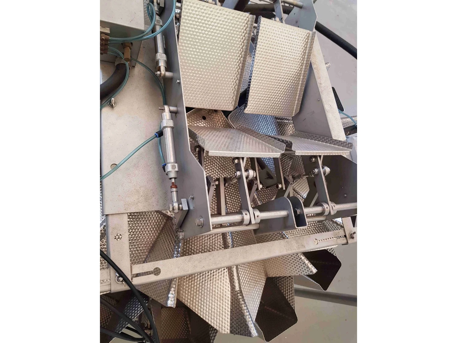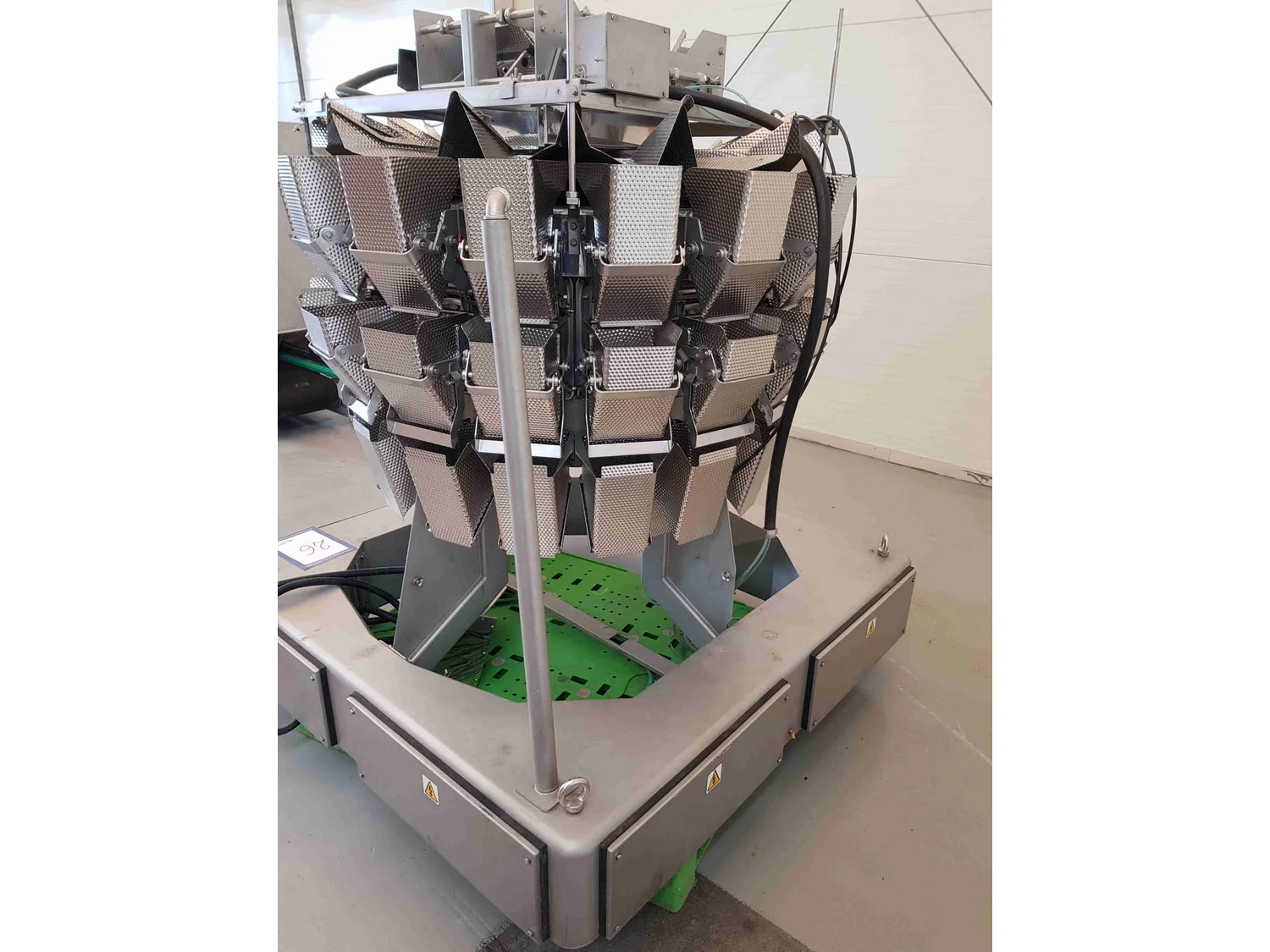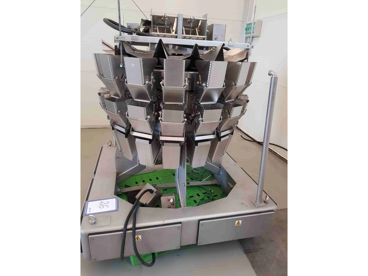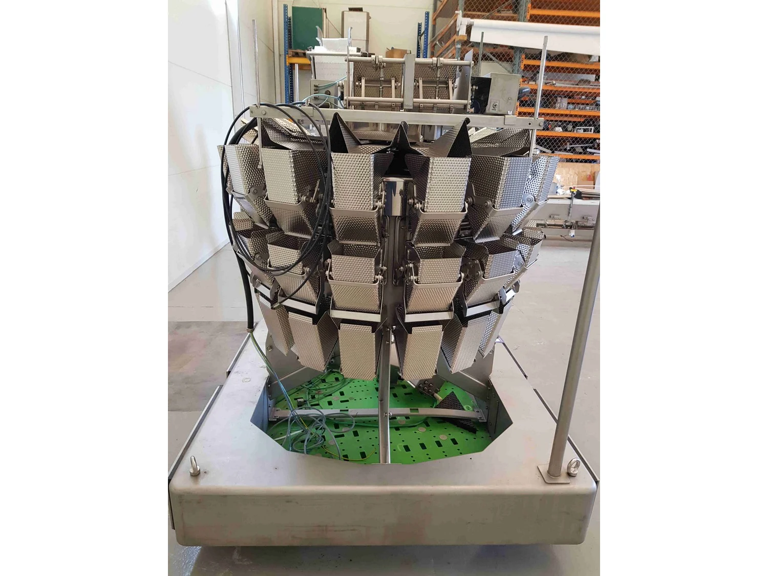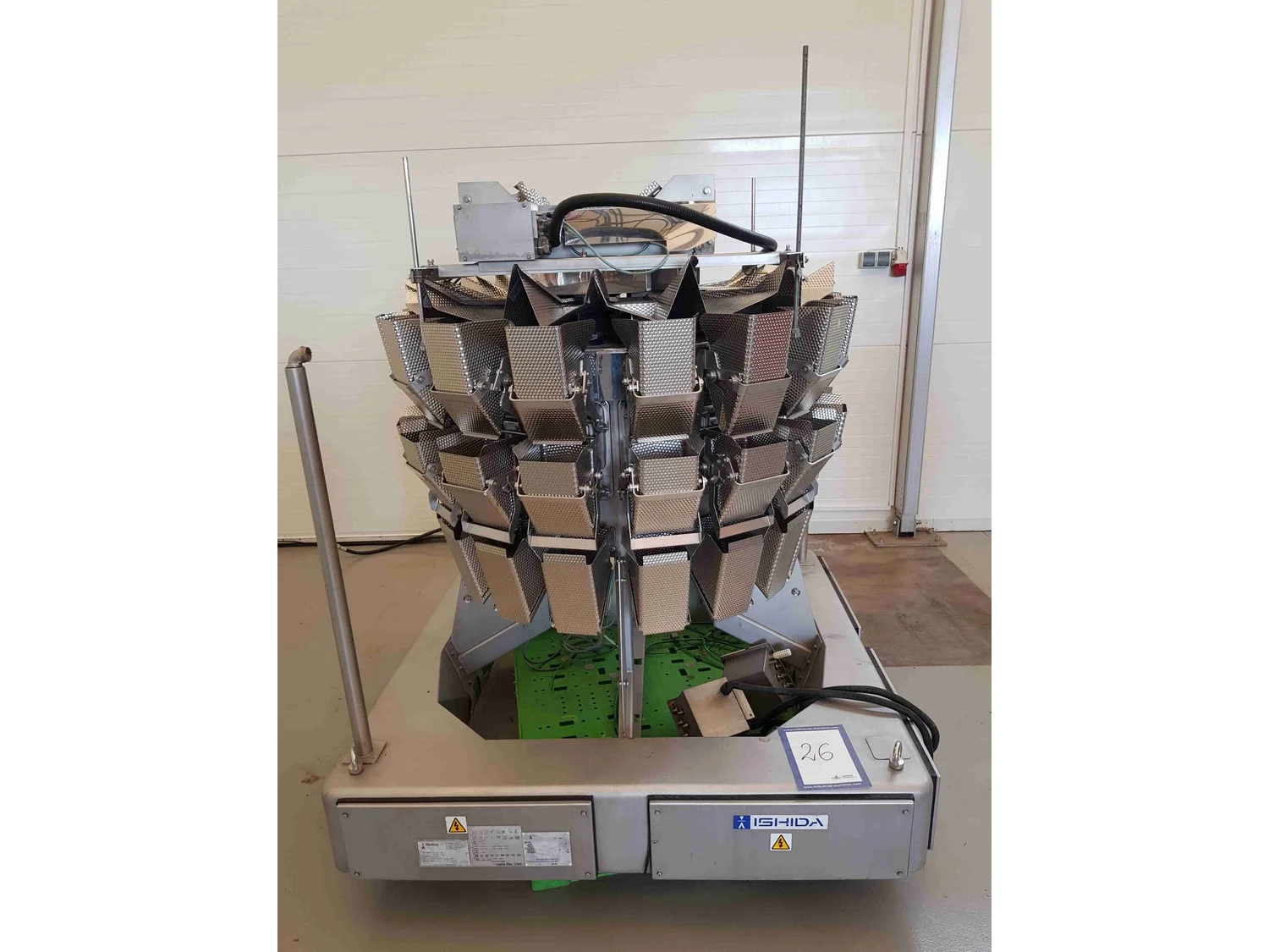 Ishida 16-heads multihead weigher, model: CCW-R-216B-2D/30-WP, serial number: 560709, year of construction: 12/2010, 240 V, 1 Ph, 50 Hz, 4.4 A, weight: 850 kg, dimensions: 1600 mm x 1600 mm x 2000 mm. Control panel missing.