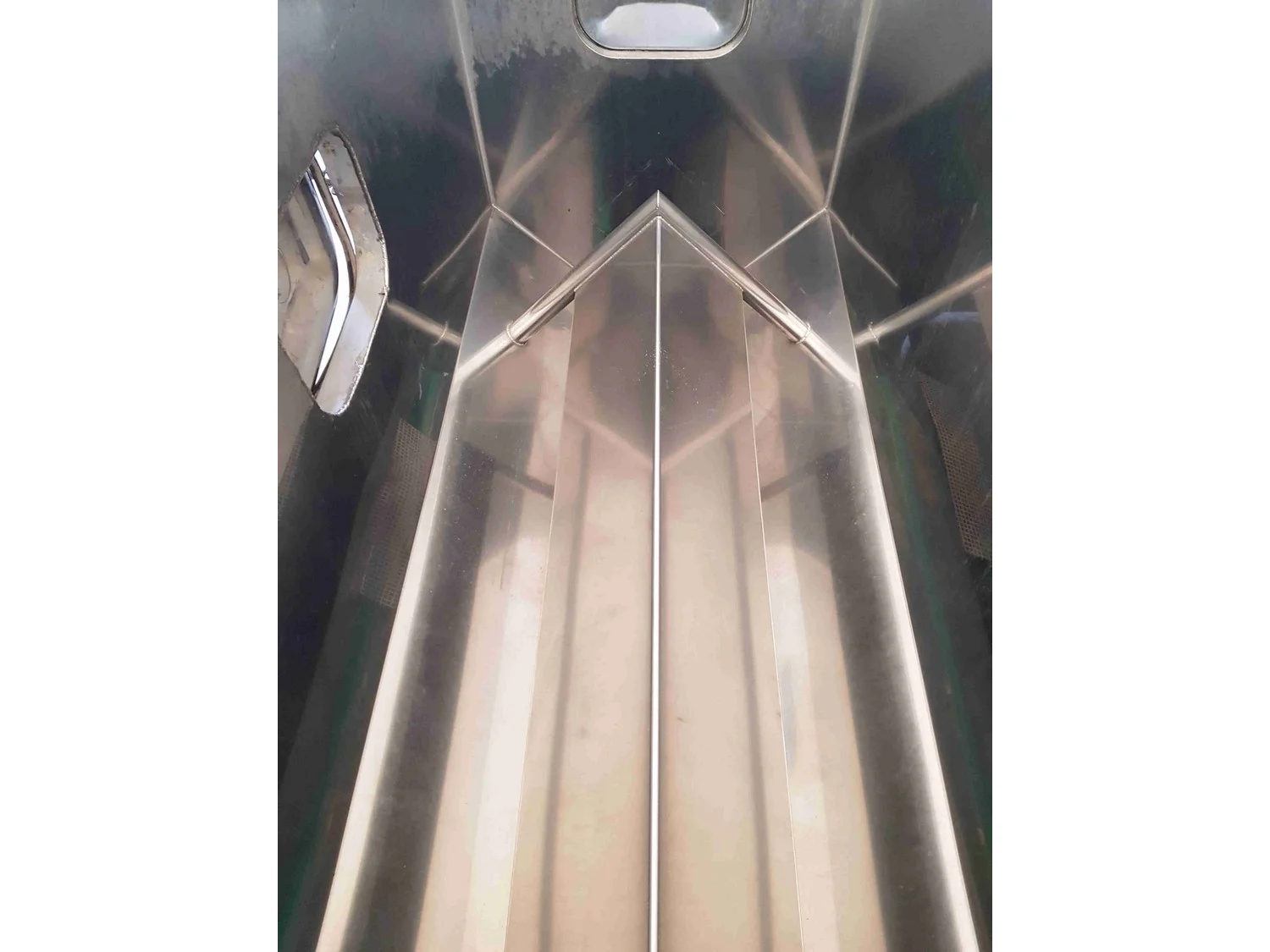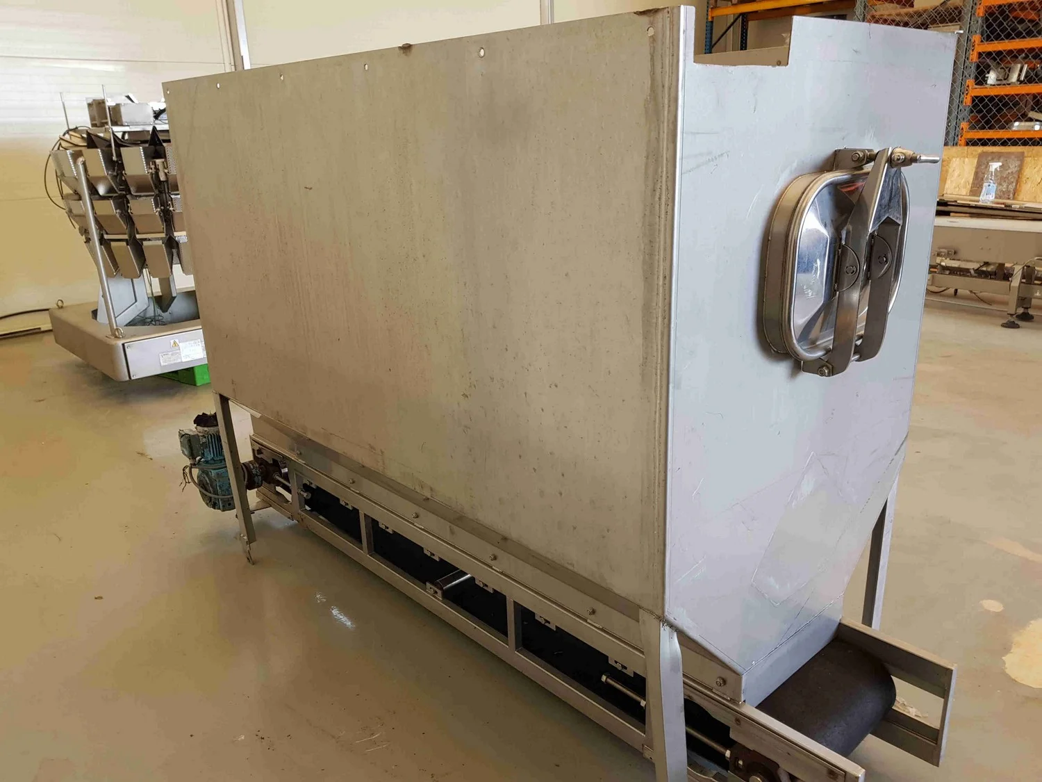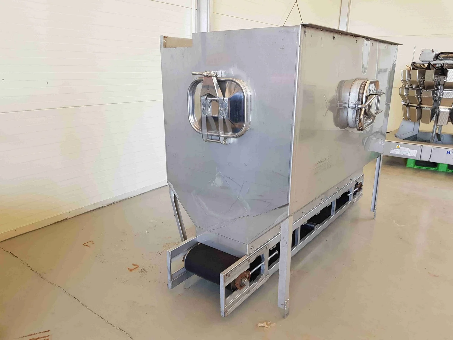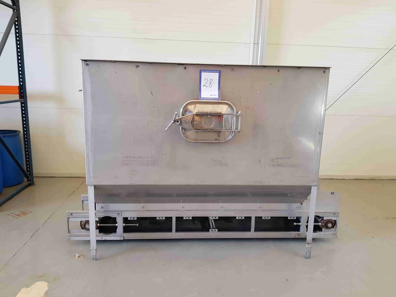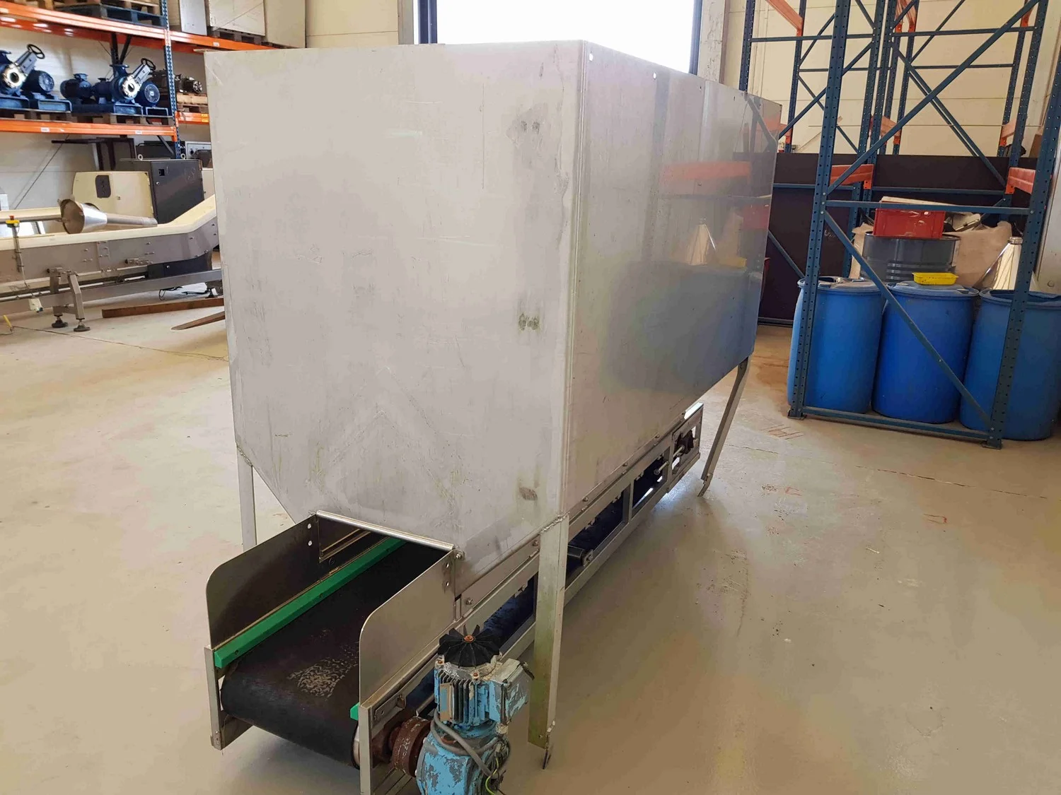 S/s infeed bunker, belt width: 370 mm, total dimensions: 2600 mm x 1050 mm x 1700 mm.