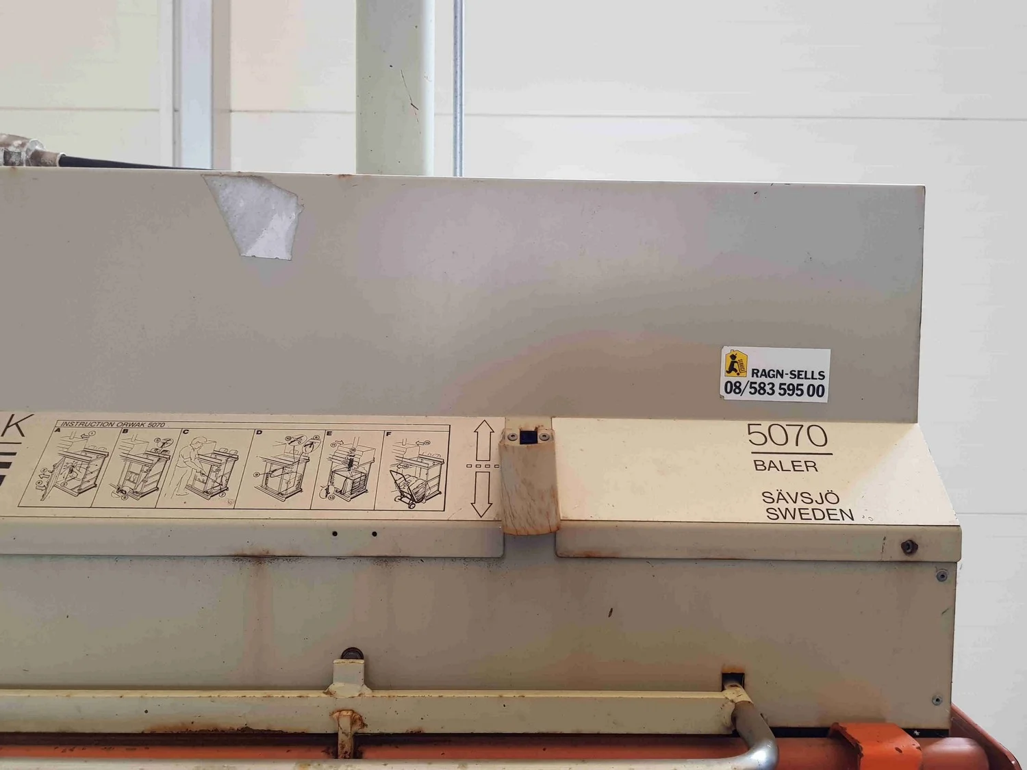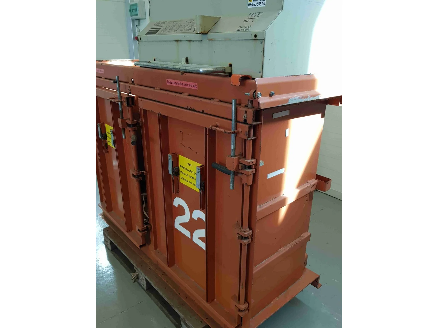 Orwak baler, type: 5070, dimensions: 1800 mm x 2400 mm x 1000 mm.