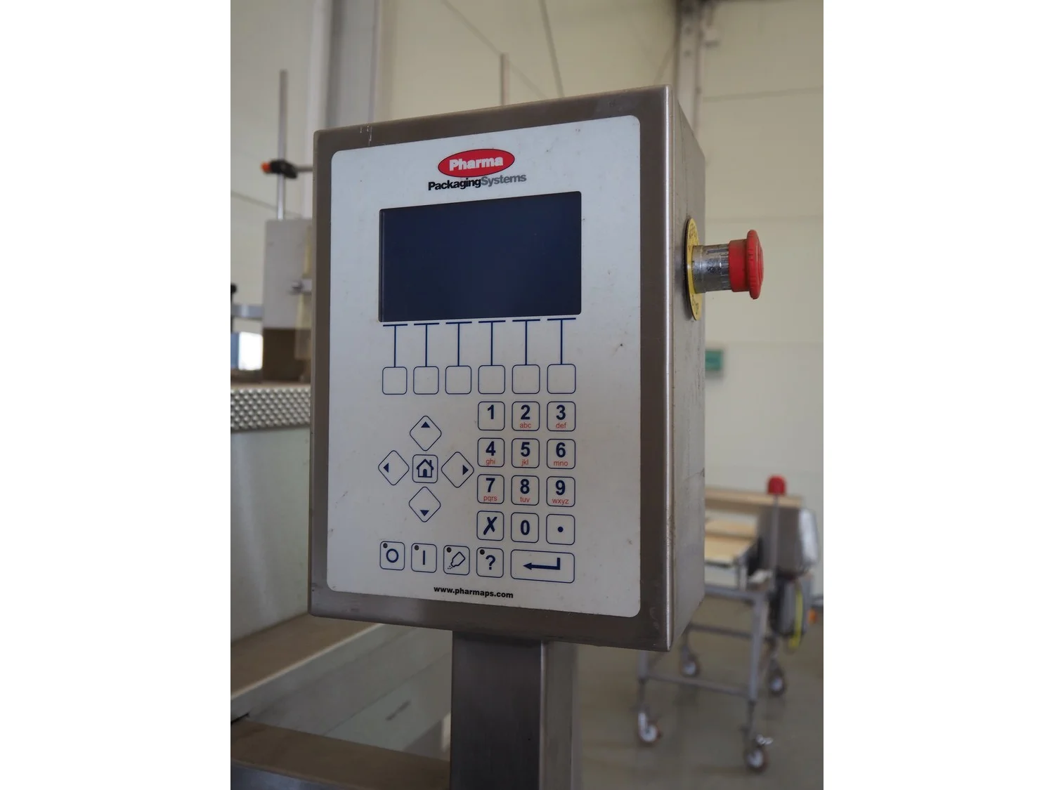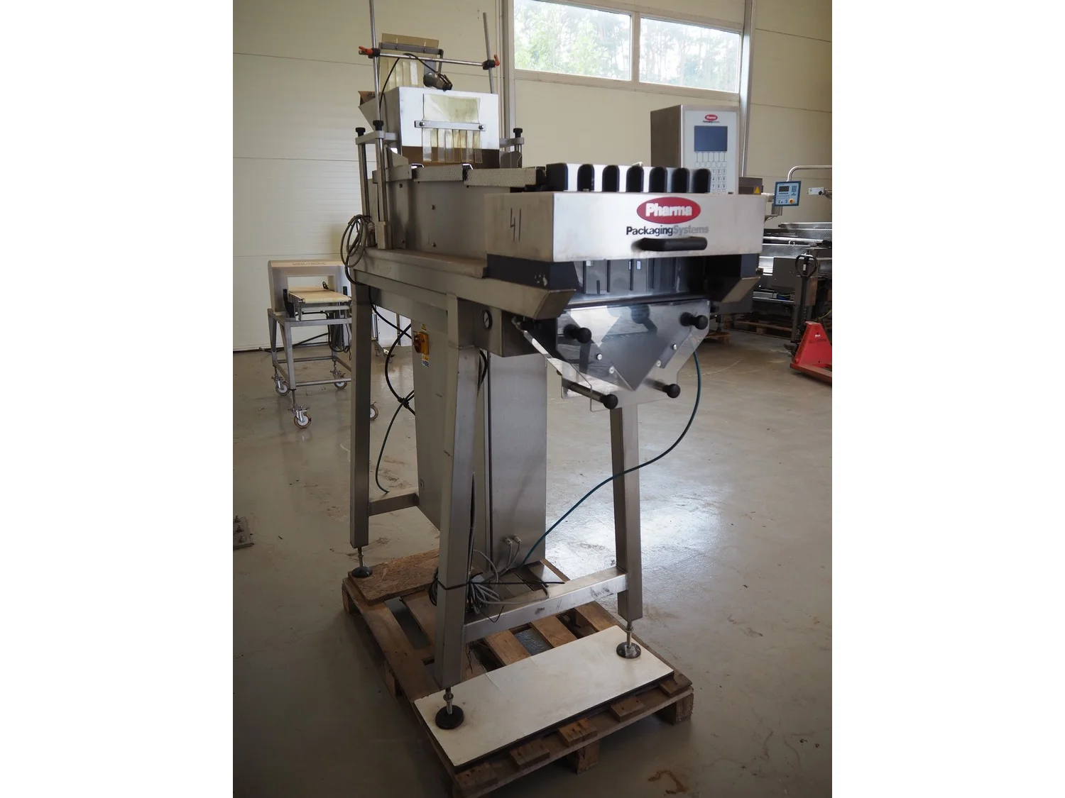 Pharma Packaging Systems vibrating and counting gutter, model: HC 6-1, serial number: PPS 206, year of construction: 18-04-2007, 230 V, 1 Ph, 50 Hz, 0.8 kVa, 6 lanes gutter, total dimensions: 1600 mm x 1100 mm x 2200 mm.