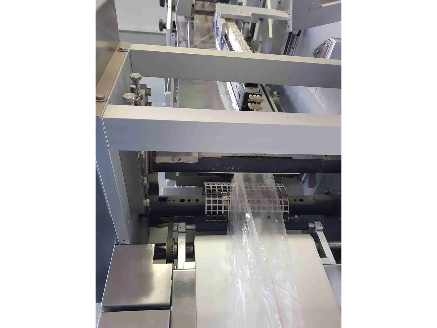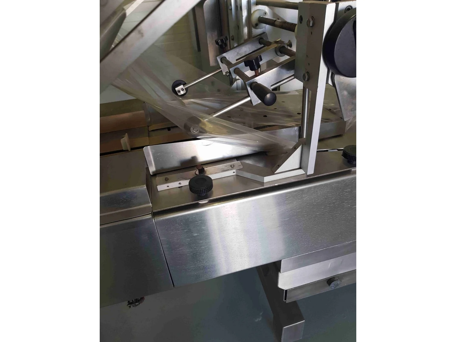 Ilapak flowpacker, type: CARRERA 1000/40, serial number: 0640490095, year of construction: 05-2014, 400 V, 60 Hz, 4250 W, film width: 480 mm, seal length: 250 mm, plastic belt, belt width: 150 mm, distance between dividers: 280 mm, total dimensions: 4700 mm x 1400 mm x 1800 mm.