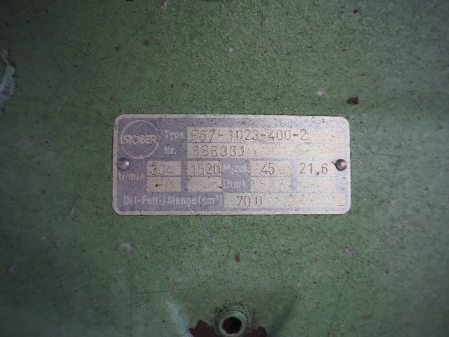 Stober electromotor, type: R57-1023-400-2, number: 886331, dimensions: 1000 mm x 300 mm x 400 mm.