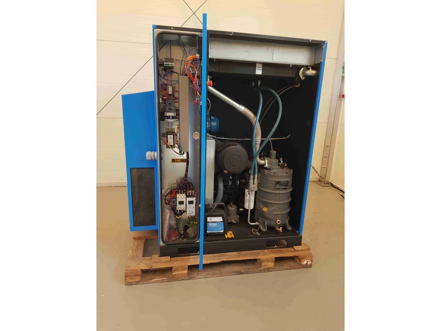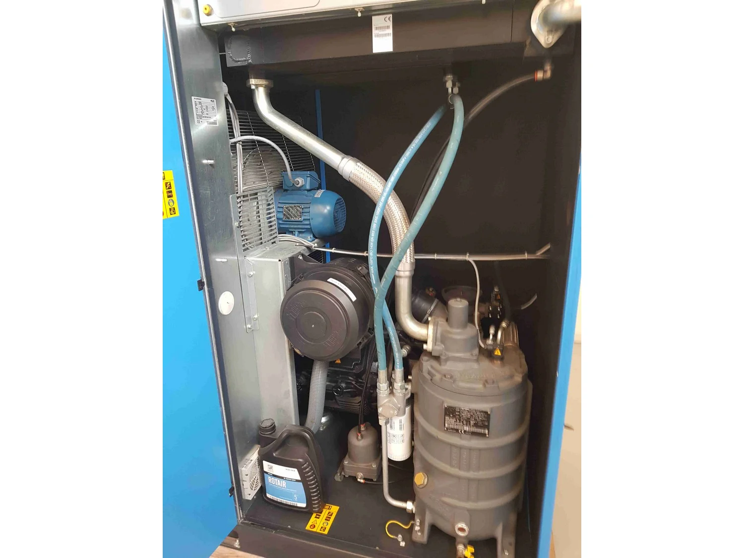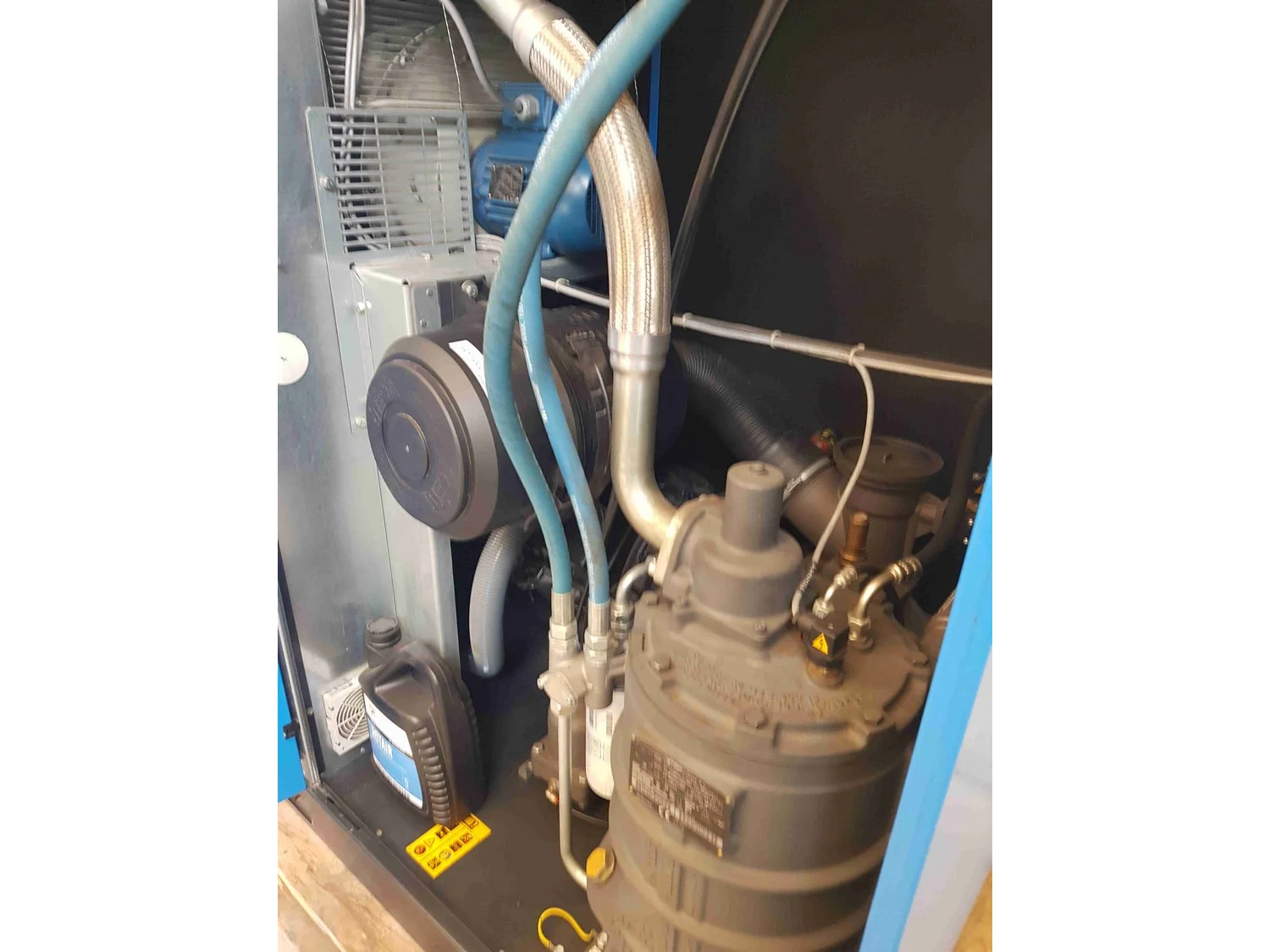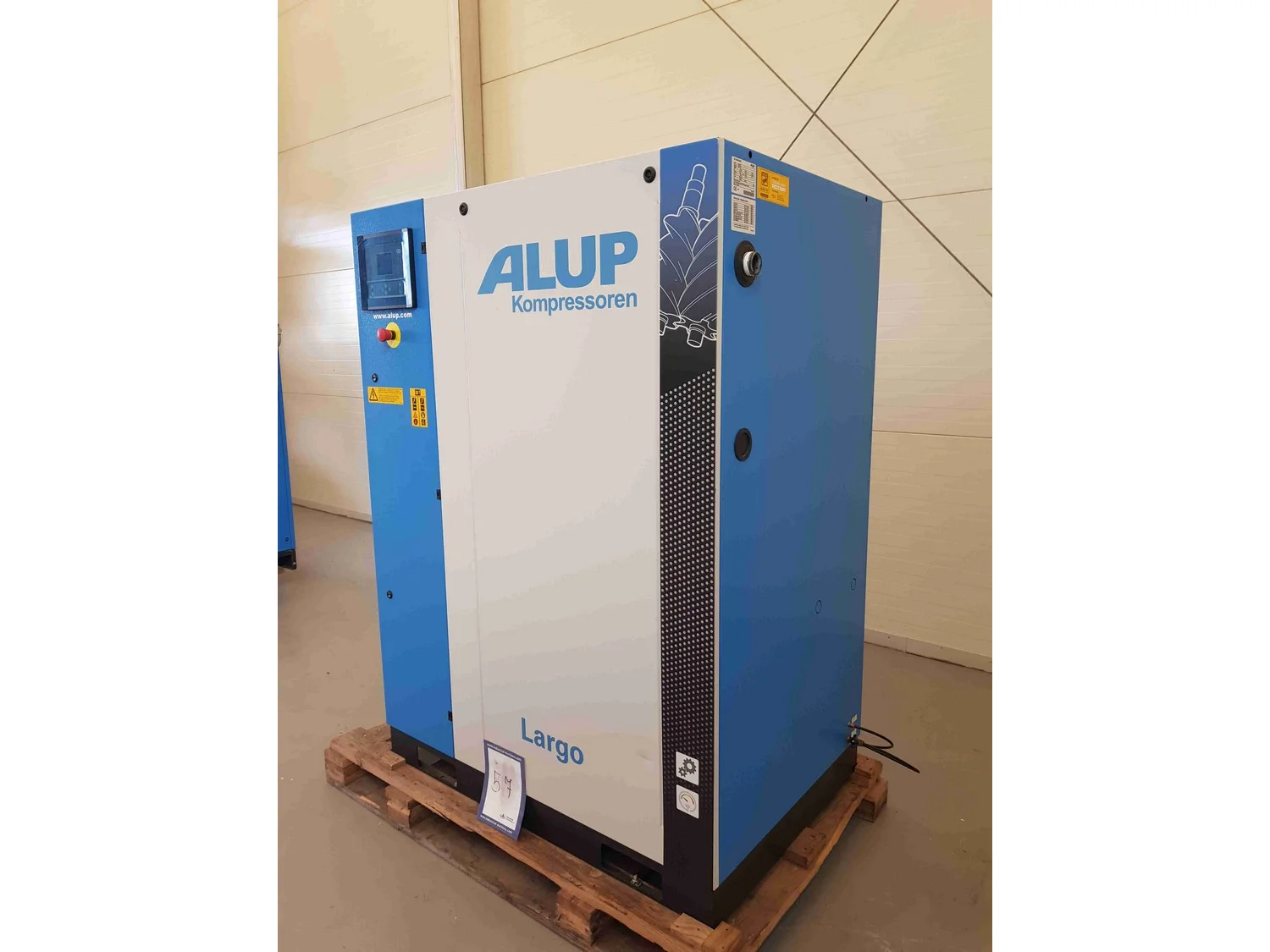 Alup Kompressoren air compressor, type: LARGO45, serial number: API571373, year of construction: 2016, 400 V, 3 Ph, 50 Hz, 45 kW, maximum working pressure: 10 bar, volume: 7.14 m³ per minute, dimensions: 1700 mm x 1000 mm x 2000 mm.
