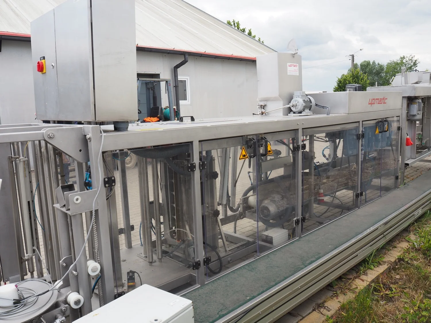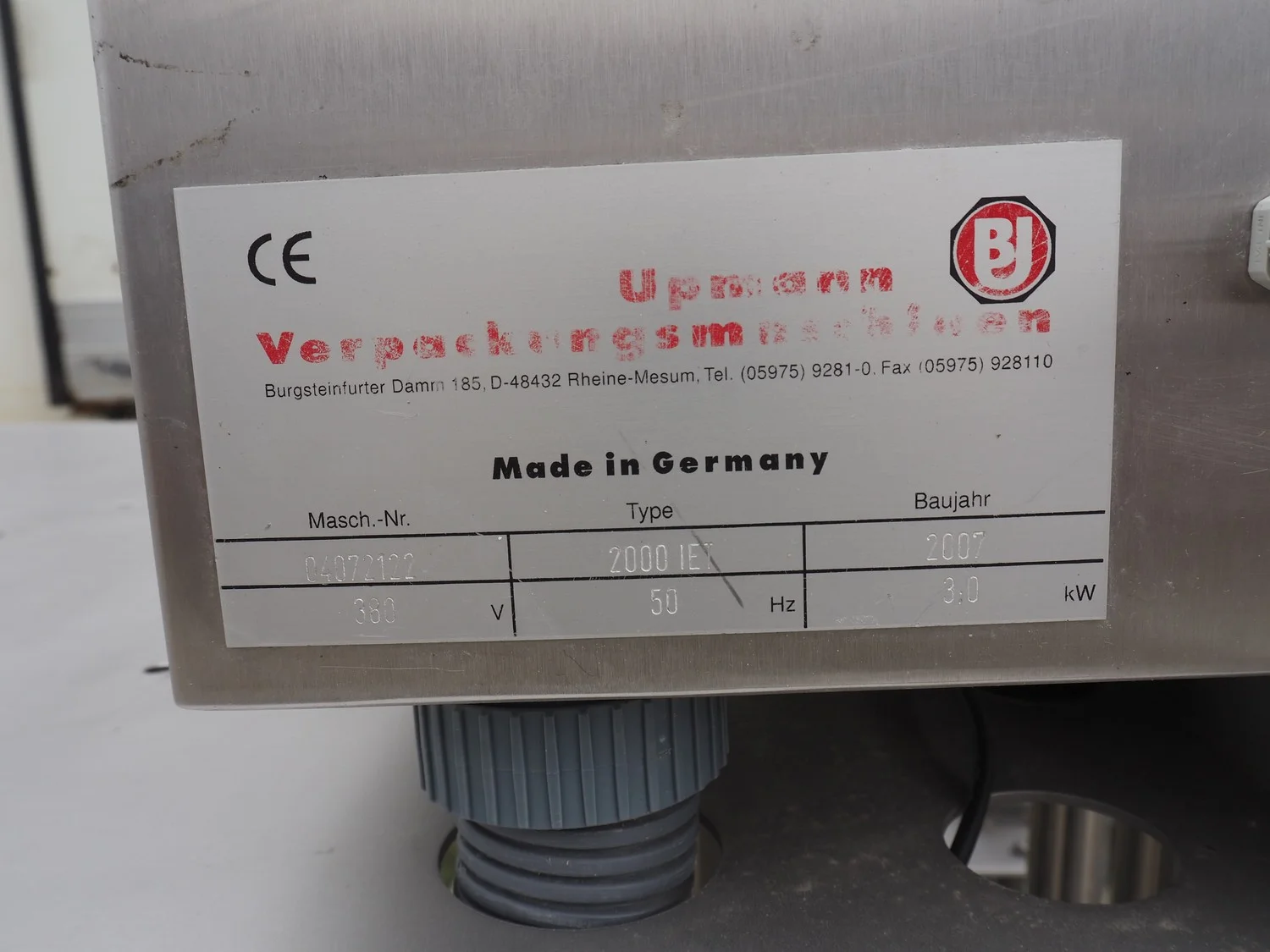 Upmatic packaging machine, type: 2000 IET, serial number: 04072122, year of construction: 2007, 380 V, 50 Hz, 3.0 kW, dimensions: 5300 mm x 1250 mm x 2000 mm.