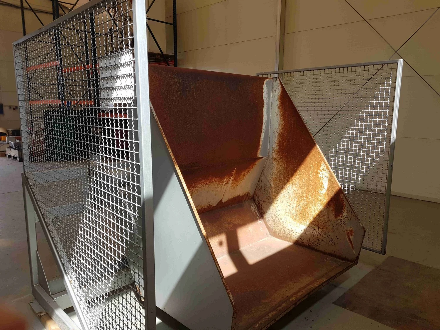 Husmann waste tipper, type: PM30 N, dimensions: 3150 mm x 1950 mm x 2000 mm.