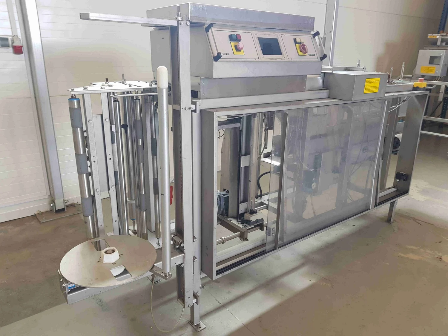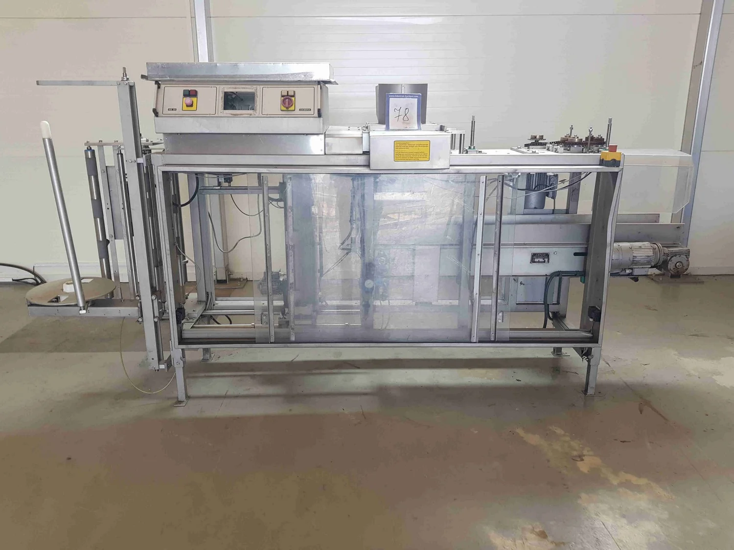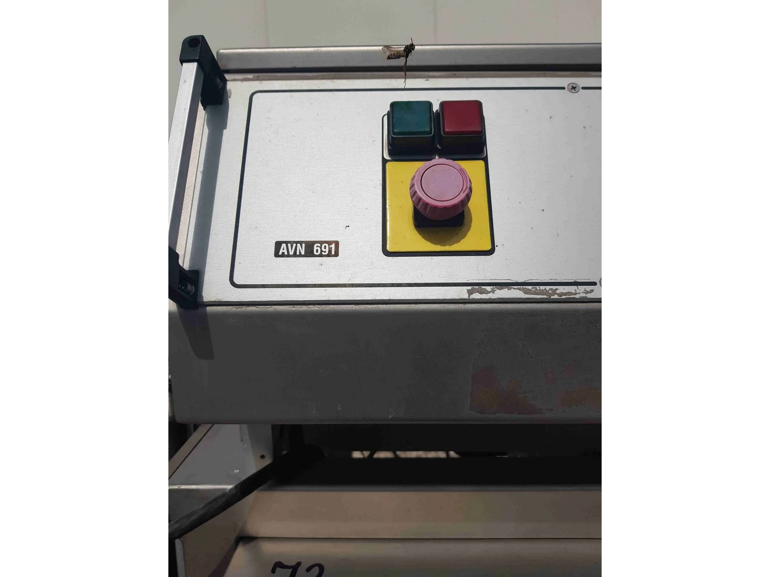 Affeldt Machinenbau GmbH horizontal bag filling machine, type: AVN 442 V/G, number: 960, year of construction: 96/12, 400V, 50 Hz, belt width: 200 mm, divider height: 20 mm, distance between dividers: 200 mm, total dimensions: 3400 mm x 1200 mm x 1700 mm.