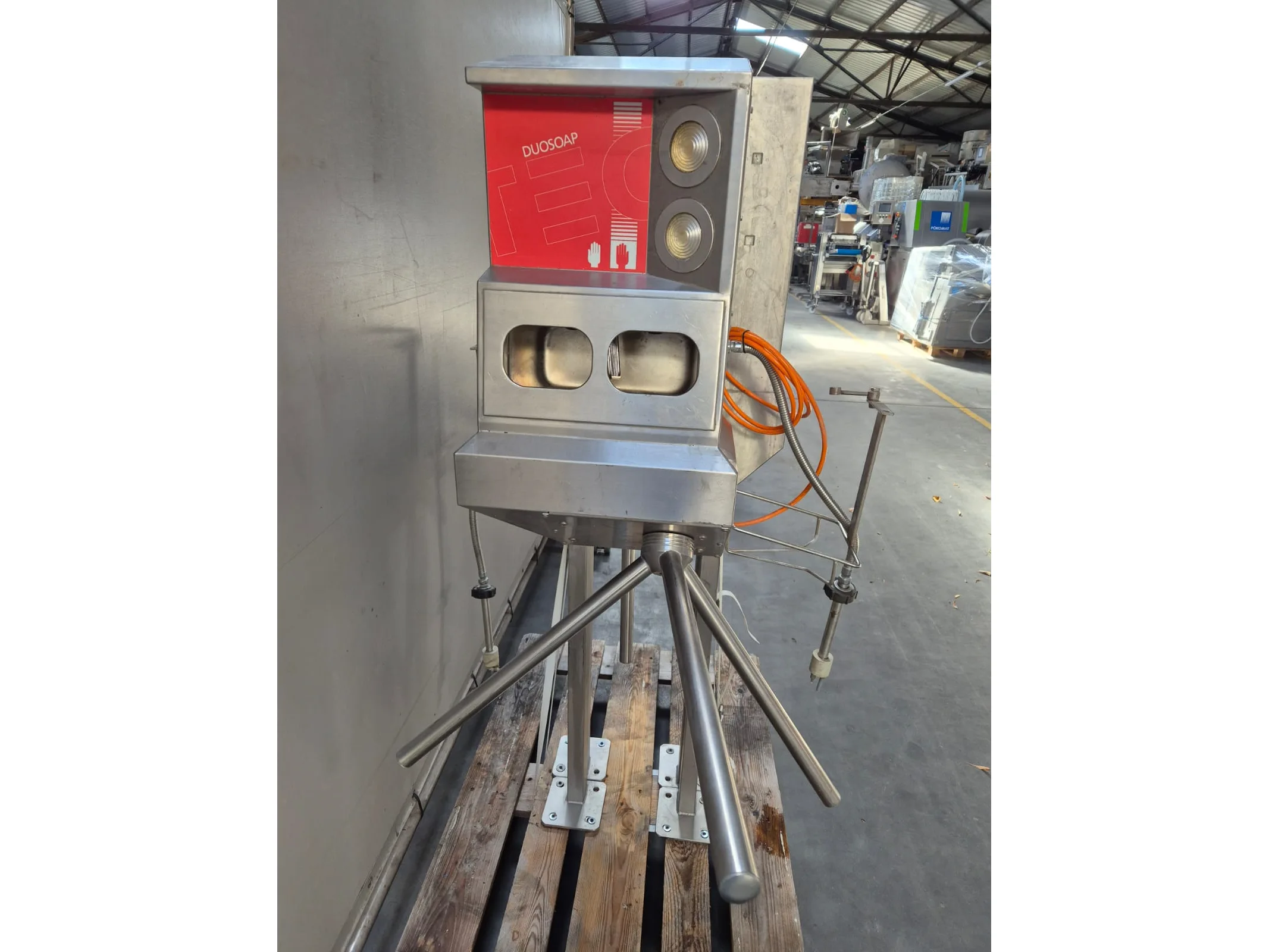 Itec hand cleaning and disinfection unit, type: 23741/li, series: 0097, year of construction: 01/06, 230 V, 50 Hz, 0.3 kW, dimensions: 800 mm x 800 mm x 1600 mm.