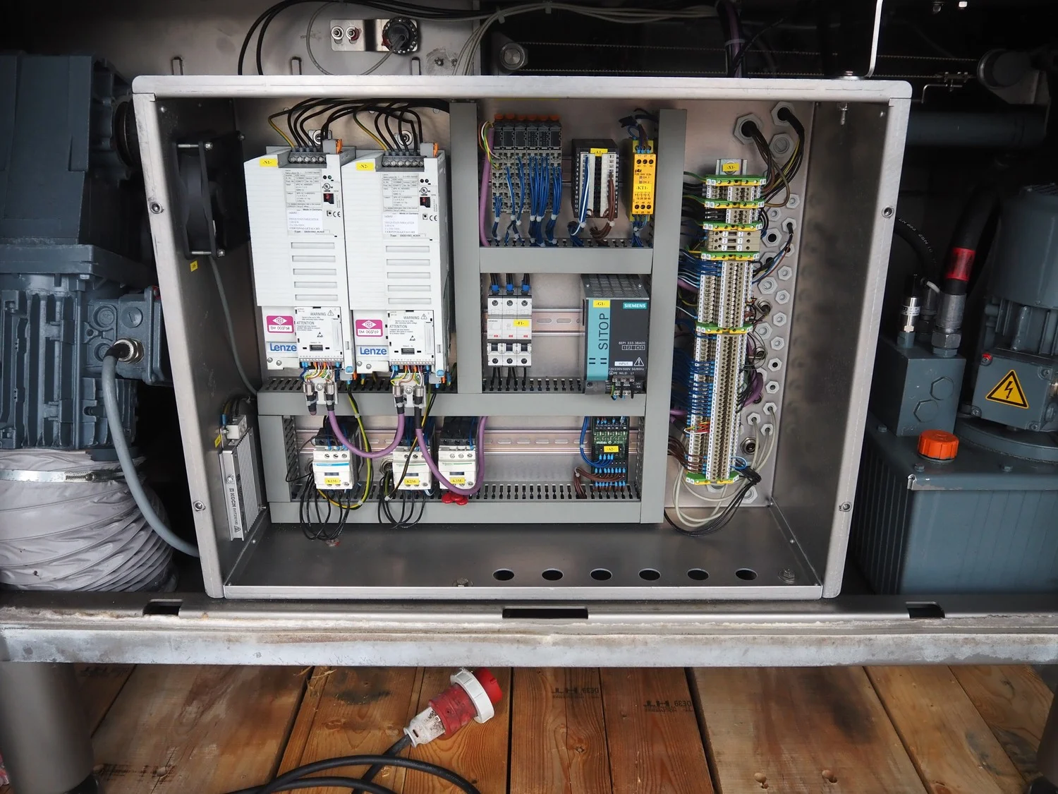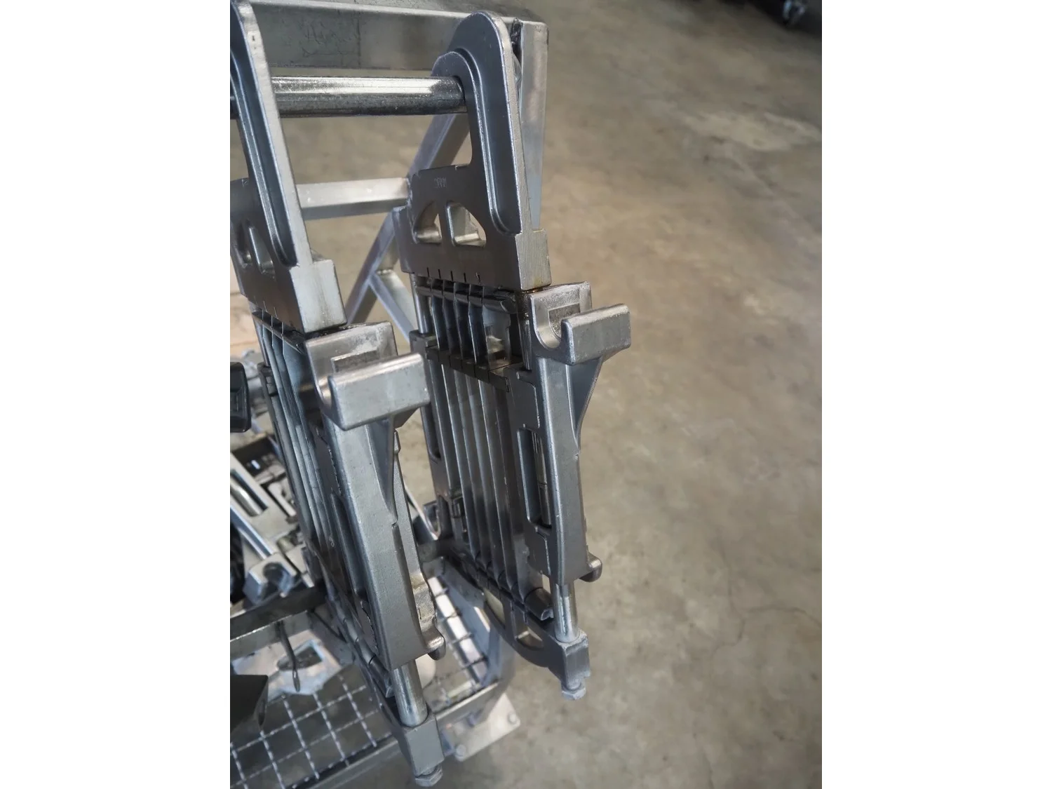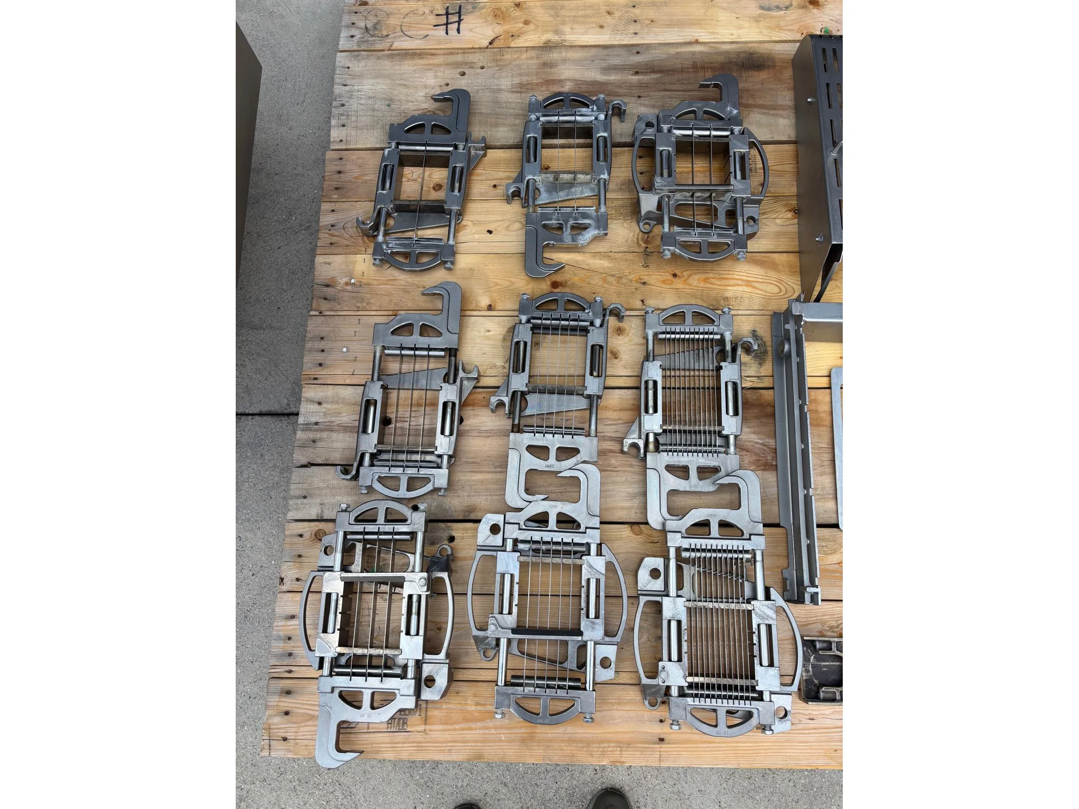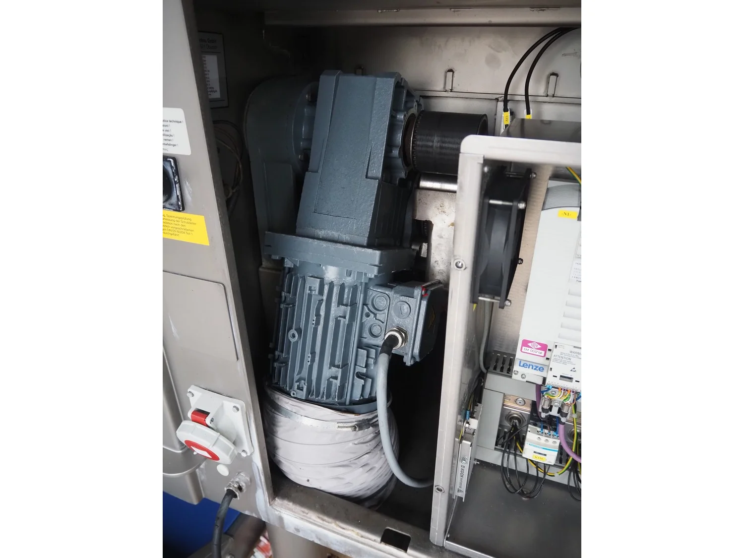 Treif dicer, model: Twister, machine number: 412006.158091.109783, year of construction: 2010, 380-480 V, 3 Ph, 50/60 Hz, 10-8 A, 4.5 kW, 670 kg, dimensions chamber:120 mm x 120 mm, plastic outfeed belt, belt width 240 mm, total dimensions: 1950 mm x 1500 mm x 1300 mm. With trolley with grids.