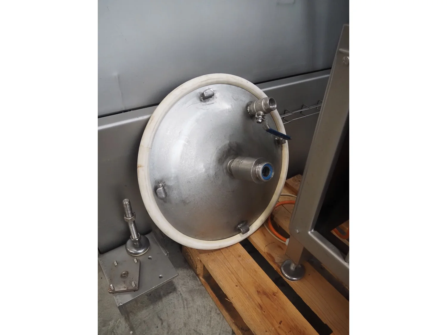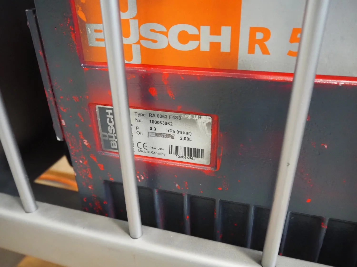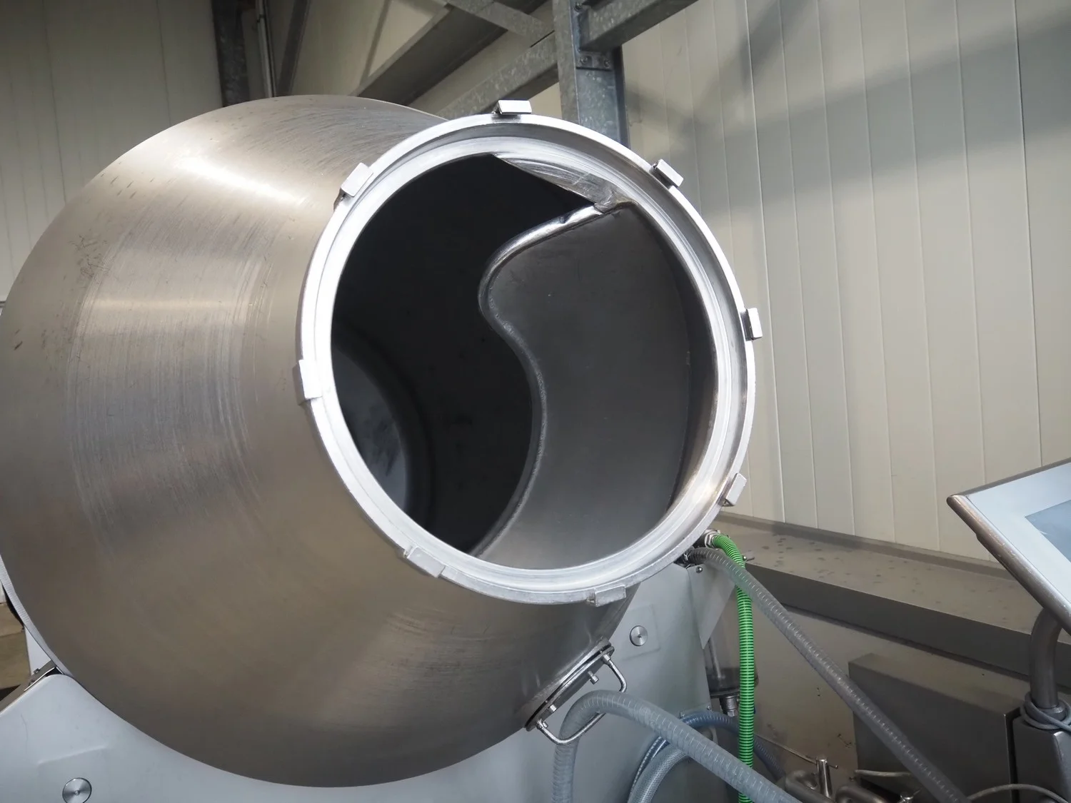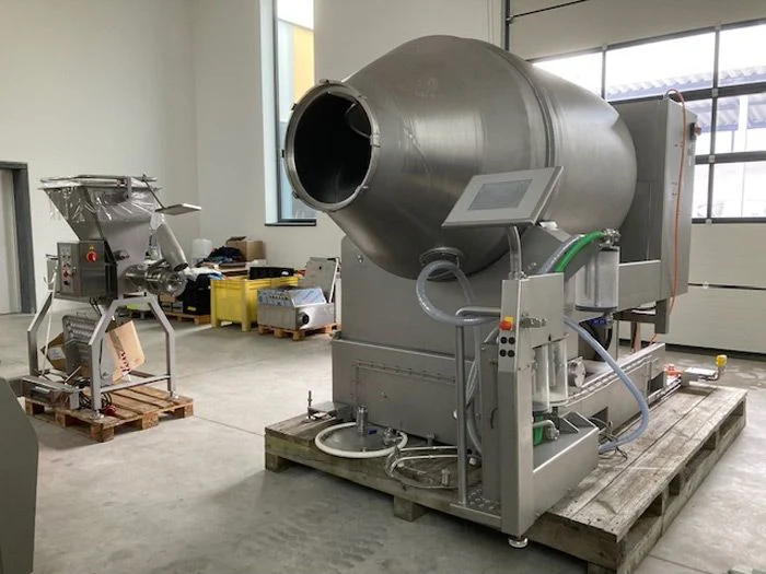 Inject Star cooled tiltable vacuum tumbler, model: Magnum 2600-CSL, number: MAG2600-141, year of construction: 2008, 400 V, 3 Ph, 50 Hz, 9 kW, volume: 2600 liter, dimensions: 3900 mm x 2350 mm x 2600 mm. With cabinet with Busch vacuum pump, type: RA 0063 F 4S3, number: 100063962, year of construction: 2010, capacity: 63 m³ per hour.