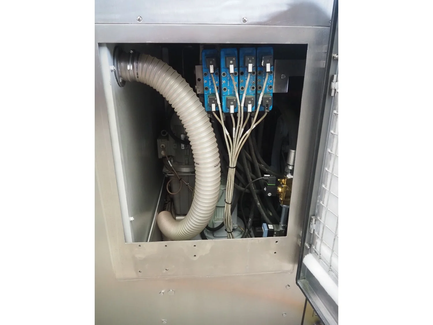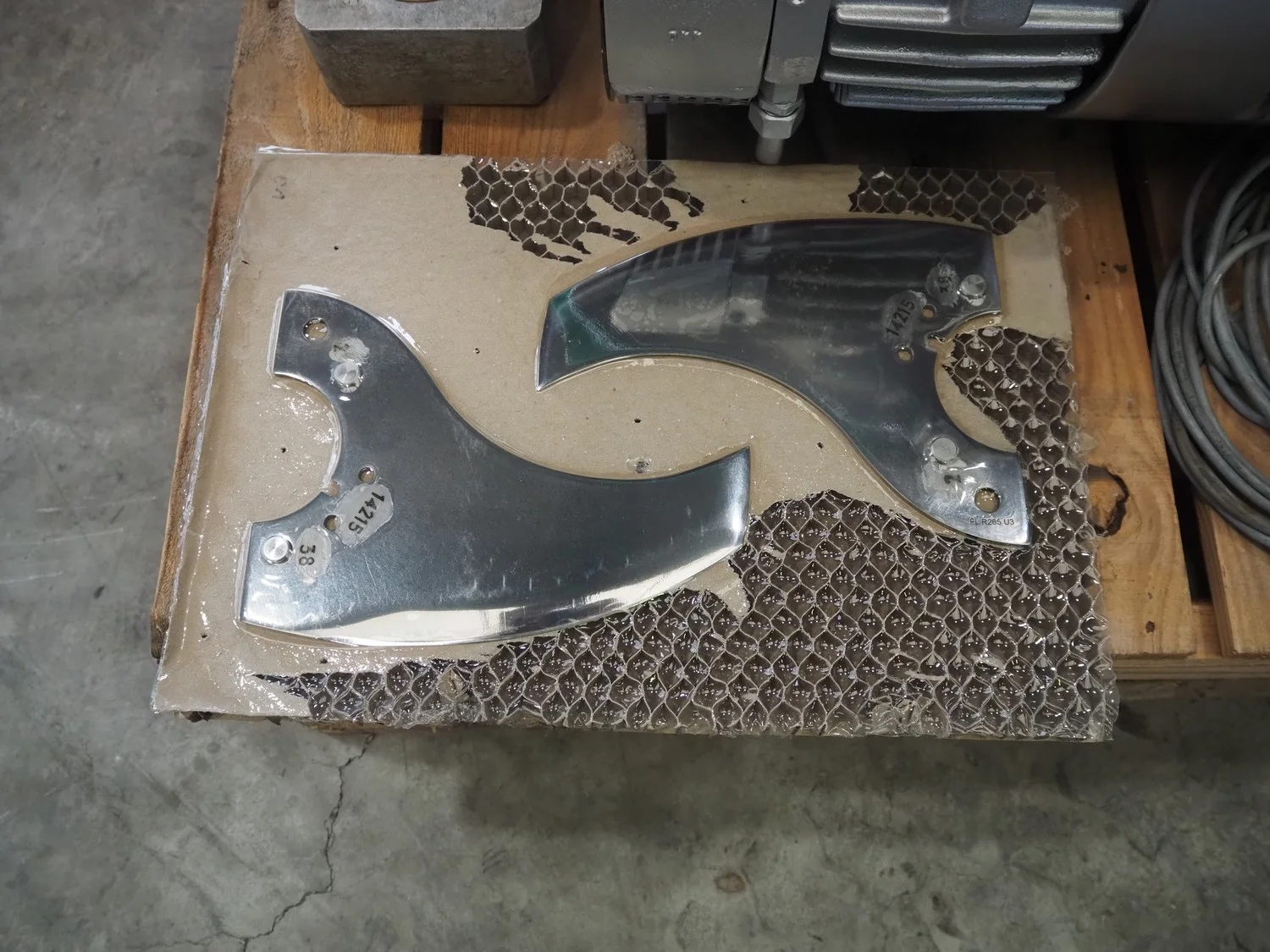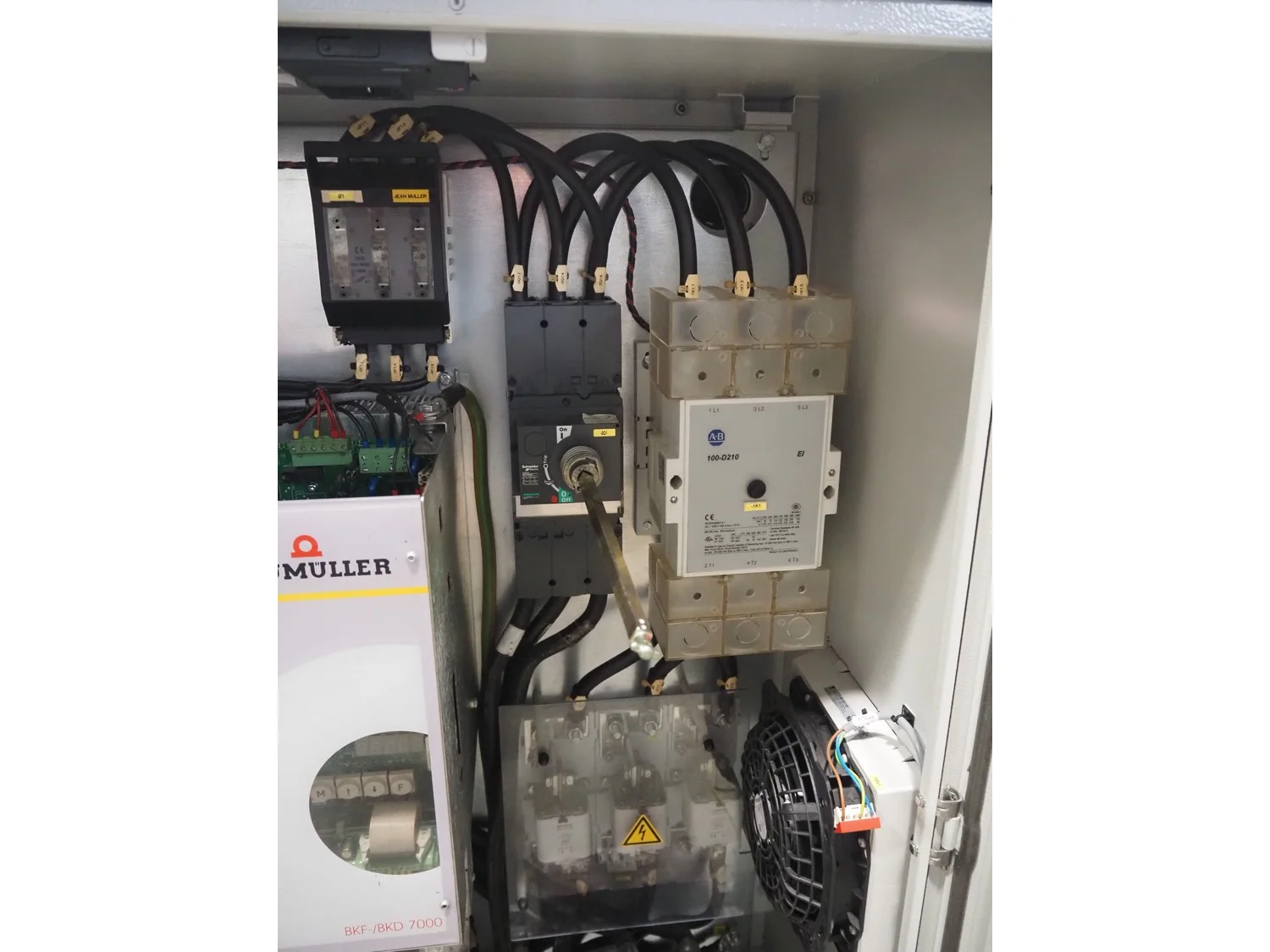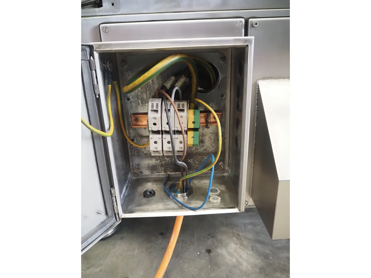 Laska vacuum cutter with lifter for meat bins and ejector, type: KU 200 V.DC, machine number: 14215, year of construction: 2012, 400 V, 3 PH, 60 Hz, 260 A, 103 kW, s/s bowl, volume: 200 liter, dimensions: 3300 mm x 2300 mm x 2000 mm. With Busch vacuum pump, type: RA 0160 D 5Z1 VRXZ, number: C1209000354, year of construction: 2012, capacity: 160 m³ per hour, and spare knife set. Completely overhauled.