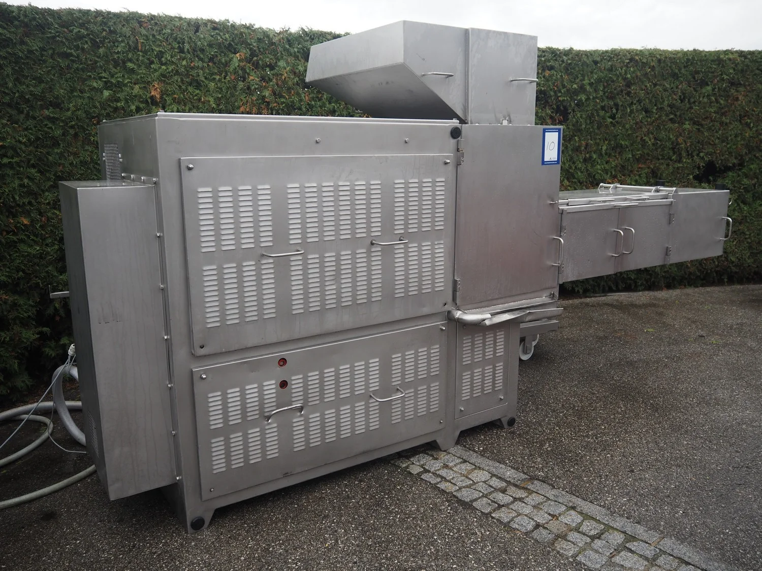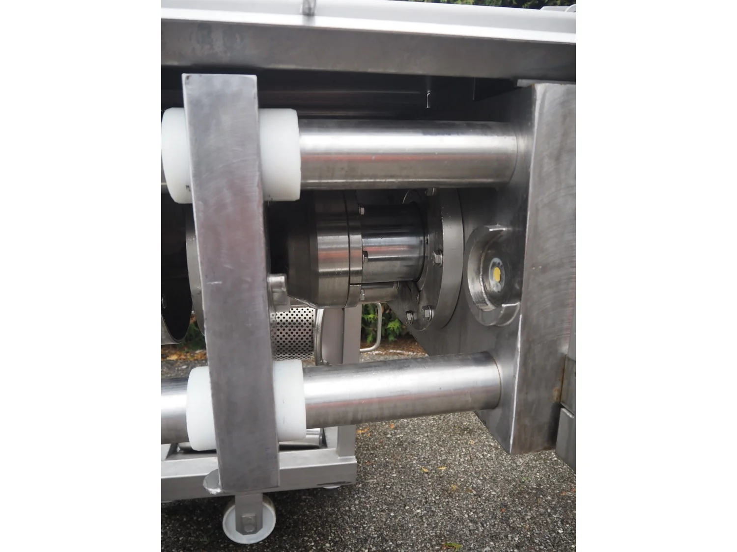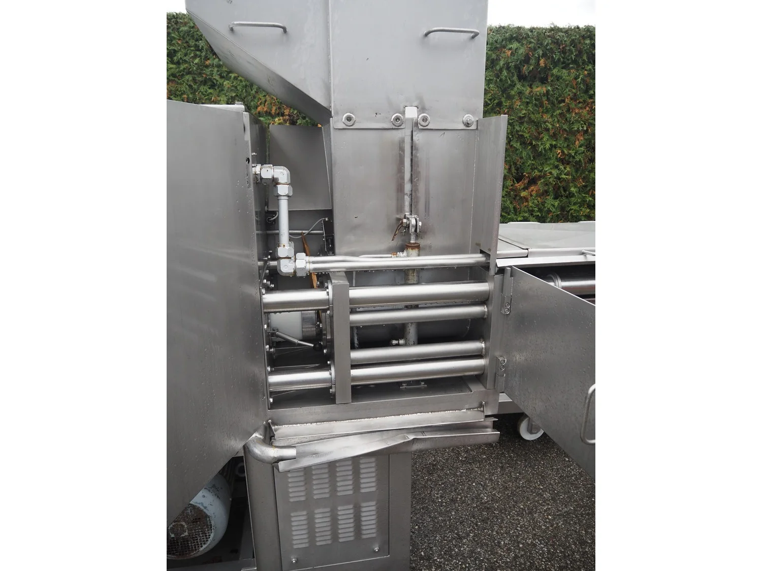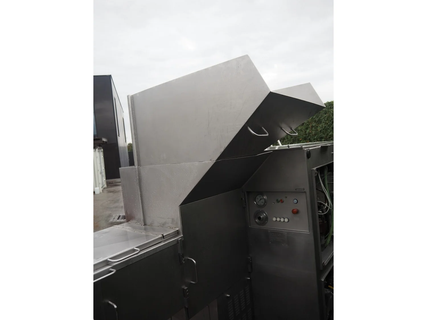 Inject Star separator, type: M16/P-60-S, number: 305, year of construction: 1998, 380 V, 3 Ph, 50 Hz, 18 kW, diameter drum: 210 mm, diameter perforations: 5 mm, total dimensions: 4350 mm x 1300 mm x 2200 mm. With lifter for meat bins and control panel.