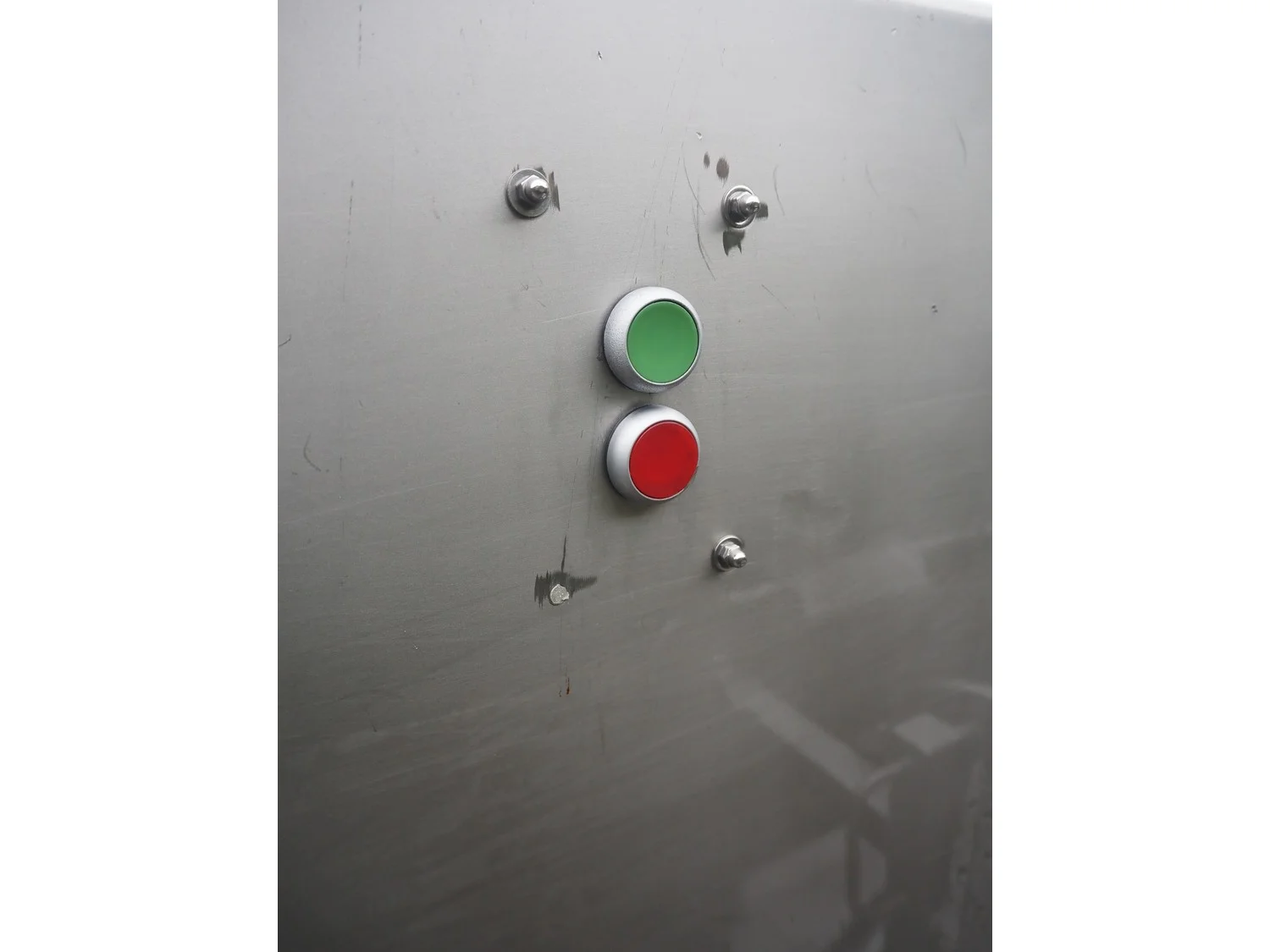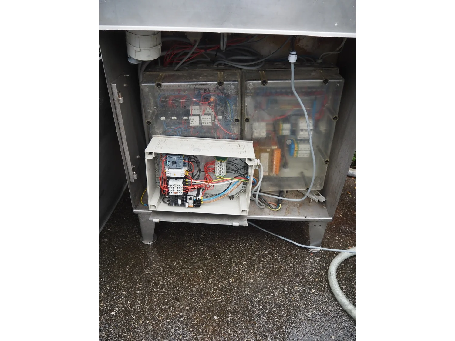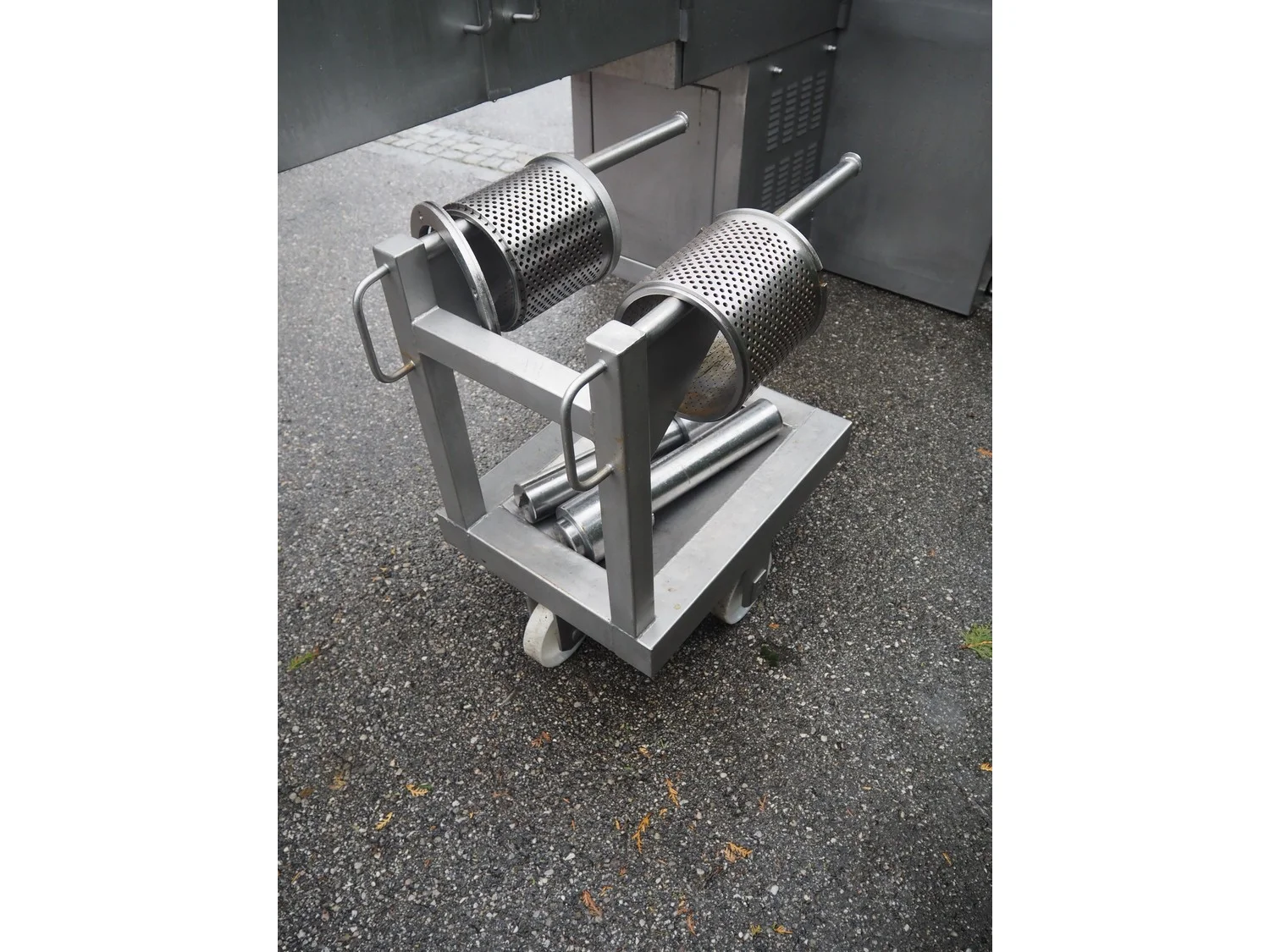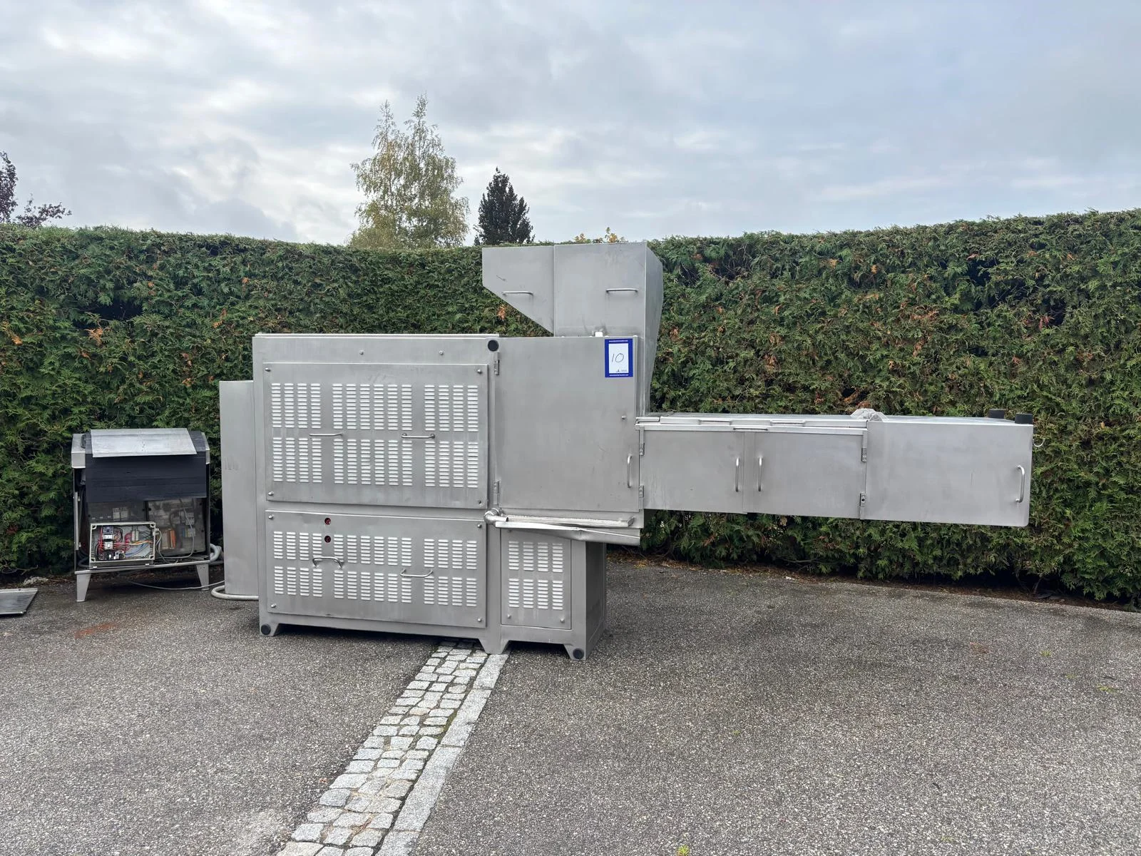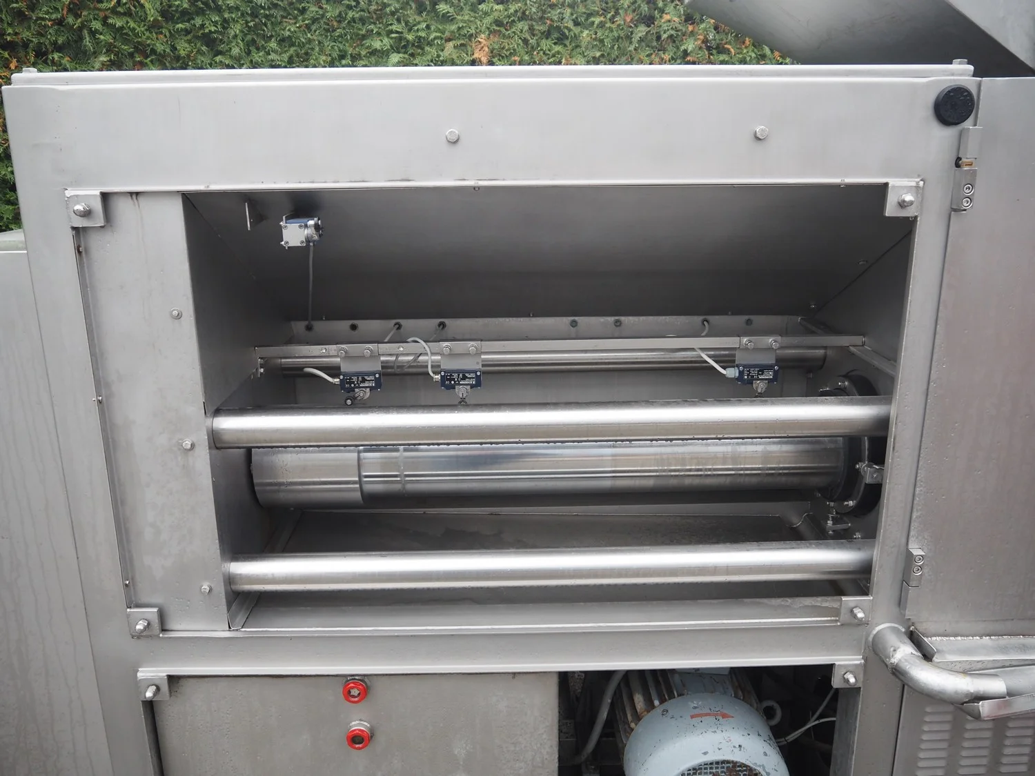 Inject Star separator, type: M16/P-60-S, number: 305, year of construction: 1998, 380 V, 3 Ph, 50 Hz, 18 kW, diameter drum: 210 mm, diameter perforations: 5 mm, total dimensions: 4350 mm x 1300 mm x 2200 mm. With lifter for meat bins and control panel.
