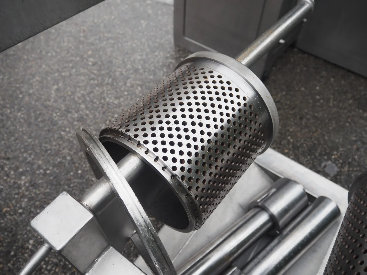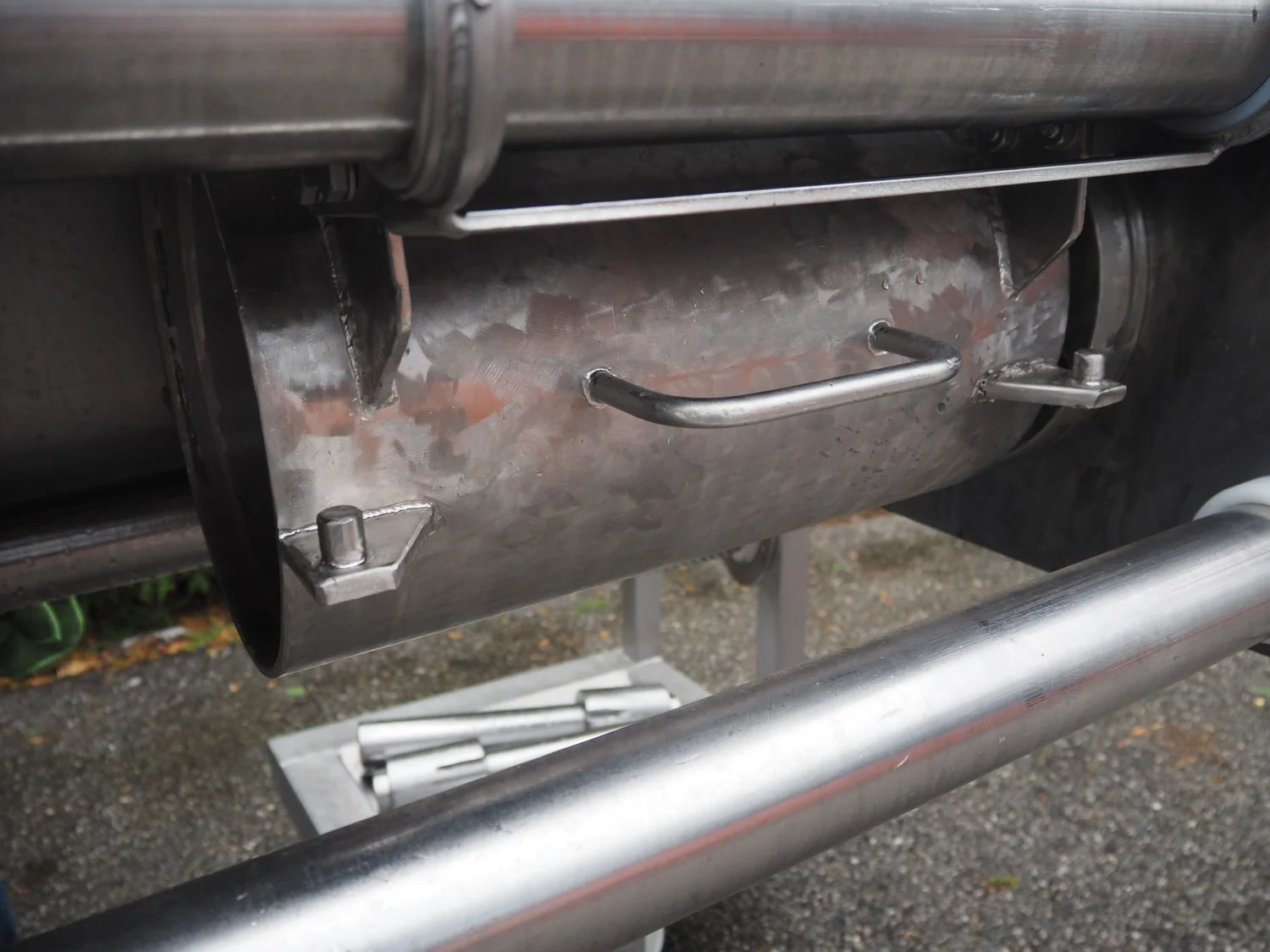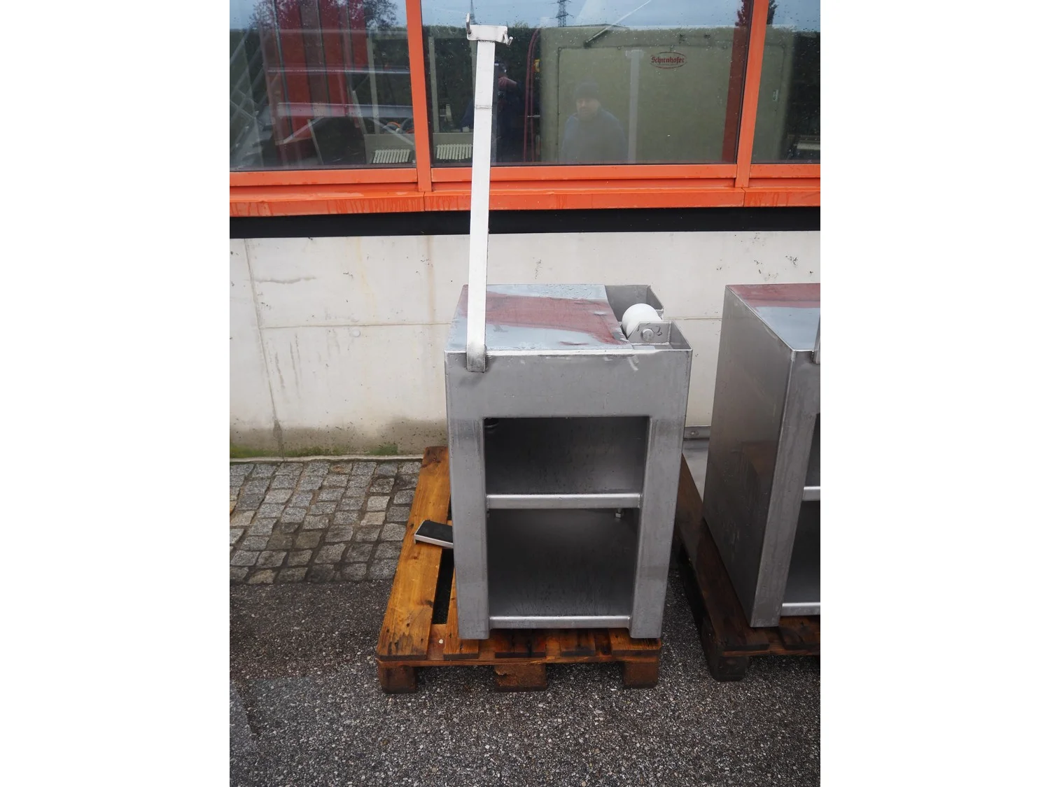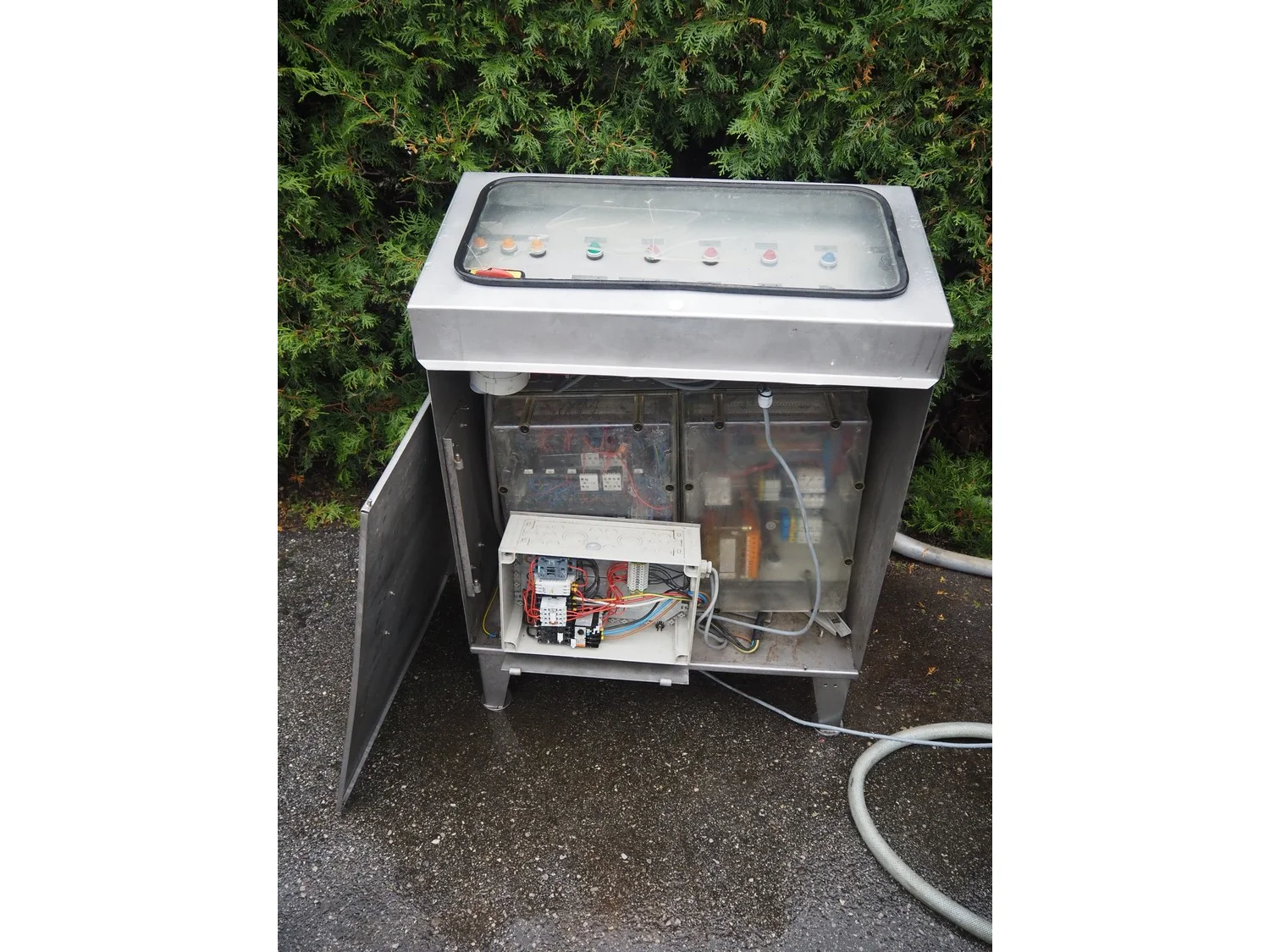 Inject Star separator, type: M16/P-60-S, number: 305, year of construction: 1998, 380 V, 3 Ph, 50 Hz, 18 kW, diameter drum: 210 mm, diameter perforations: 5 mm, total dimensions: 4350 mm x 1300 mm x 2200 mm. With lifter for meat bins and control panel.