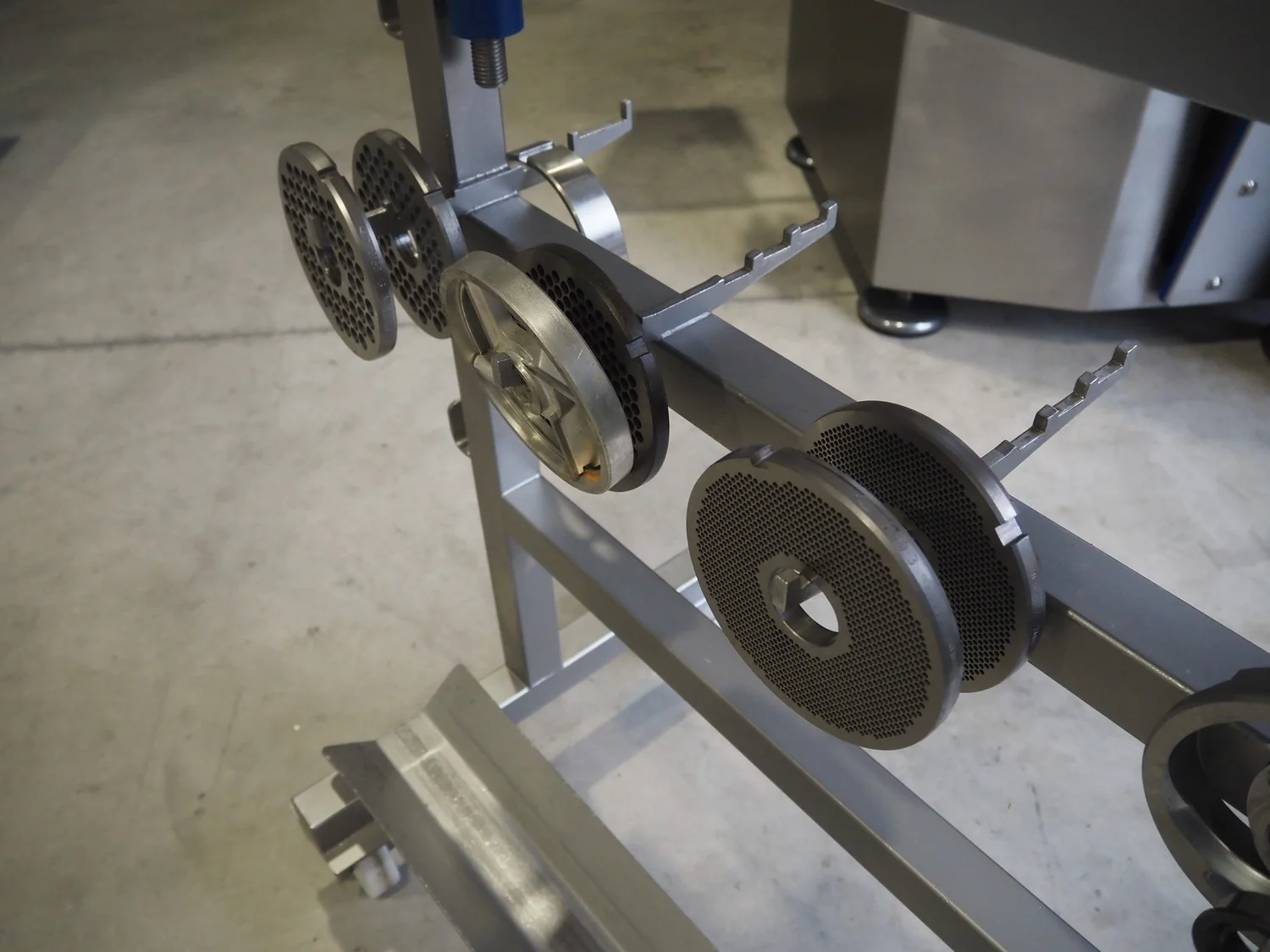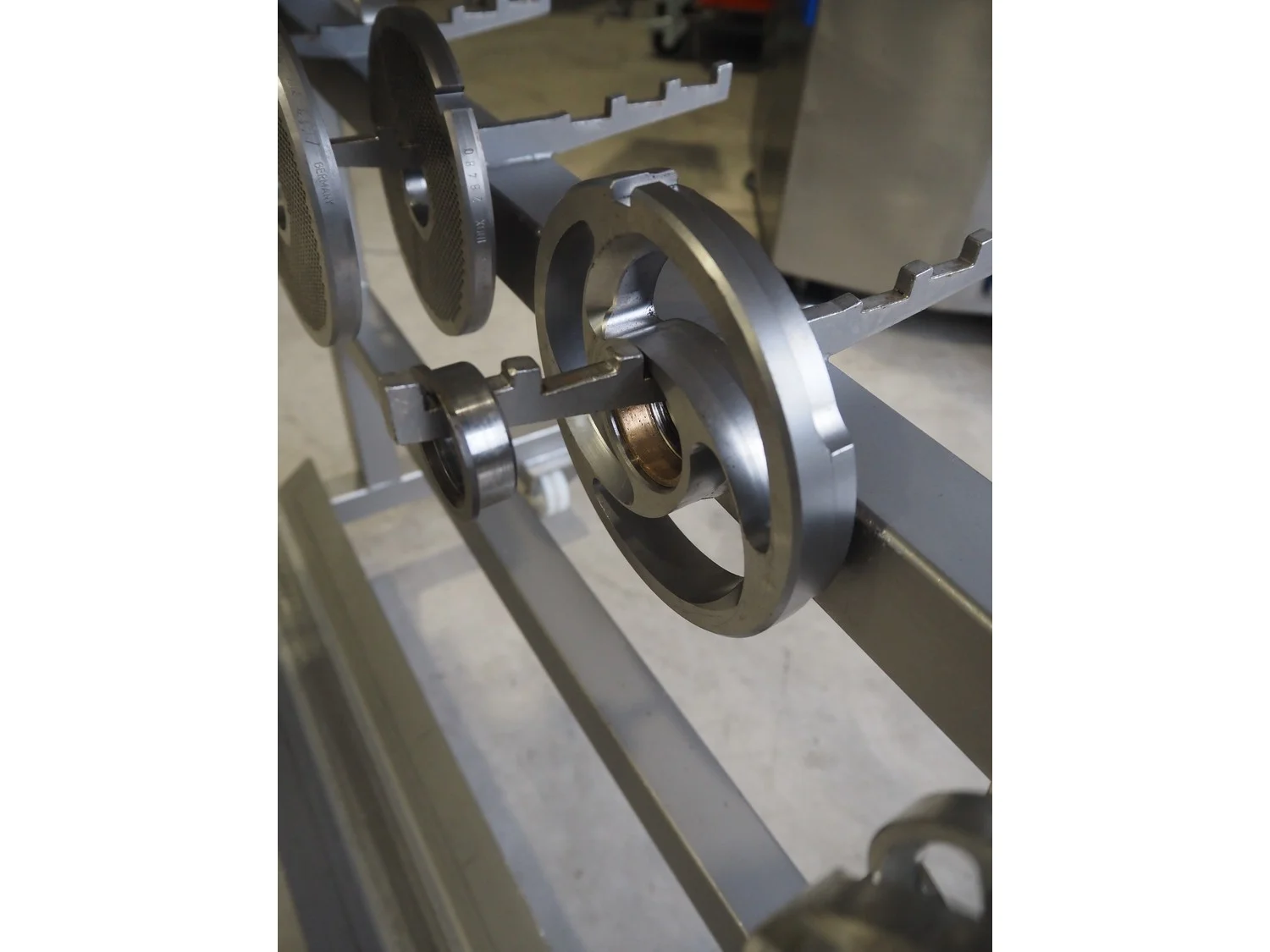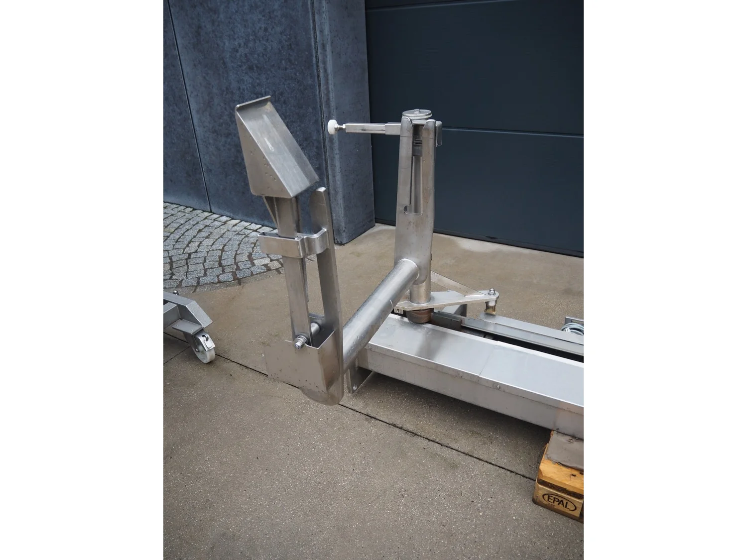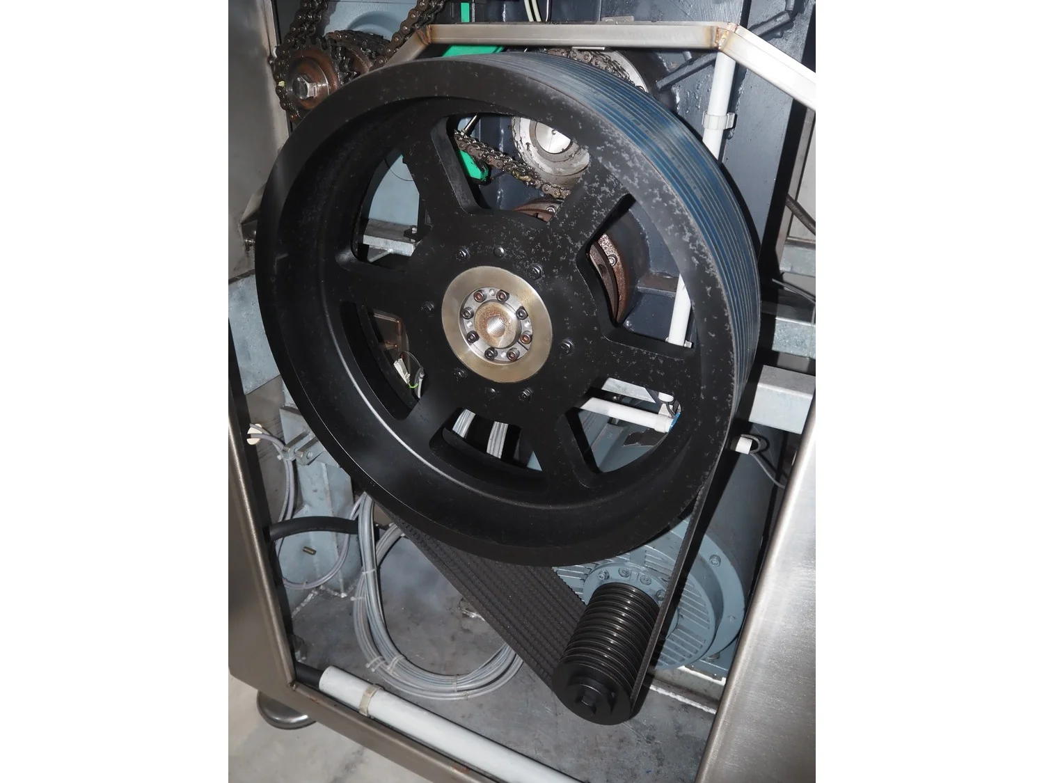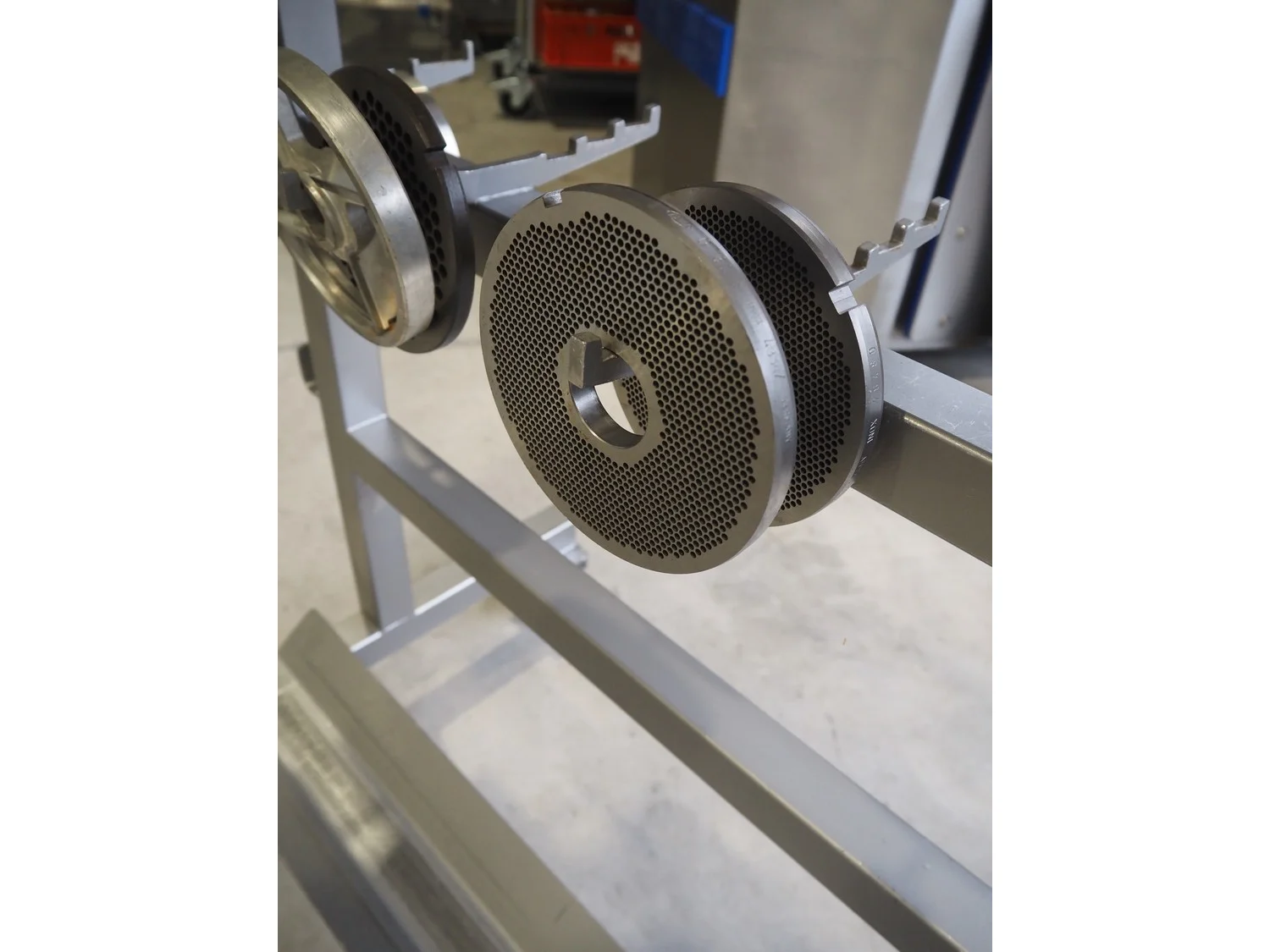 K+G Wetter cooled mixer-grinder, type: MAW G160, machine number: 414/1059, year of construction: 2018, 400 V, 3 Ph, 50 Hz, 72 A, 36 kW, plate diameter: 160 mm, total dimensions: 2400 mm x 1200 mm x 2200 mm. With tool trolley, dimensions: 1000 mm x 600 mm x 1120 mm and lifter for meat bins, lifting height: 2200 mm, dimensions lifter: 3200 mm x 1300 mm x 1200 mm