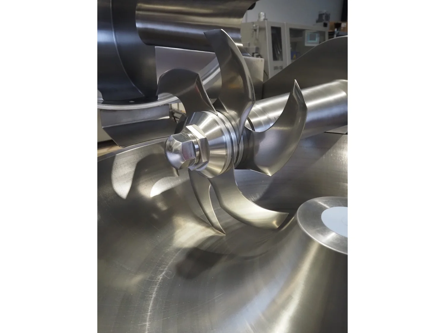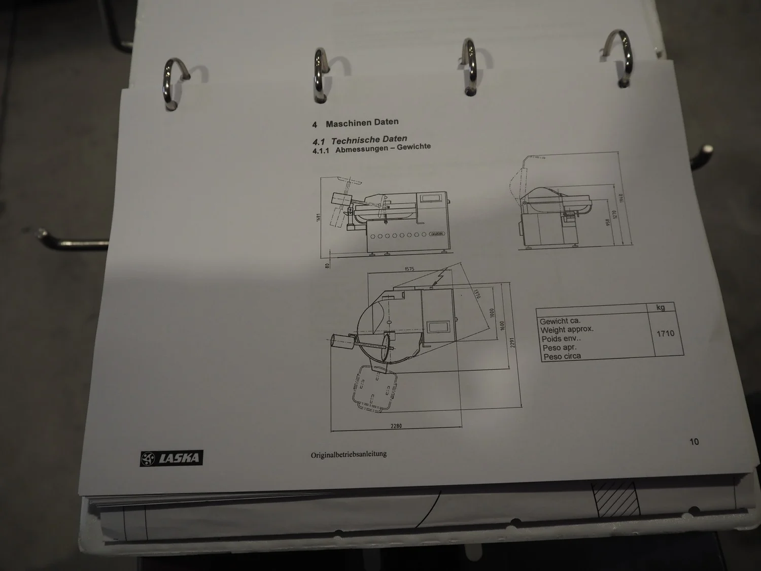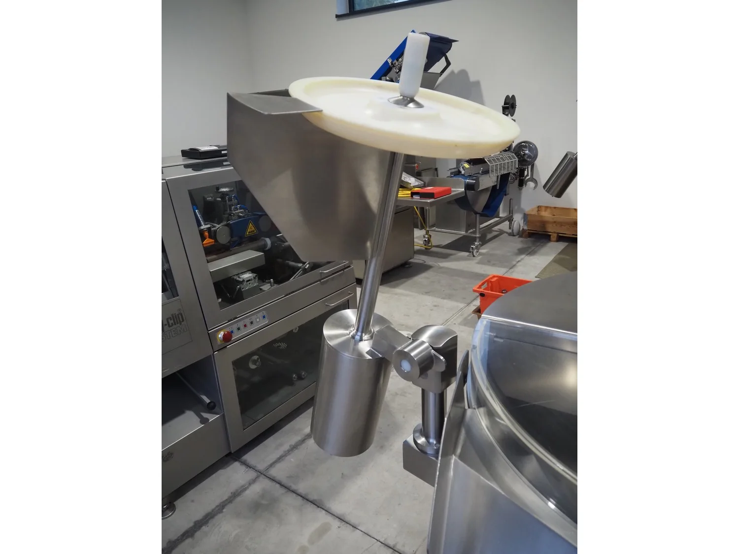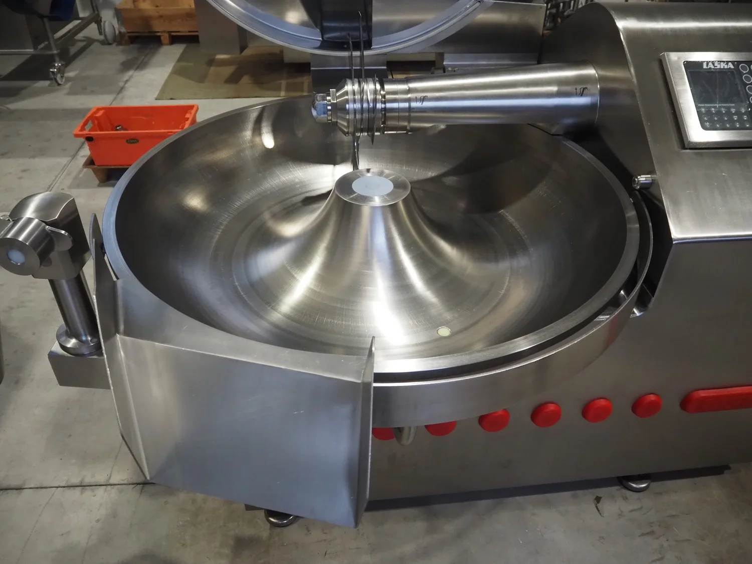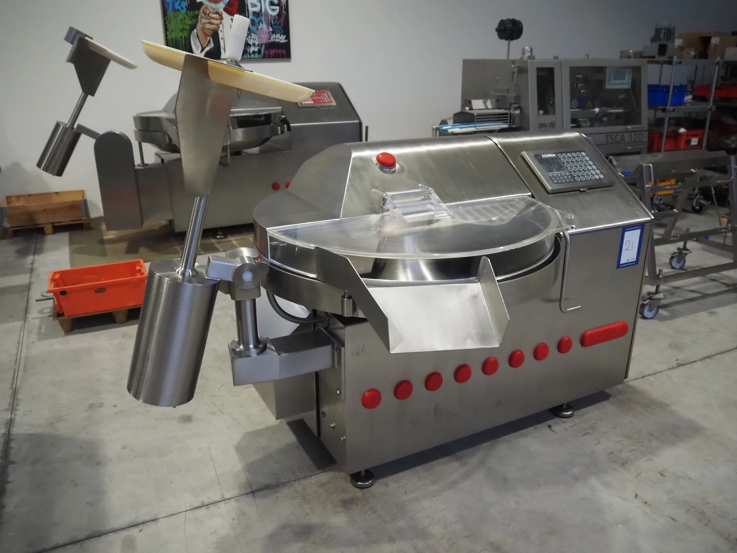 Laska cutter with ejector, type: KU 130 AC, machine number: 15253, year of construction: 2015, 380 V, 3 Ph, 50 Hz, 127 A, 62 kW, s/s bowl, volume: 130 liter, dimensions: 2280 mm x 1600 mm x 1680 mm.