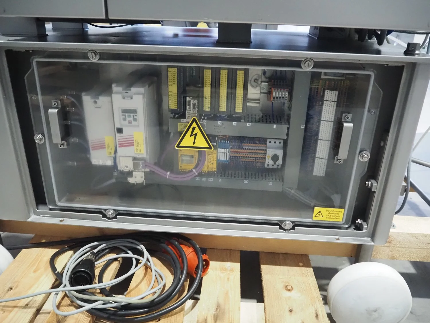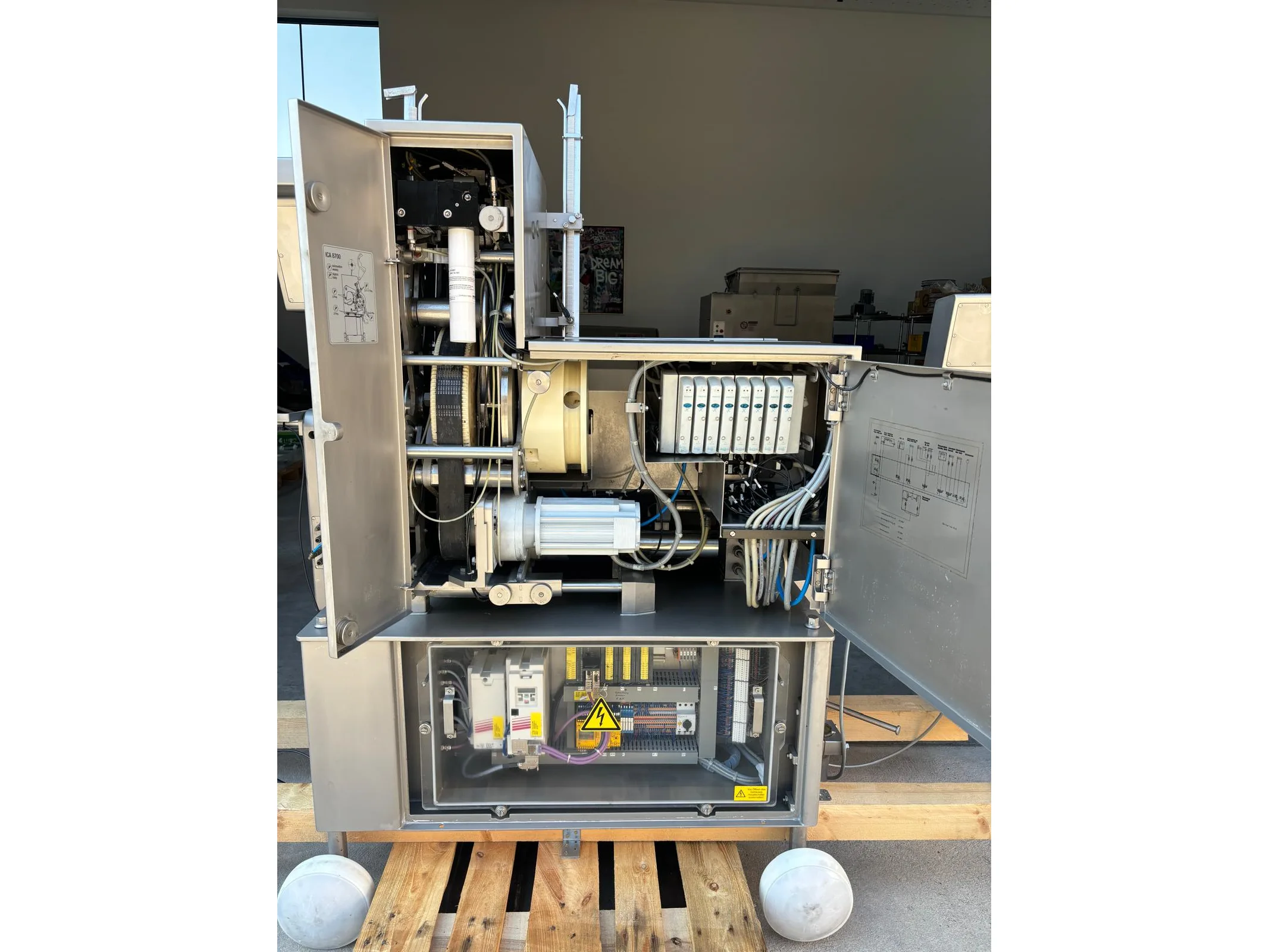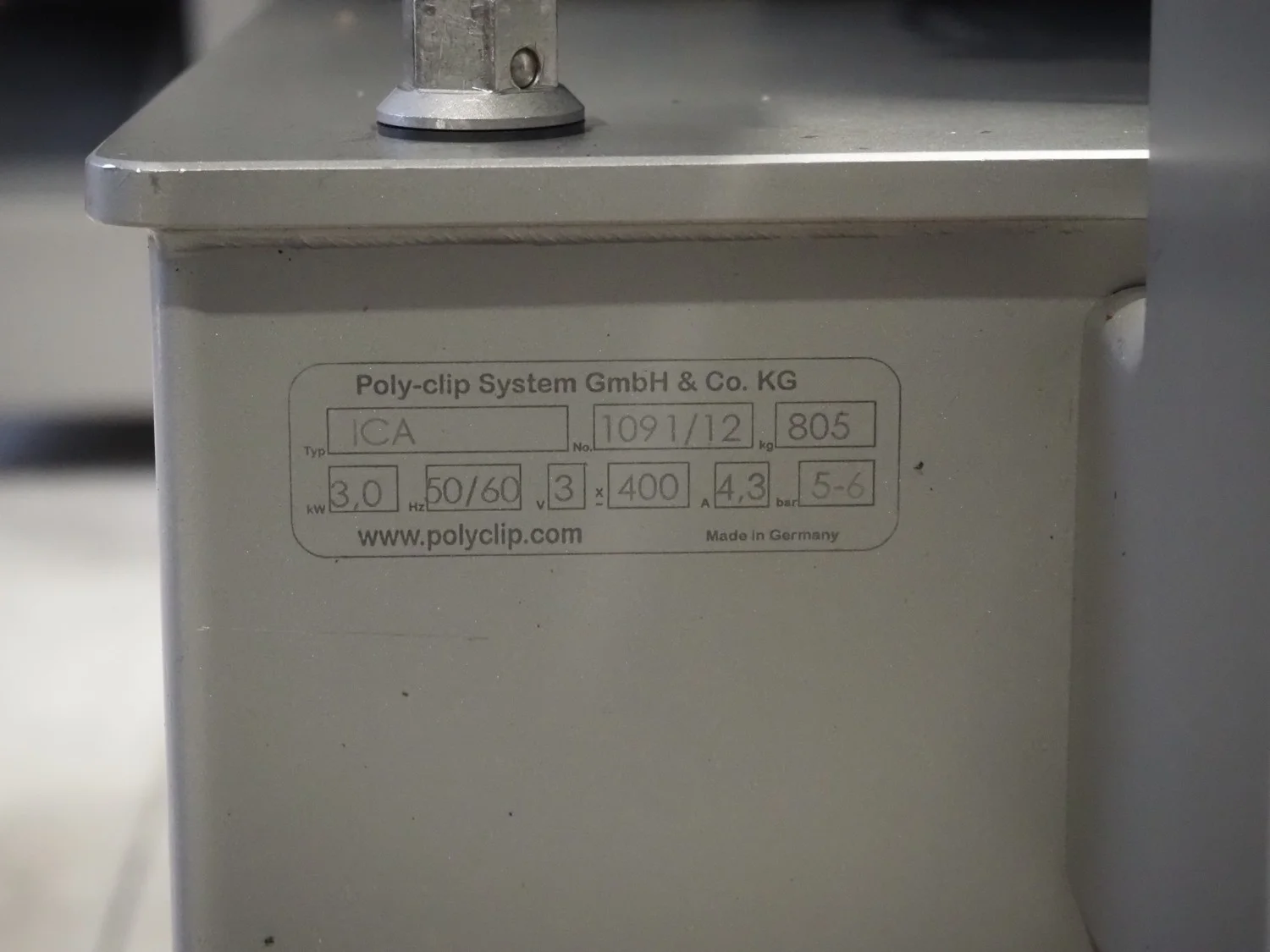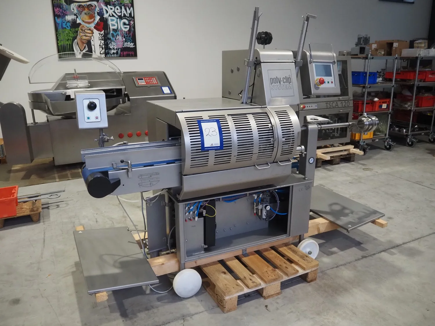 Poly-clip System GmbH & Co. KG mobile double clipper, type: ICA, number: 1091, year of construction: 2012, 400 V, 3 Ph, 50/60 Hz, 4.3 A, 3.0 kW, 805 kg, dimensions: 2200 mm x 1100 mm x 1950 mm. Overhauled in 2025.