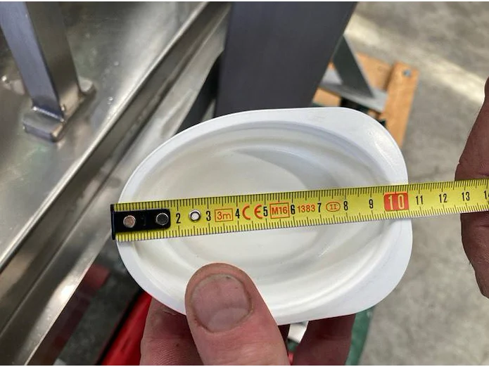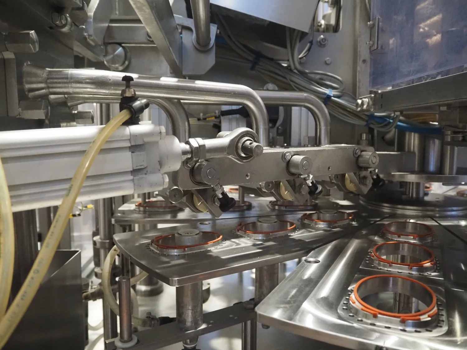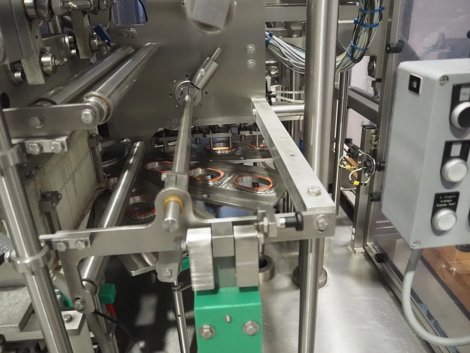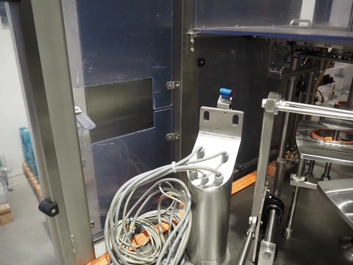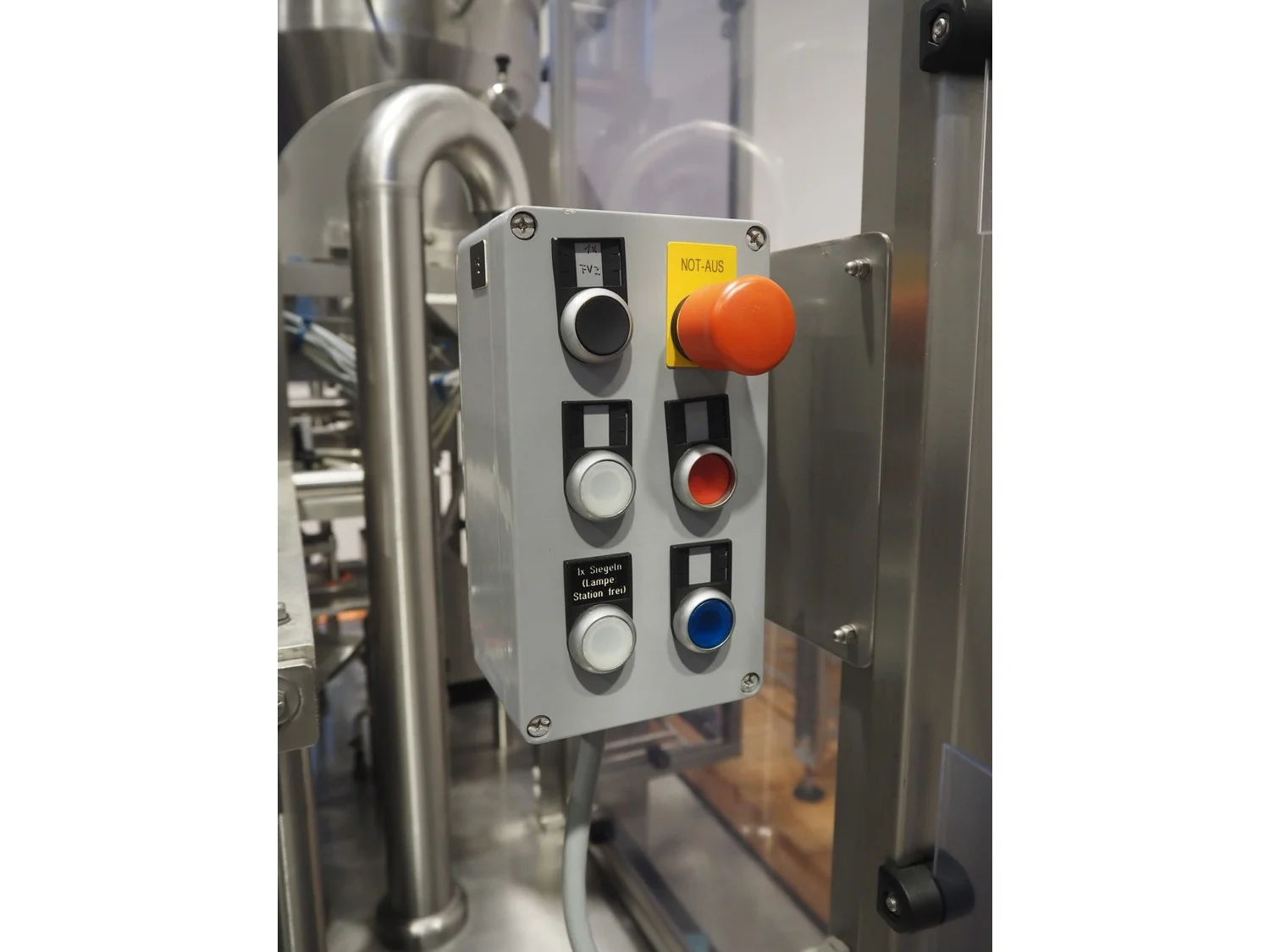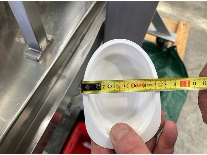 Herbert Grunwald GmbH cup filling and sealing machine, type: Hittpac AKH-059/3, number: 29/07, year of construction: 2007, 400 V, 3 Ph, 50 Hz, 18.0 A, 8.0 kW, Busch vacuum pump, dimensions cups: 100 mm x 70 mm, total dimensions: 3650 mm x 3150 mm x 2300 mm.