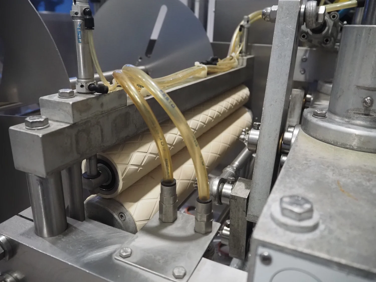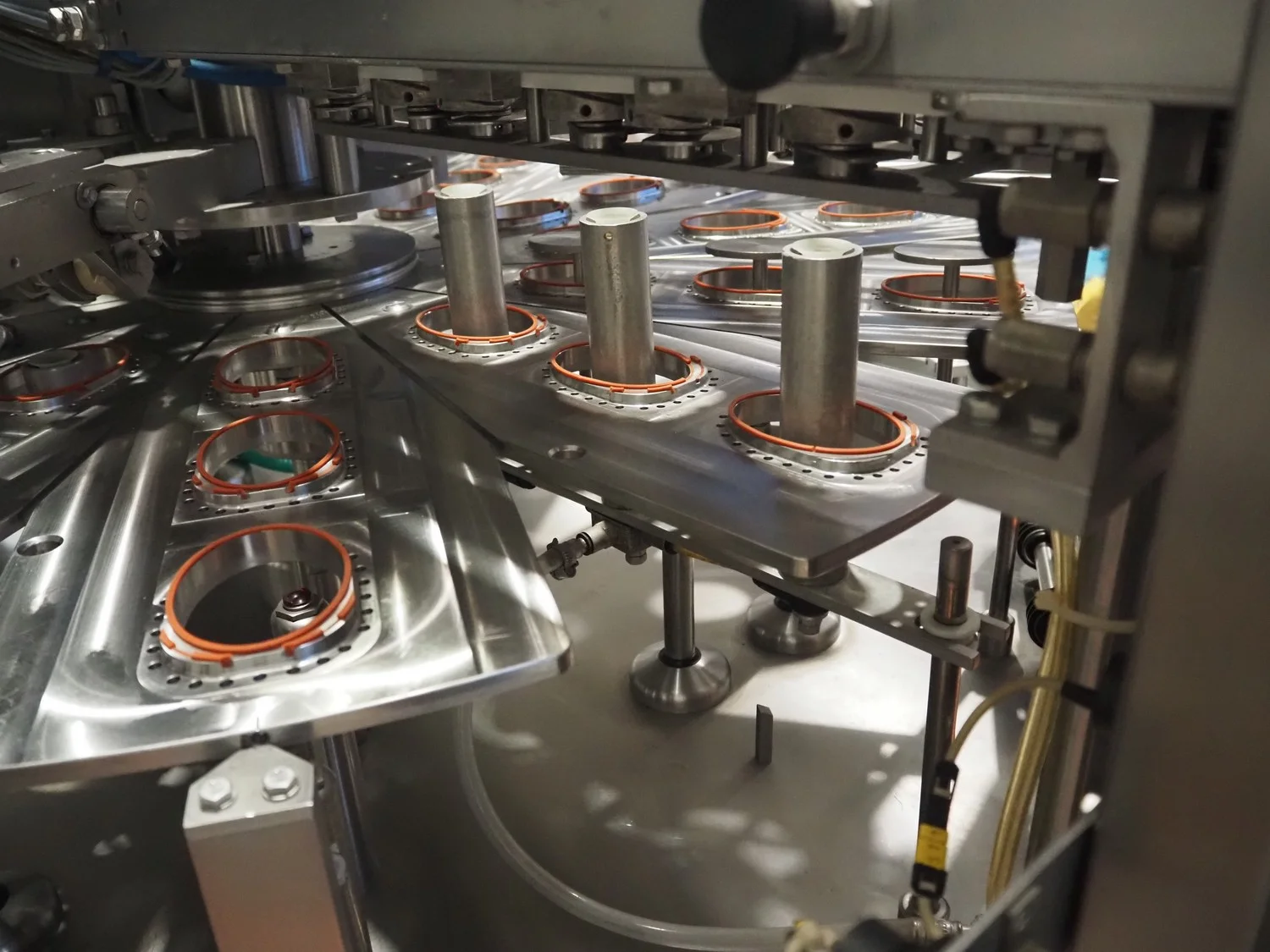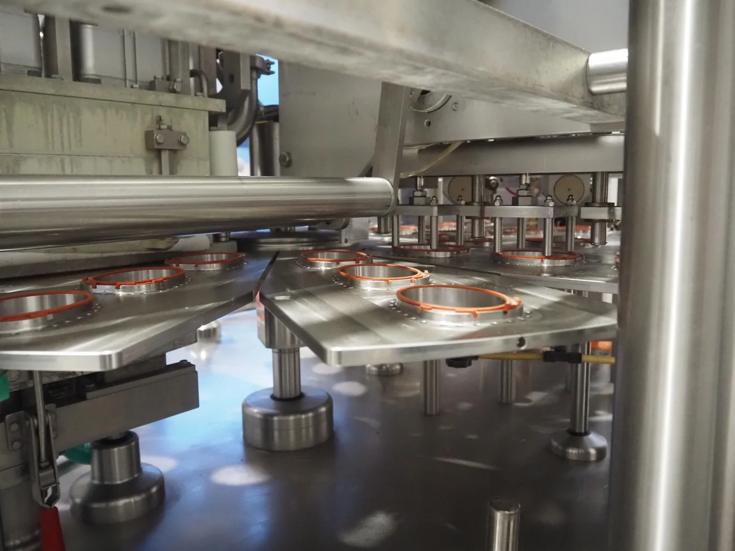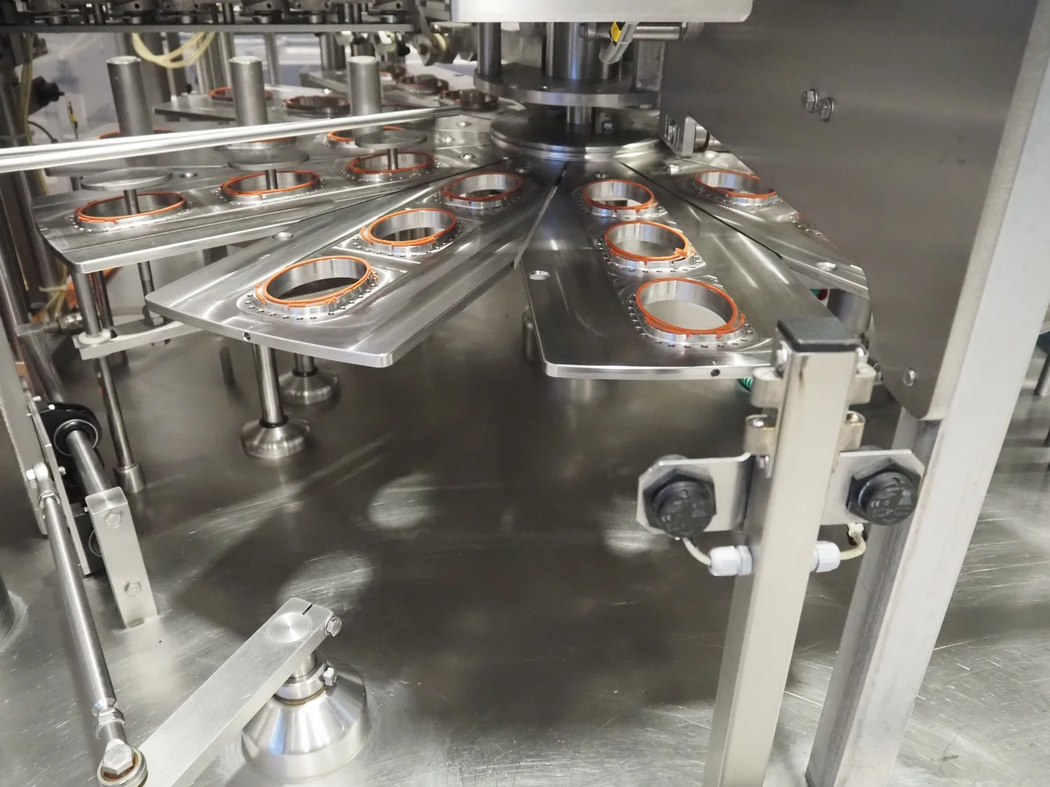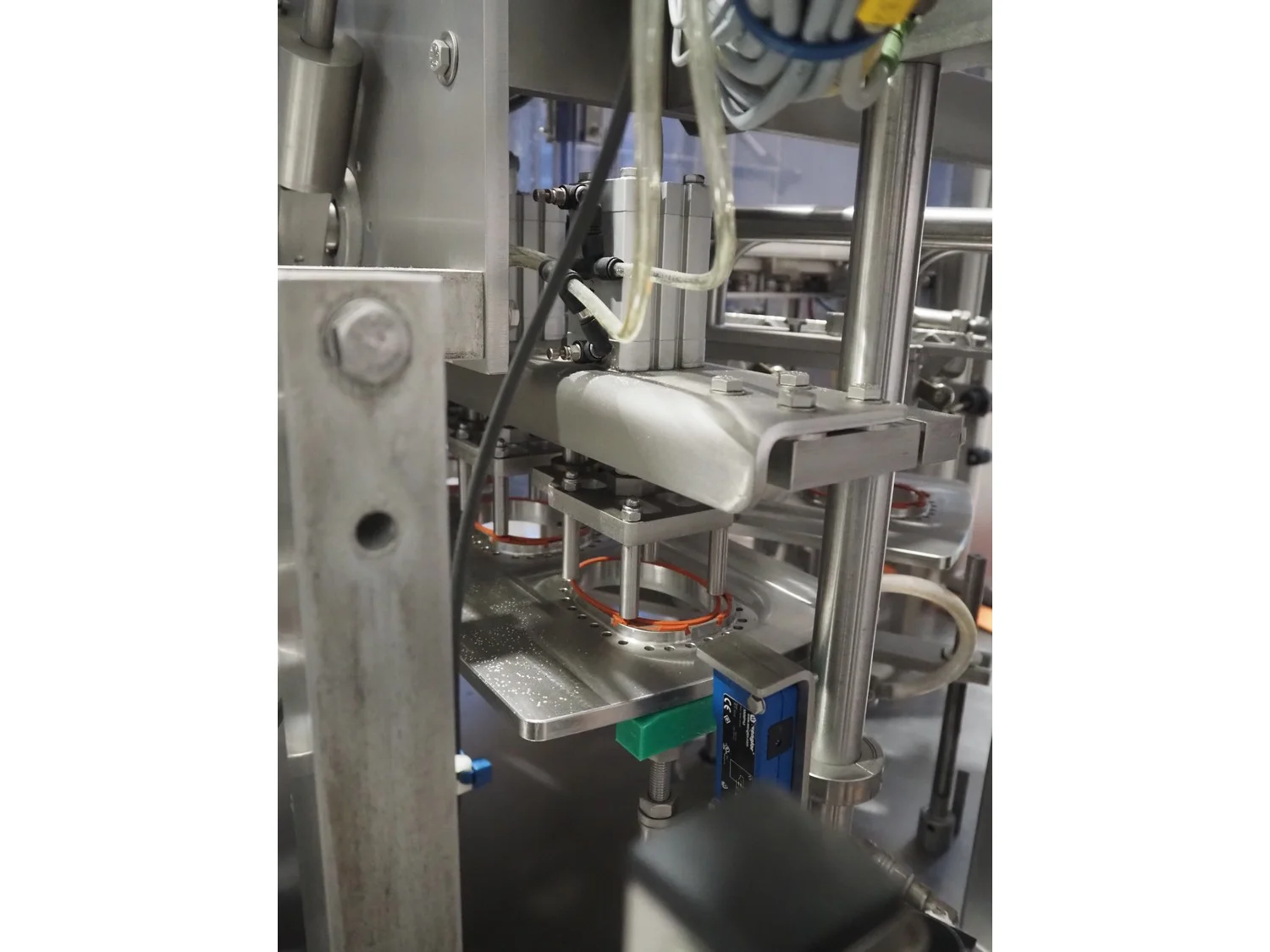 Herbert Grunwald GmbH cup filling and sealing machine, type: Hittpac AKH-059/3, number: 29/07, year of construction: 2007, 400 V, 3 Ph, 50 Hz, 18.0 A, 8.0 kW, Busch vacuum pump, dimensions cups: 100 mm x 70 mm, total dimensions: 3650 mm x 3150 mm x 2300 mm.