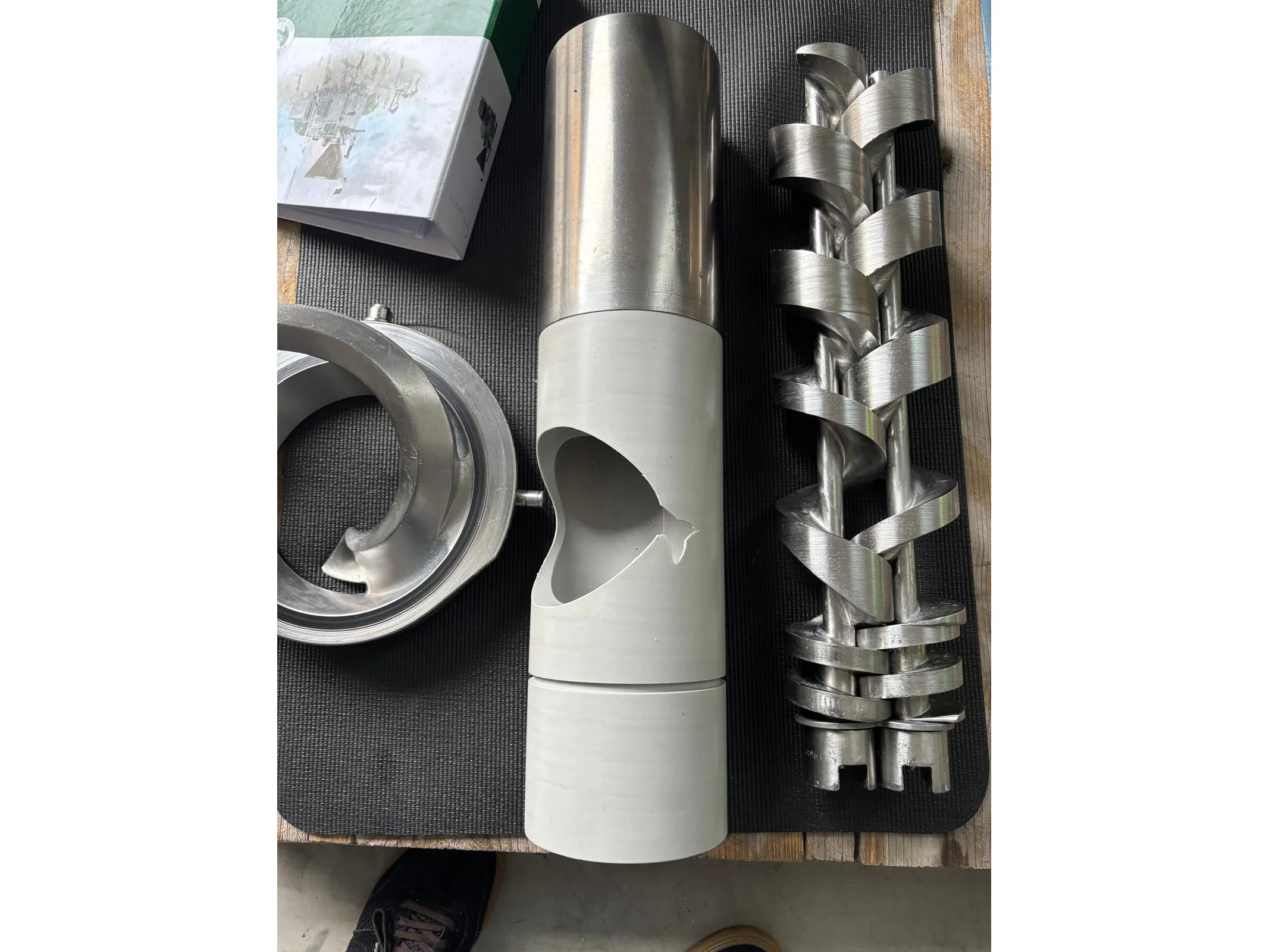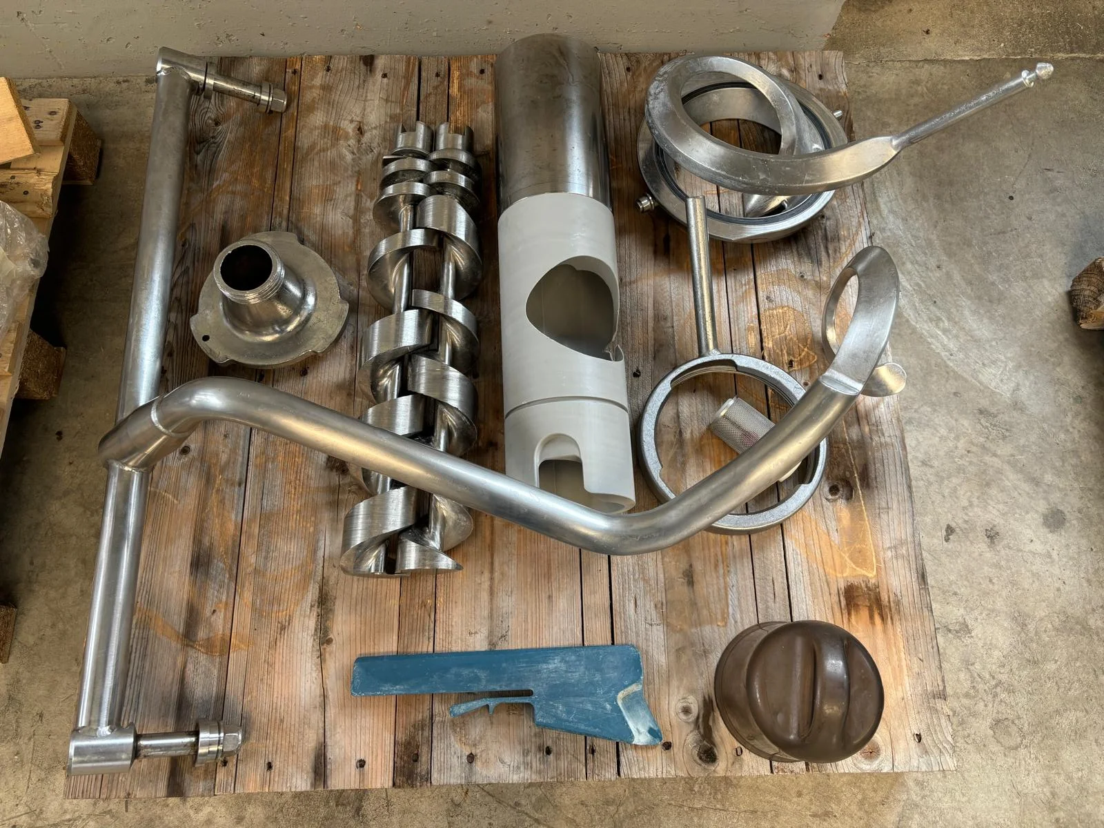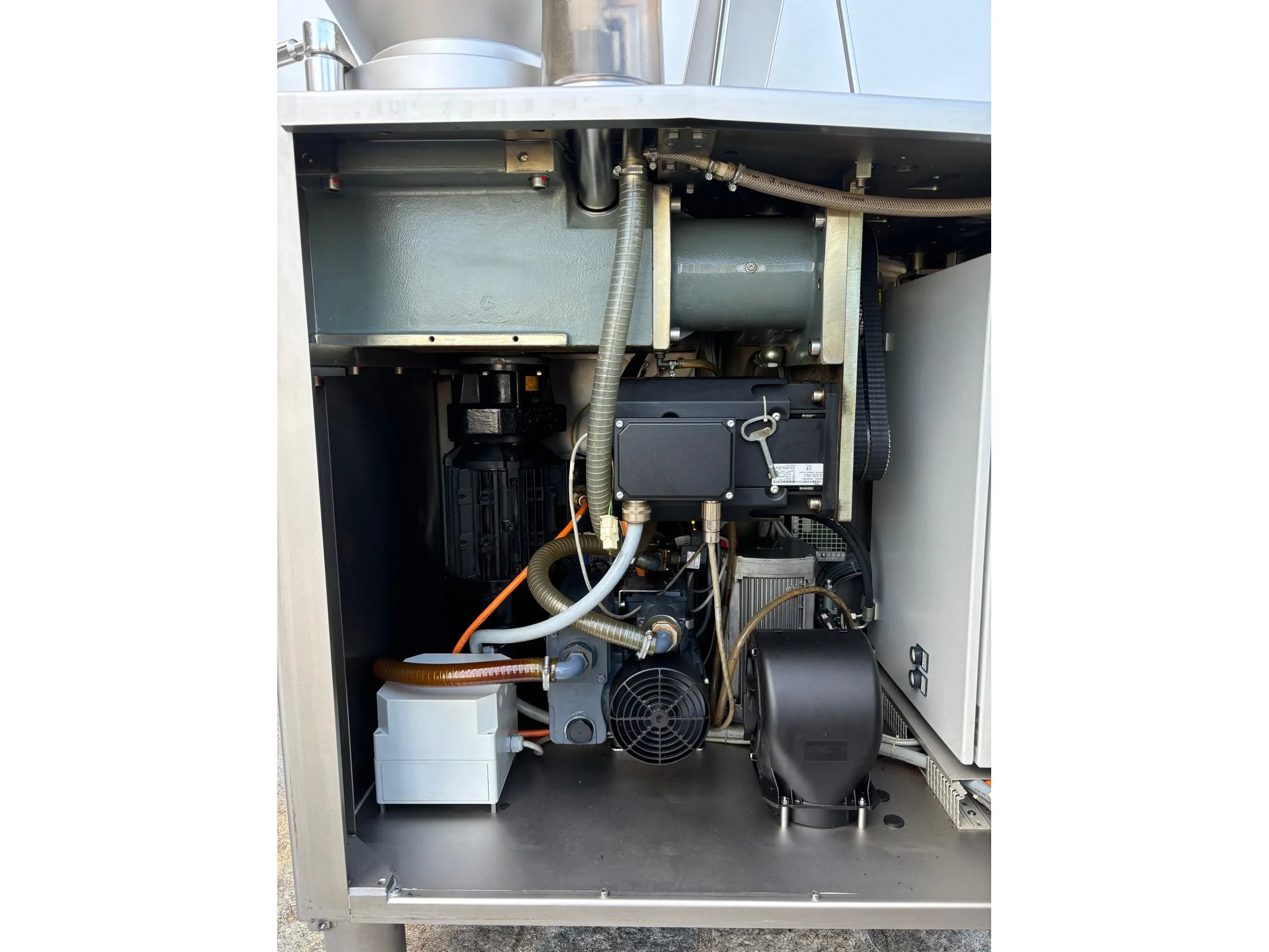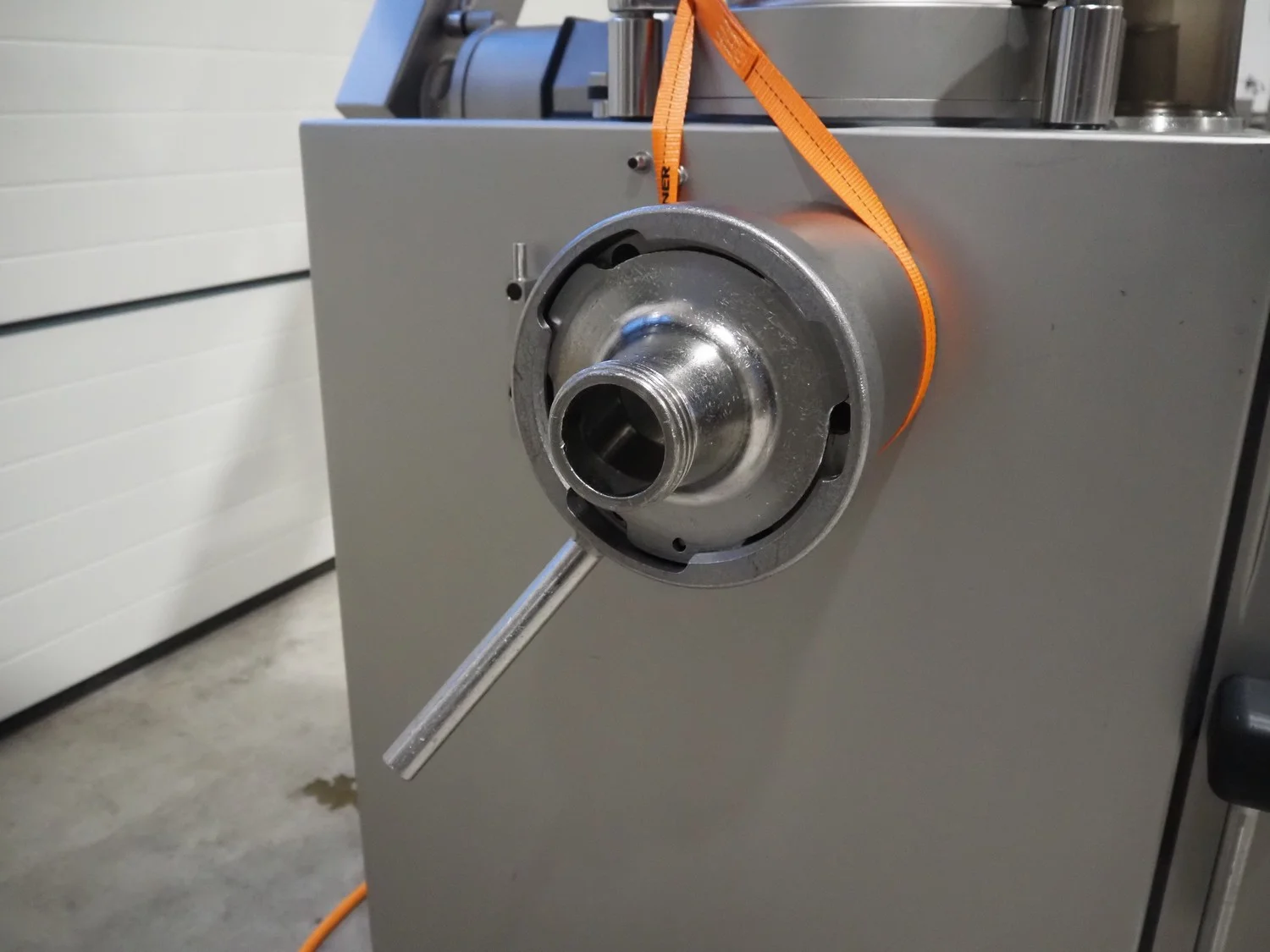 Vemag vacuum filling machine with lifter for meat bins, model: HP15E, number: 1620676, year of construction: 2017, 400-460 V, 3 Ph, 50/60 Hz, 38 A, 23 kW, dimensions: 2150 mm x 1450 mm x 2500 mm.