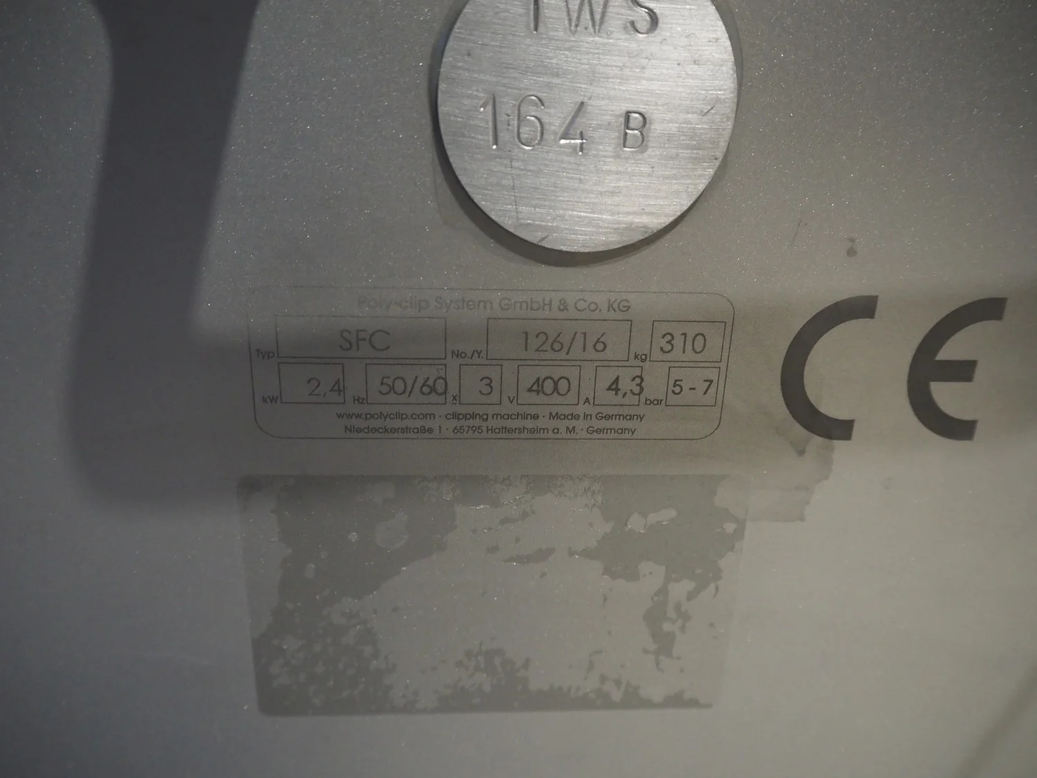 Poly-clip System GmbH & Co. KG mobile clipper, type: SFC, number: 126, year of construction: 2016, 400 V, 3 Ph, 50/60 Hz, 4.3 A, 2.4 kW, dimensions: 1850 mm x 900 mm x 1800 mm.