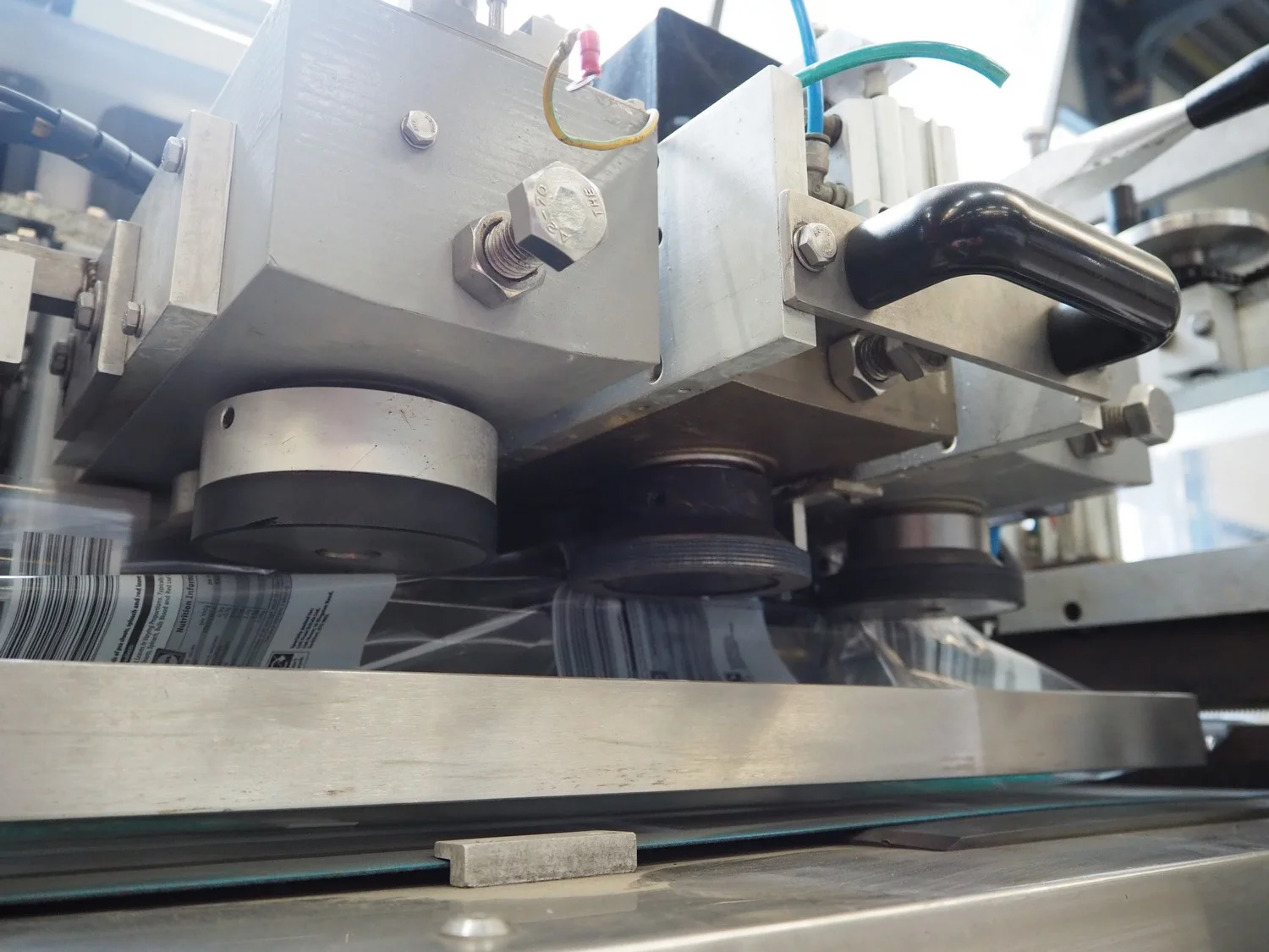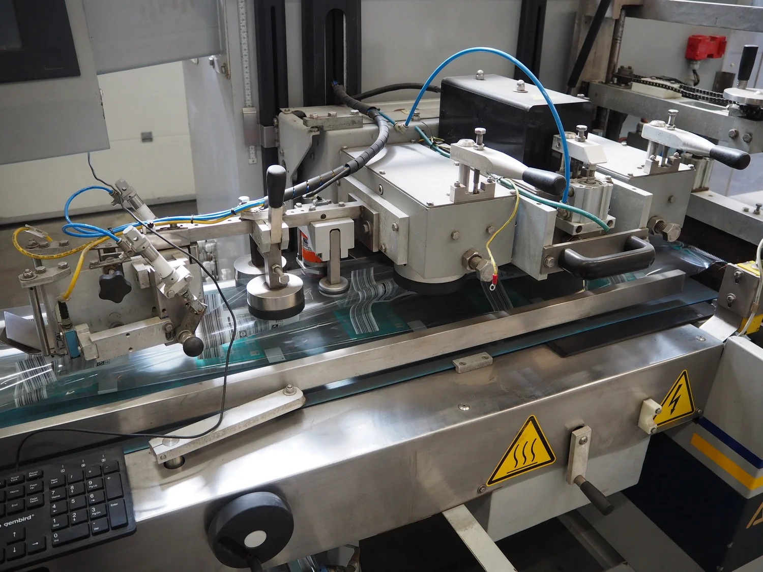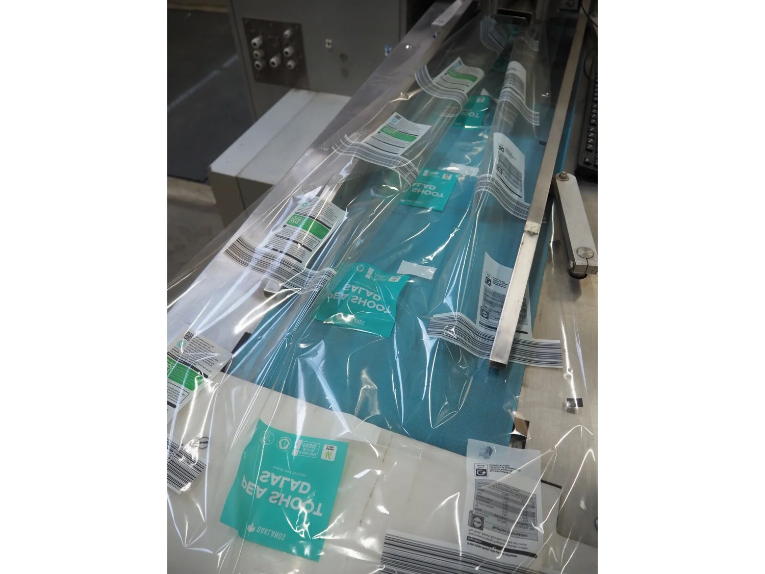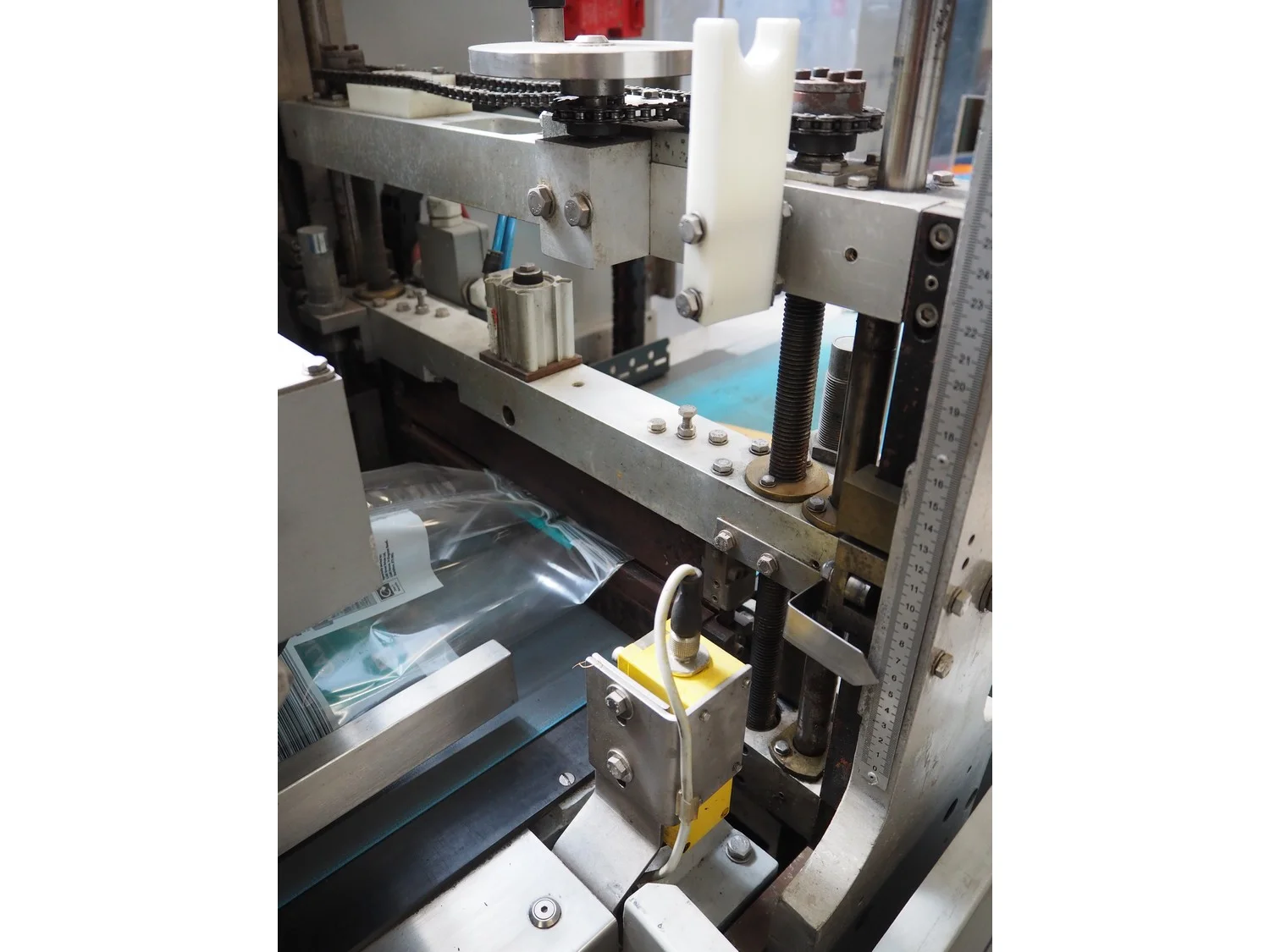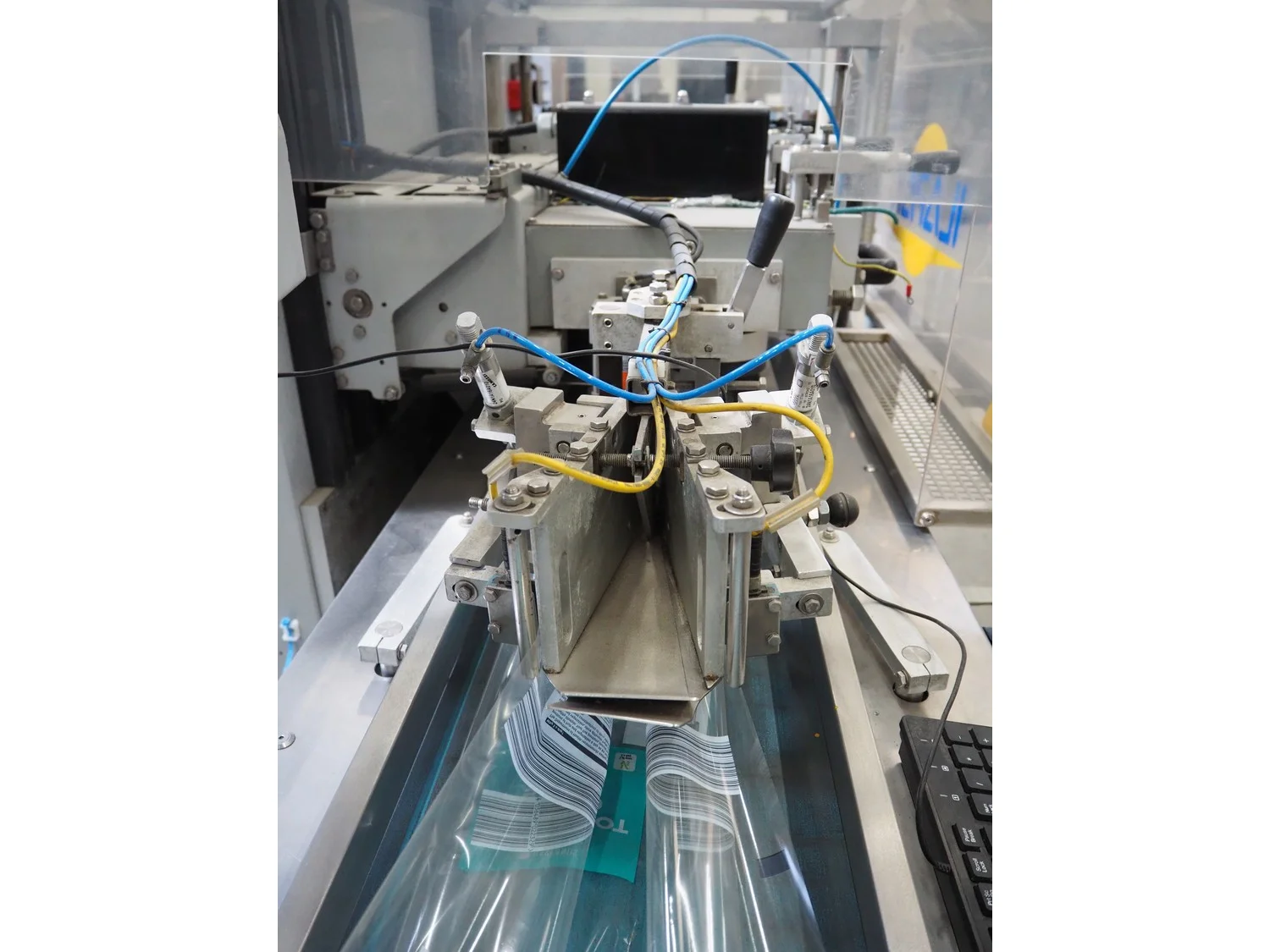 Ilapak flowpacker, type: ASTRA PC, serial number: 0100300118, year of construction: 2010-10, 400 V, 50 Hz, 5000 Watt, seal width: 350 mm, plastic belt, belt width: 300 mm, film width: 550 mm, total dimensions: 3300 mm x 1400 mm x 1900 mm.