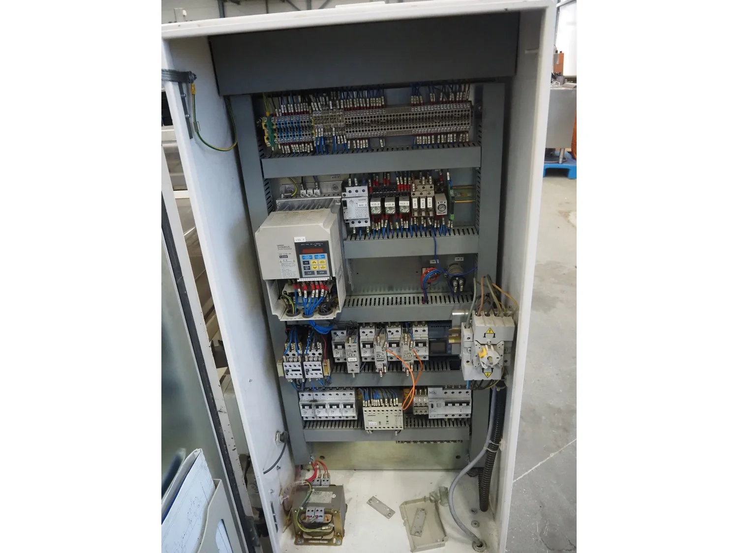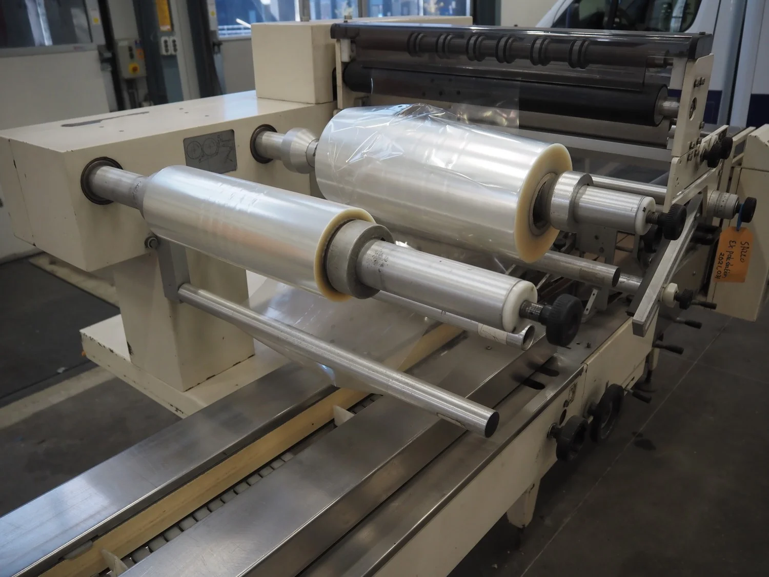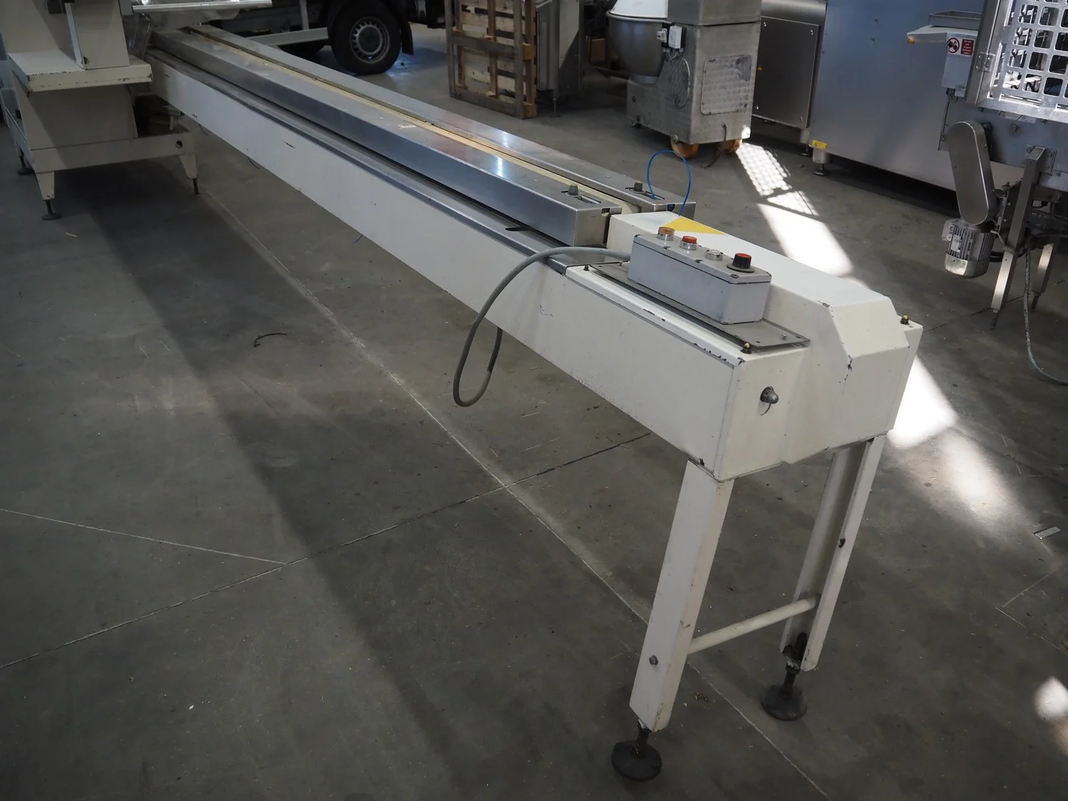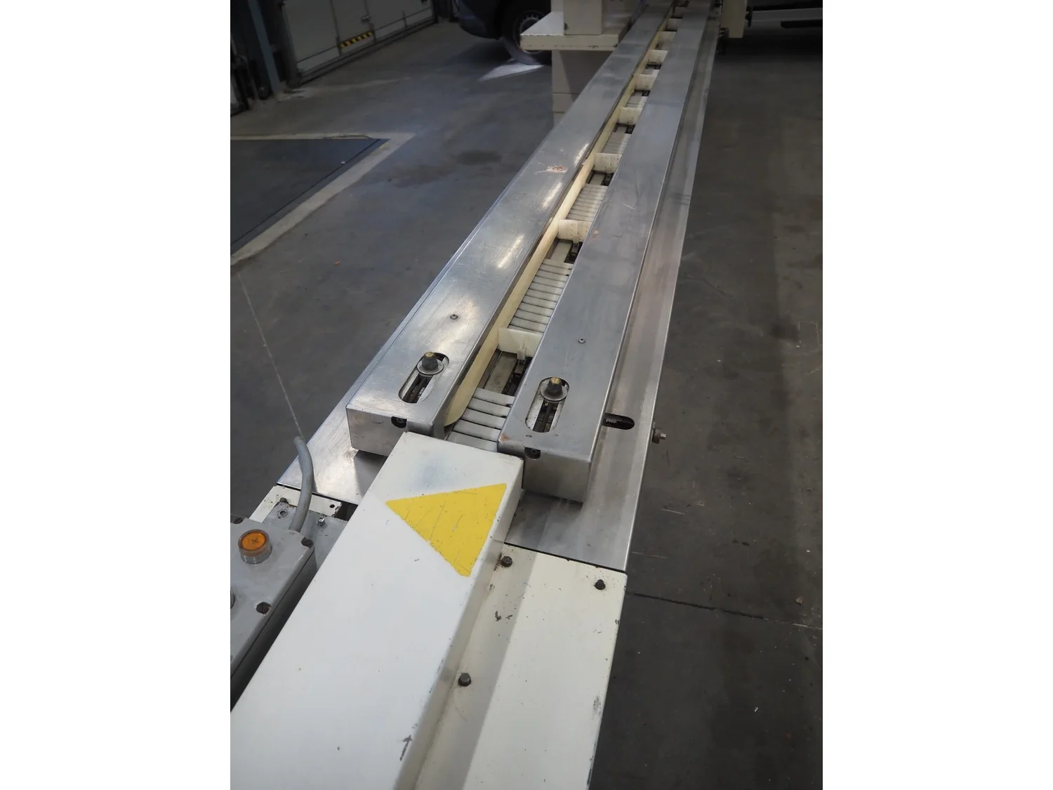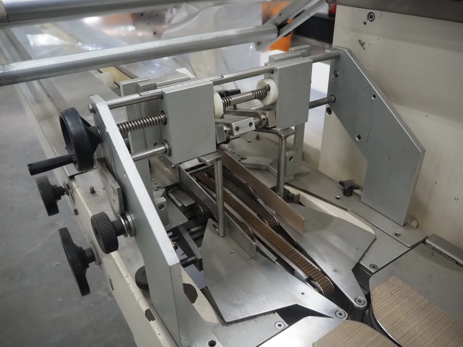 Ilapak Italia S.p.a. flowpacker, type: Superflow, serial number: 99 056, 400 V, 3 Ph, 50 Hz, 10 A, seal width: 250 mm, plastic belt, belt width: 100 mm, film width: 400 and 350 mm, total dimensions: 6800 mm x 1300 mm x 1600 mm.