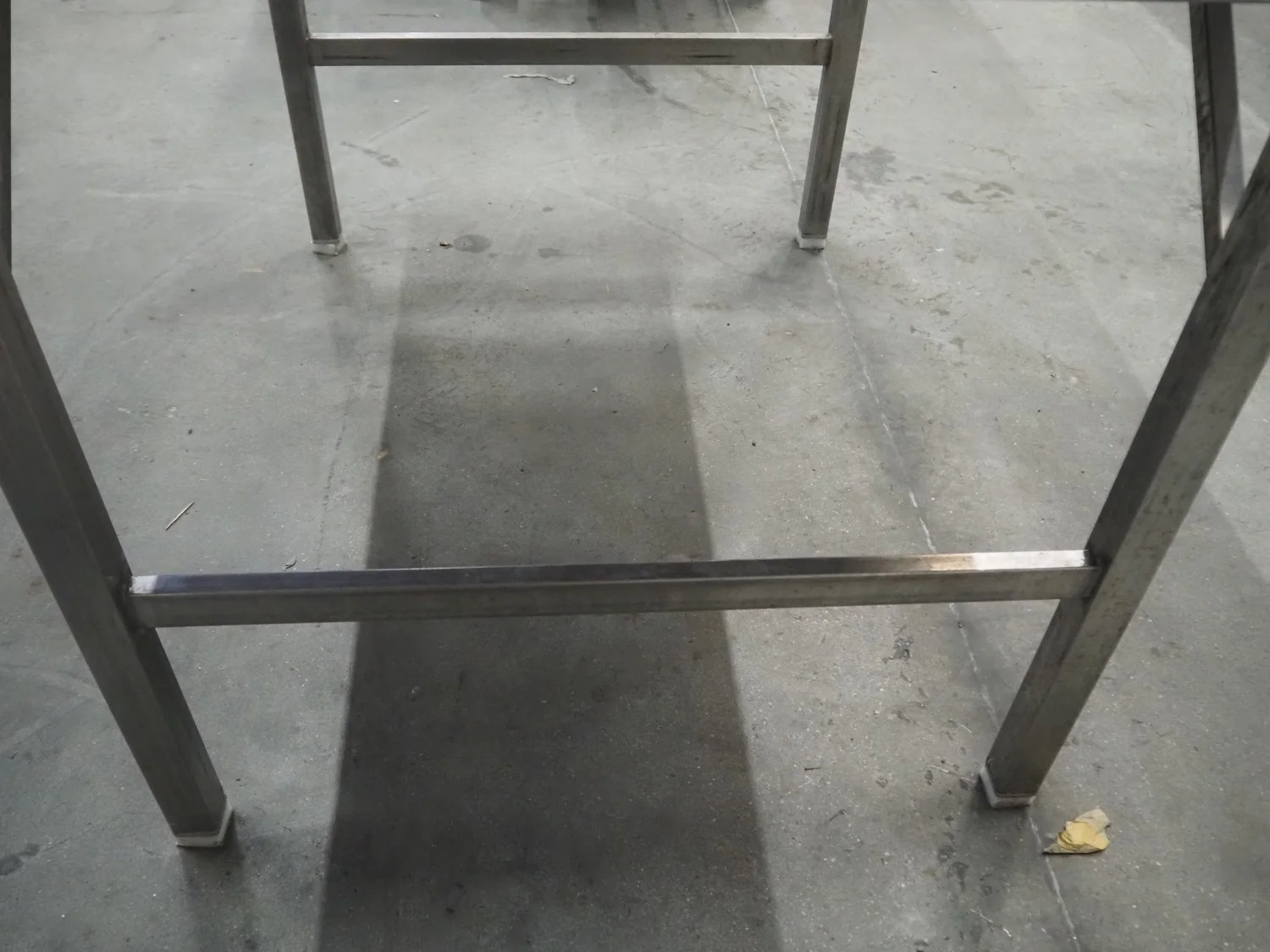 Table, s/s frame, plastic worktop, dimensions: 1100 mm x 900 mm x 850 mm.