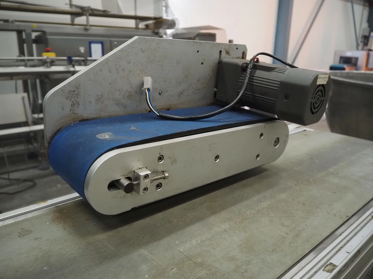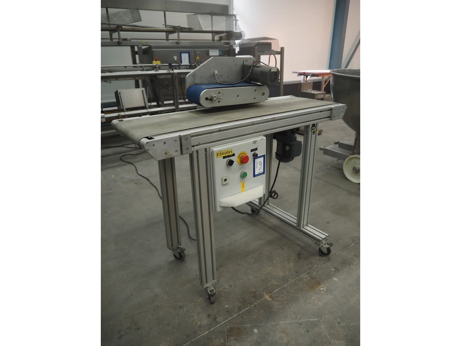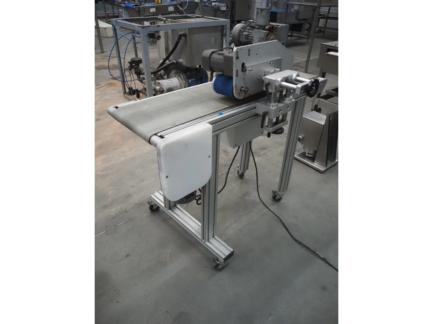Mobile transport belt, plastic belt, belt width: 300 mm, total dimensions: 1250 mm x 750 mm x 1150 mm.