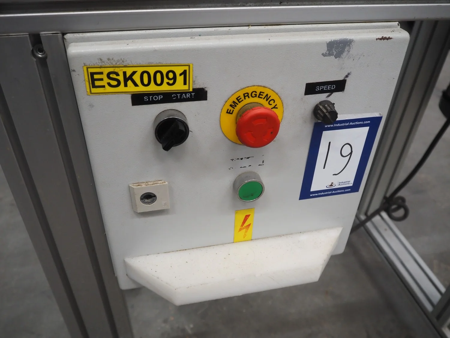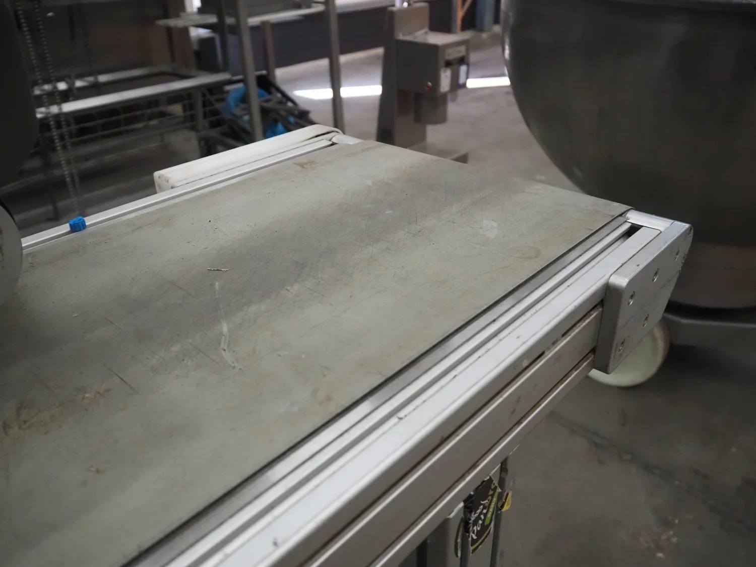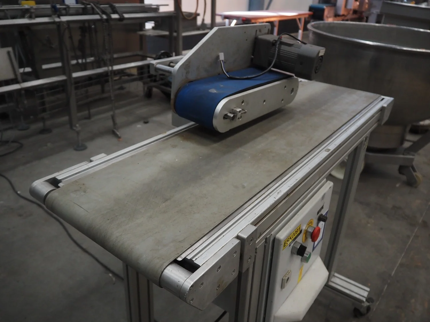 Mobile transport belt, plastic belt, belt width: 300 mm, total dimensions: 1250 mm x 750 mm x 1150 mm.
