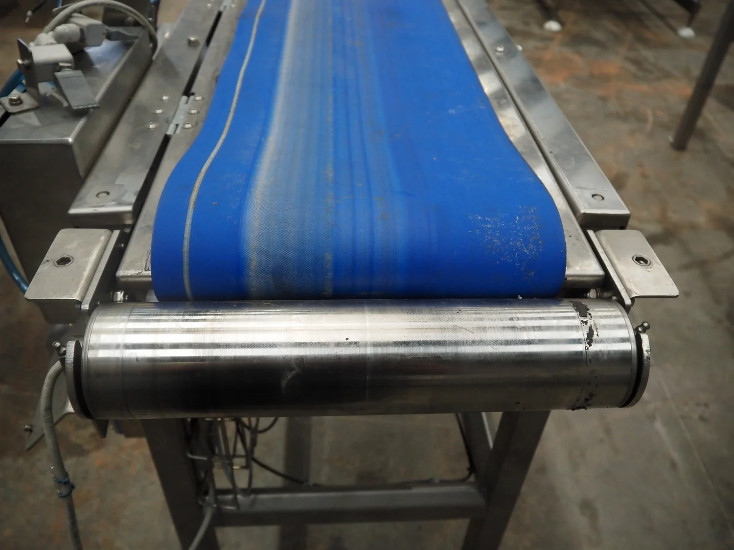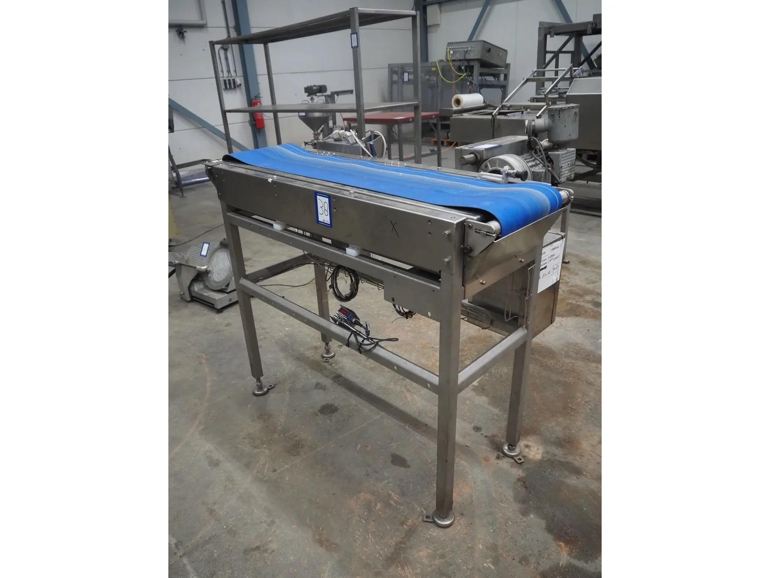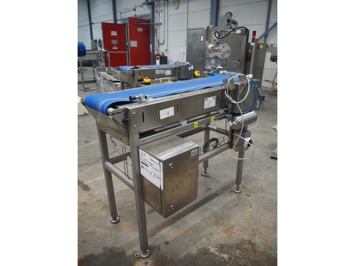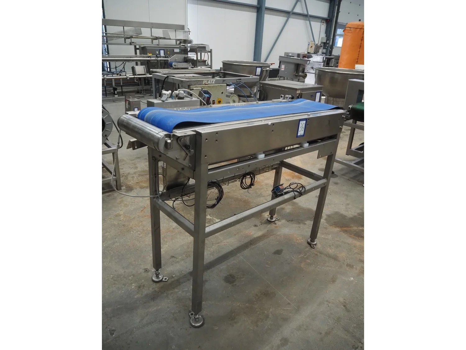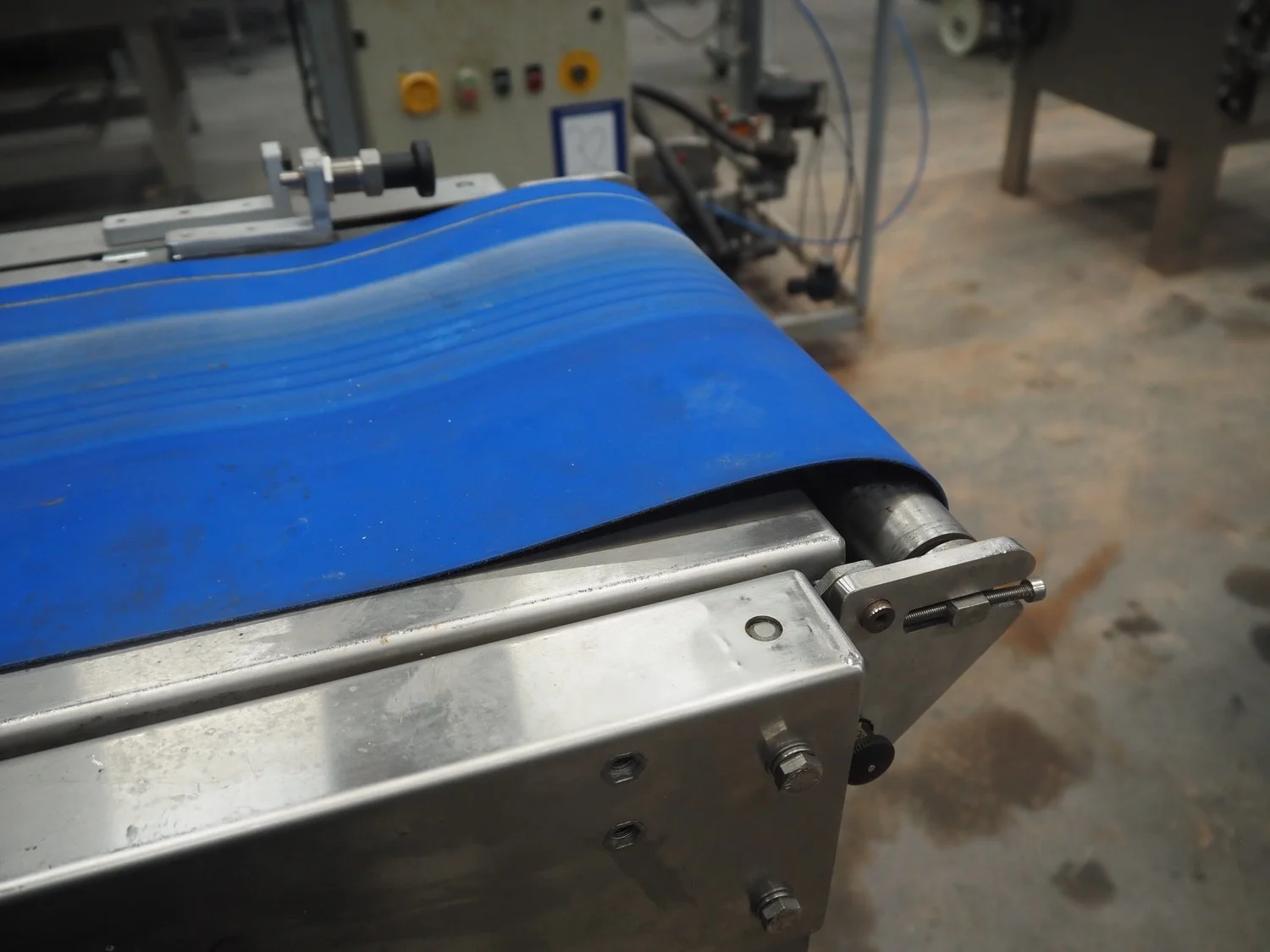 Ulma transport belt for vision system, model: 6555580, year of construction: 2017, plastic belt, belt width: 300 mm, total dimensions: 1450 mm x 700 mm x 1240 mm.