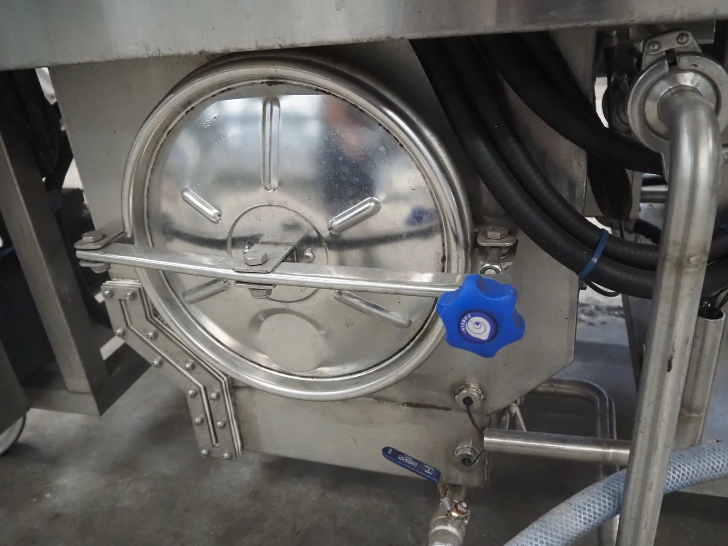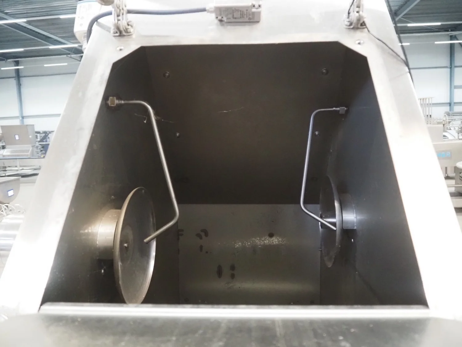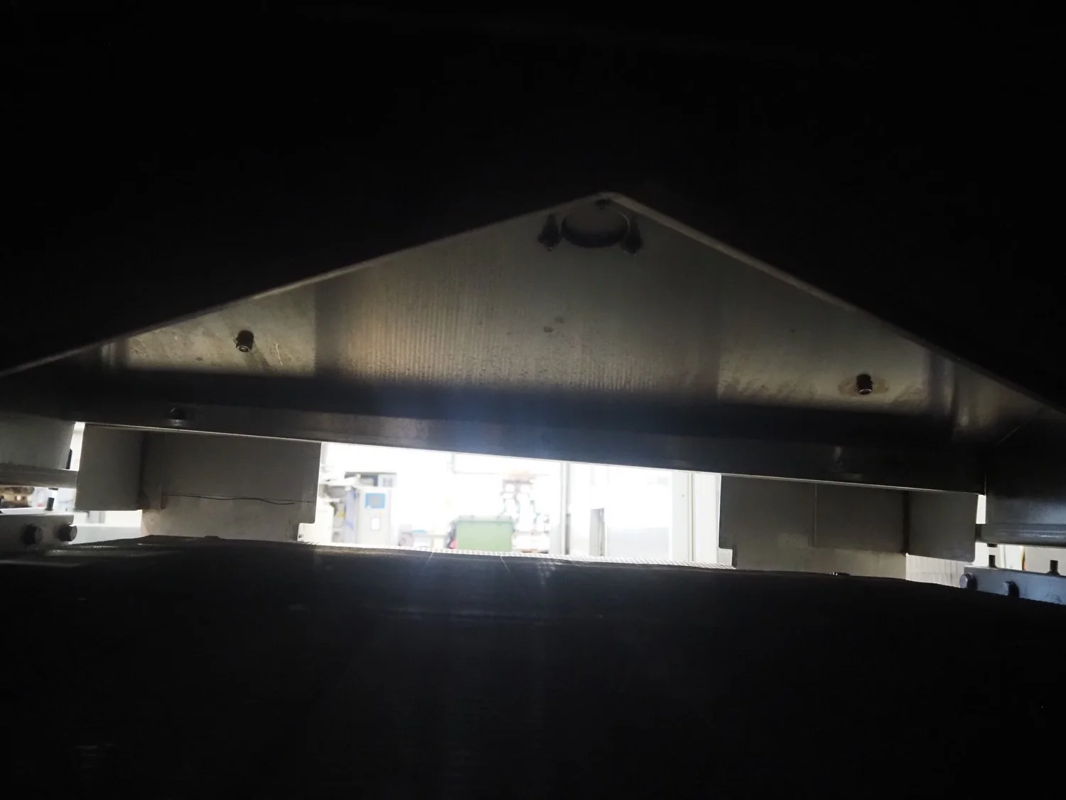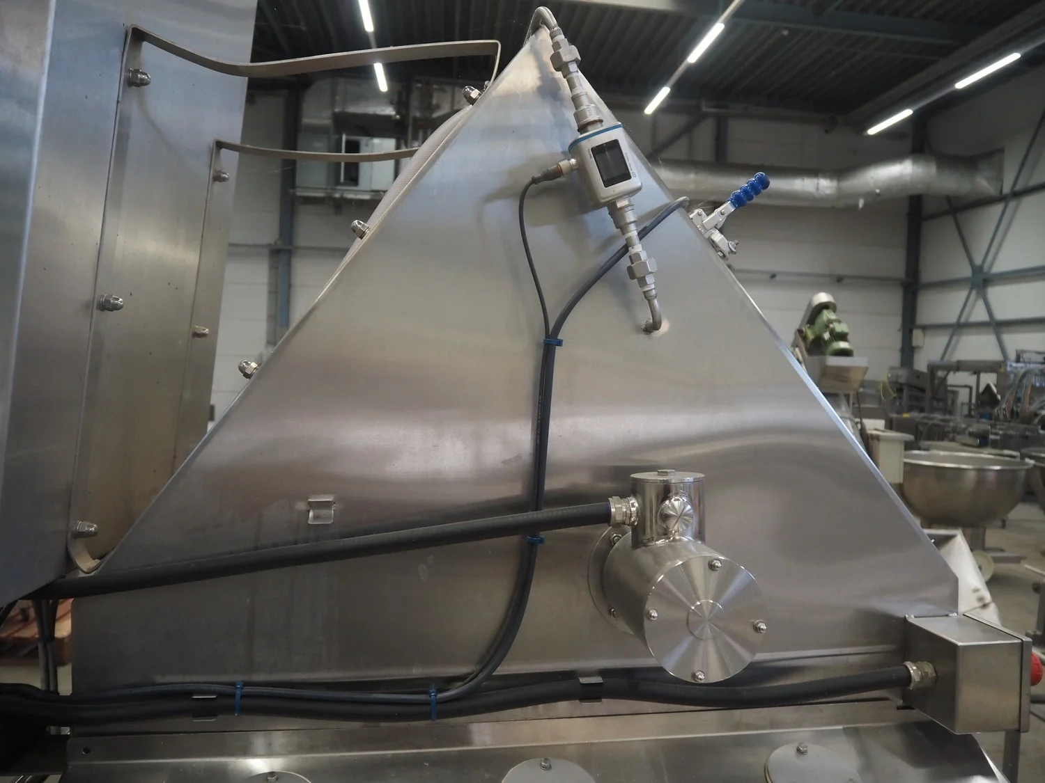 Mobile glazing machine, s/s mesh belt, belt width: 800 mm, total dimensions: 1700 mm x 1550 mm x 2440 mm.