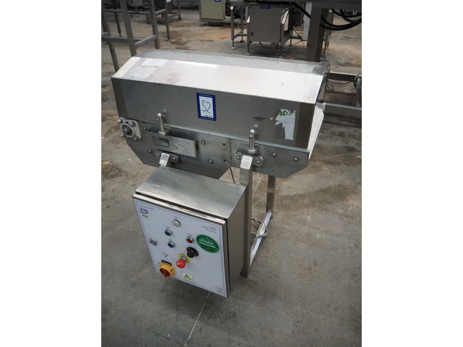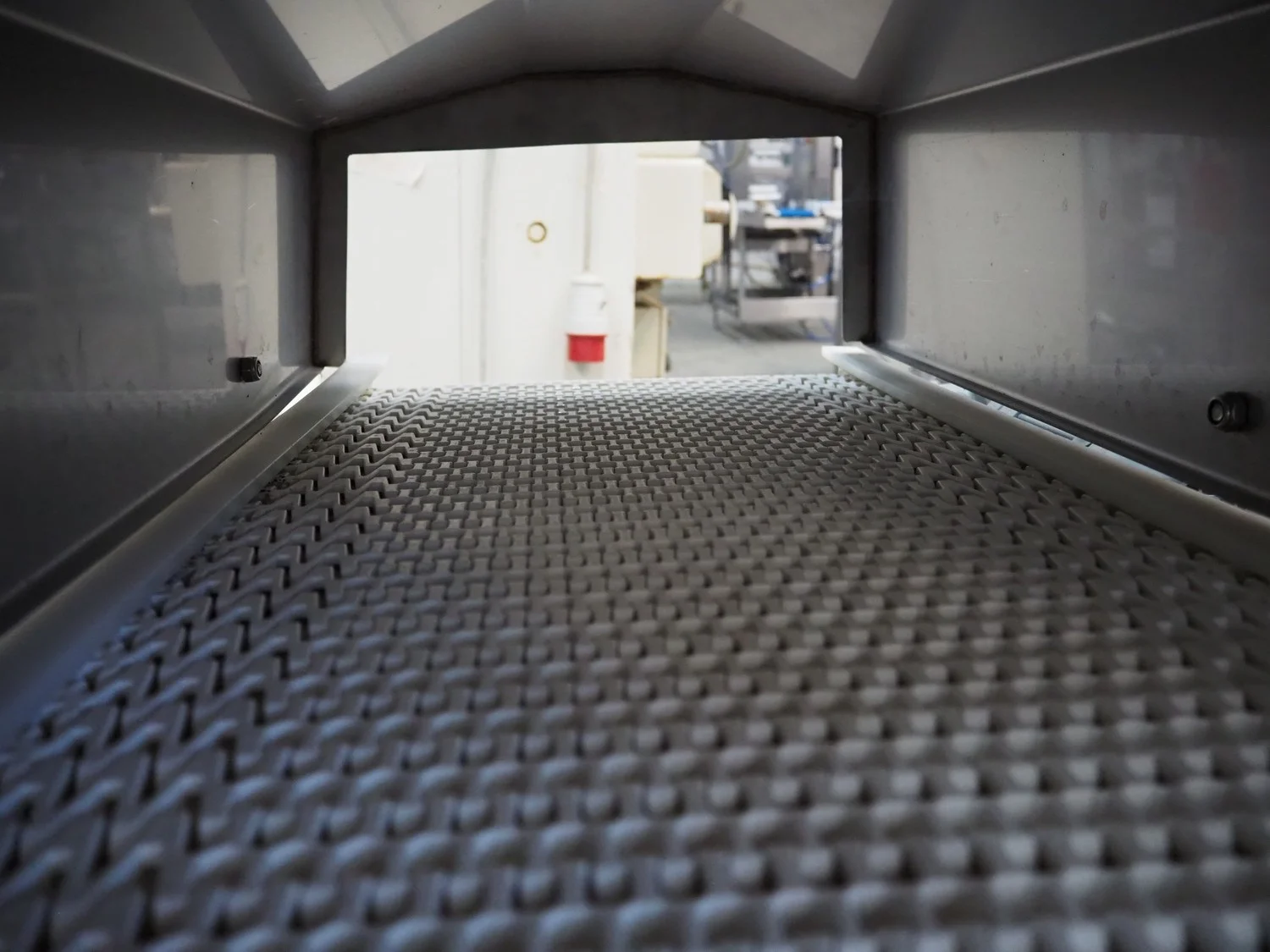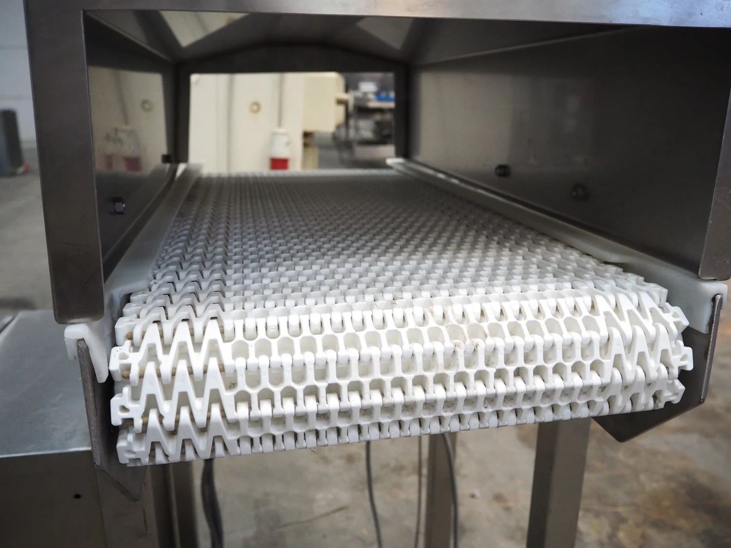 Blackrow transport belt, type: tray transfer bend conveyor, serial number: 5018-127227, year of construction: 2015, s/s frame, plastic belt, belt width: 350 mm, total dimensions: 850 mm x 850 mm x 1000 mm.