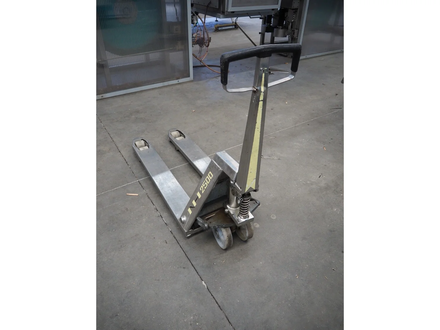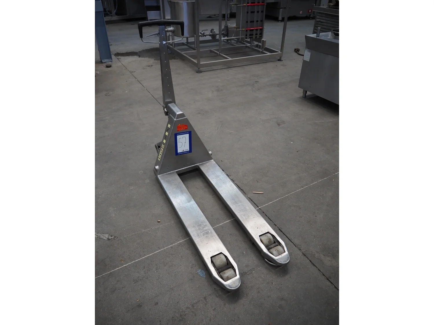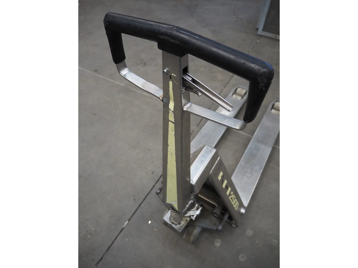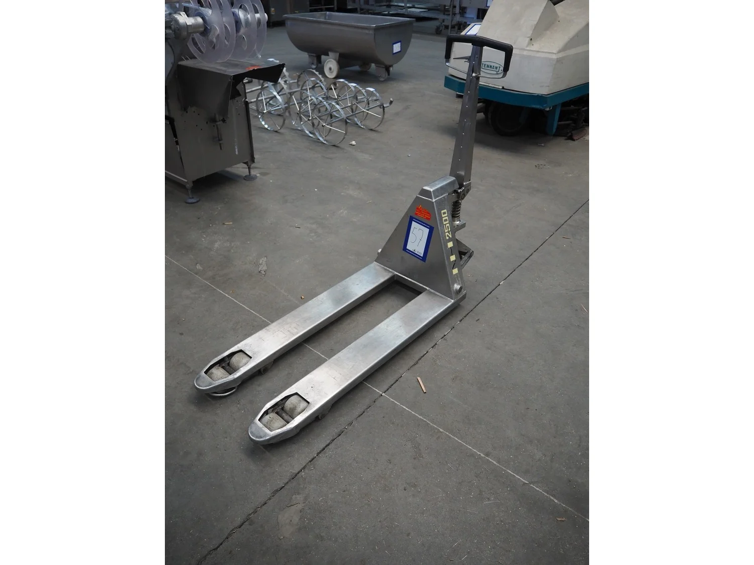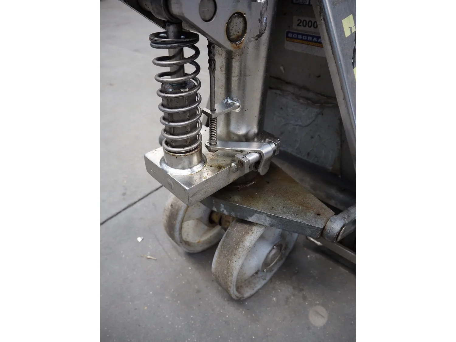 Bosgraaf s/s pallet lifter, fork length: 1150 mm, total dimensions: 1500 mm x 550 mm x 1200 mm. Technical condition unknown.