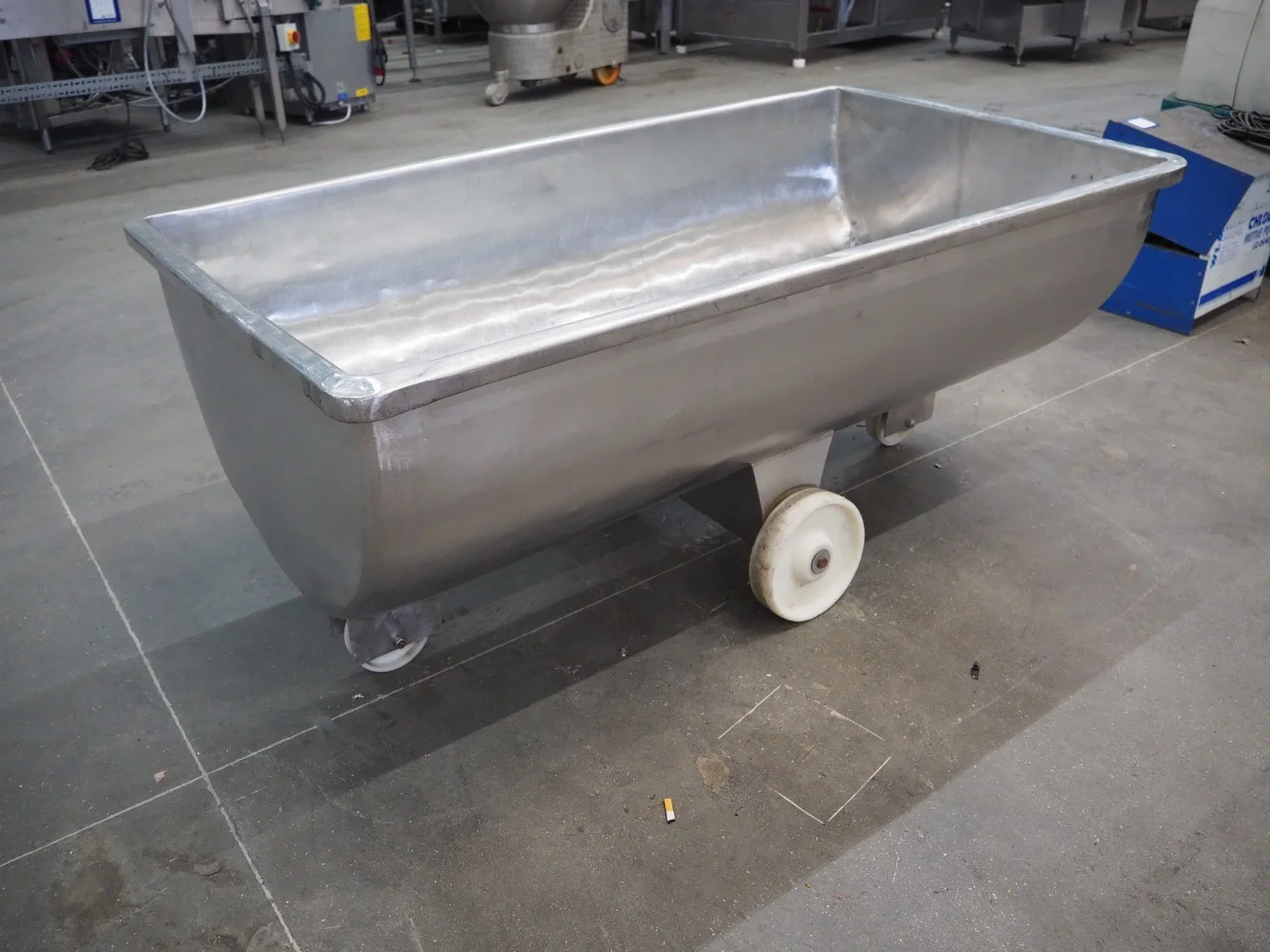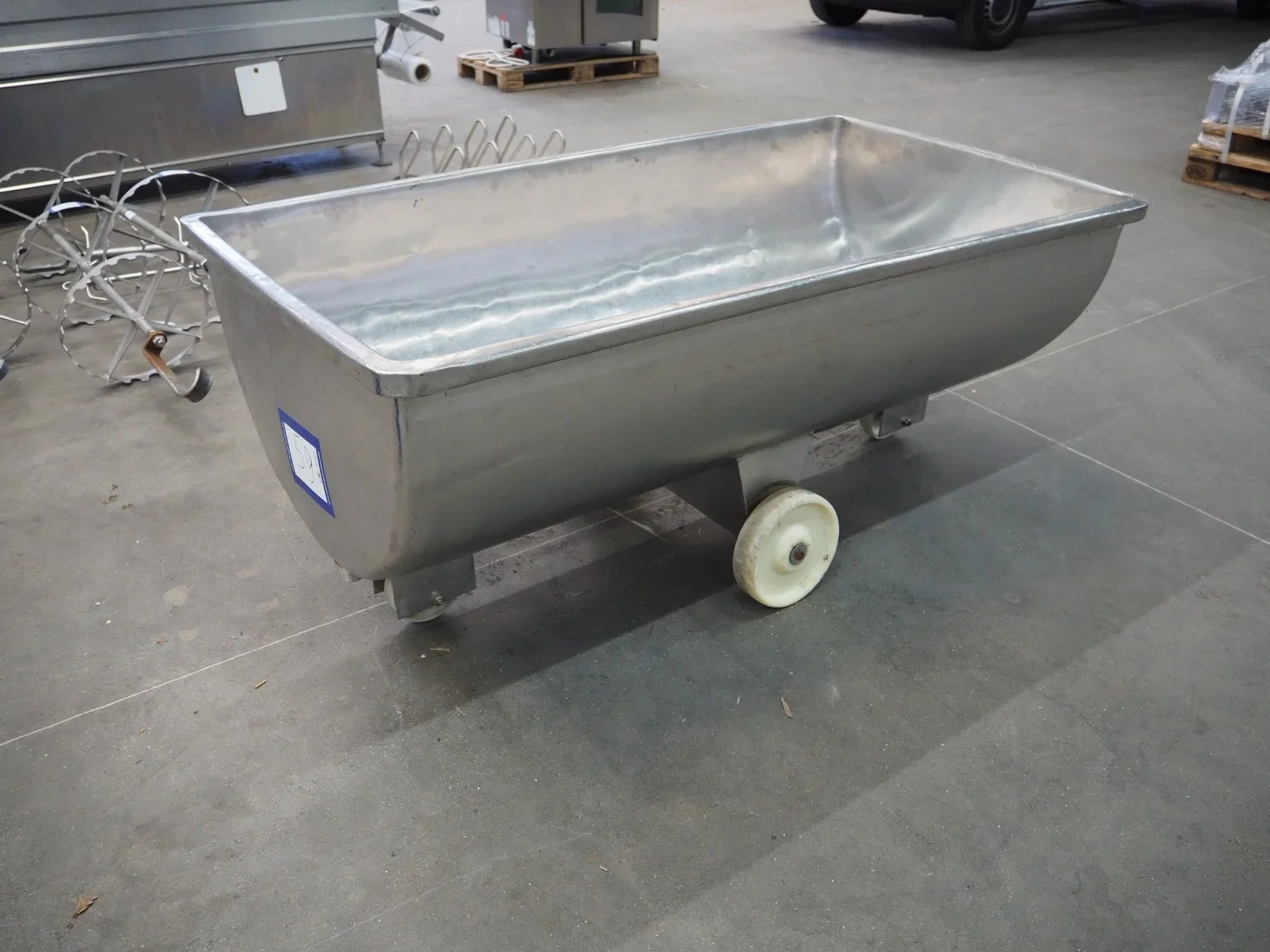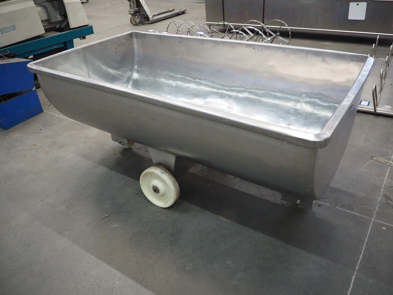 Mobile s/s tub, dimensions: 1720 mm x 950 mm x 740 mm.