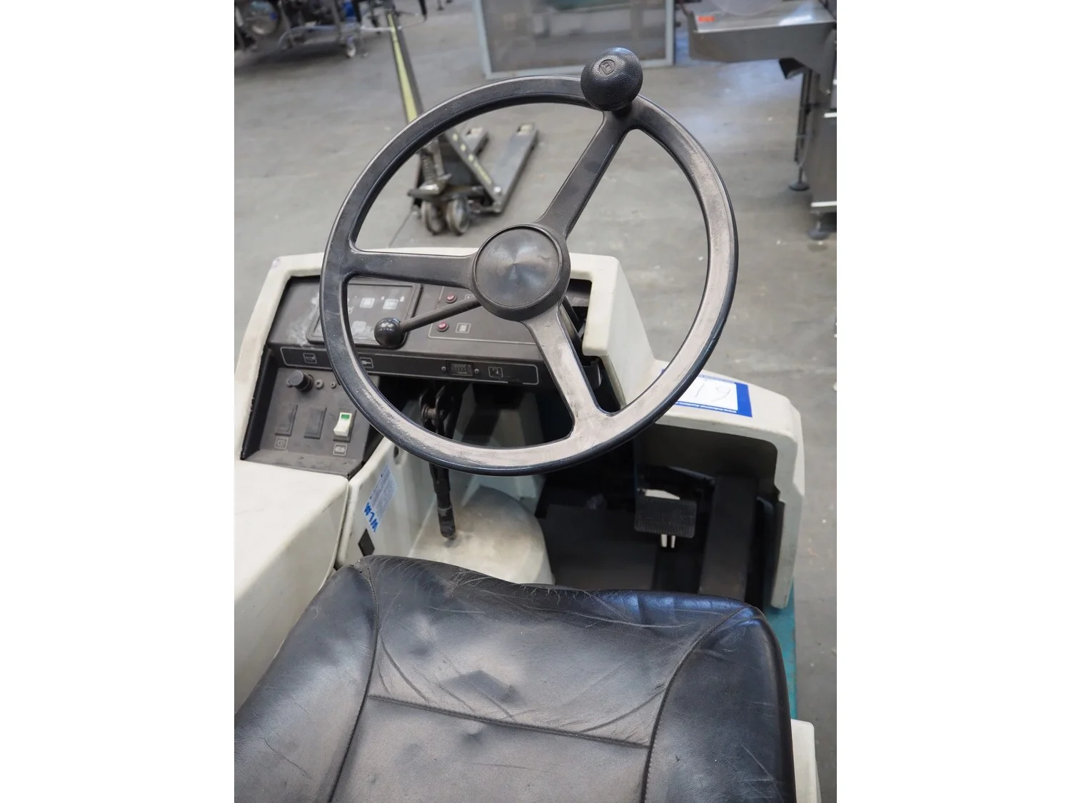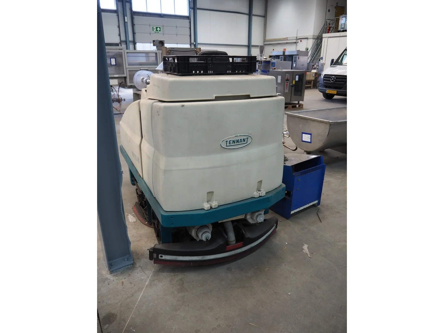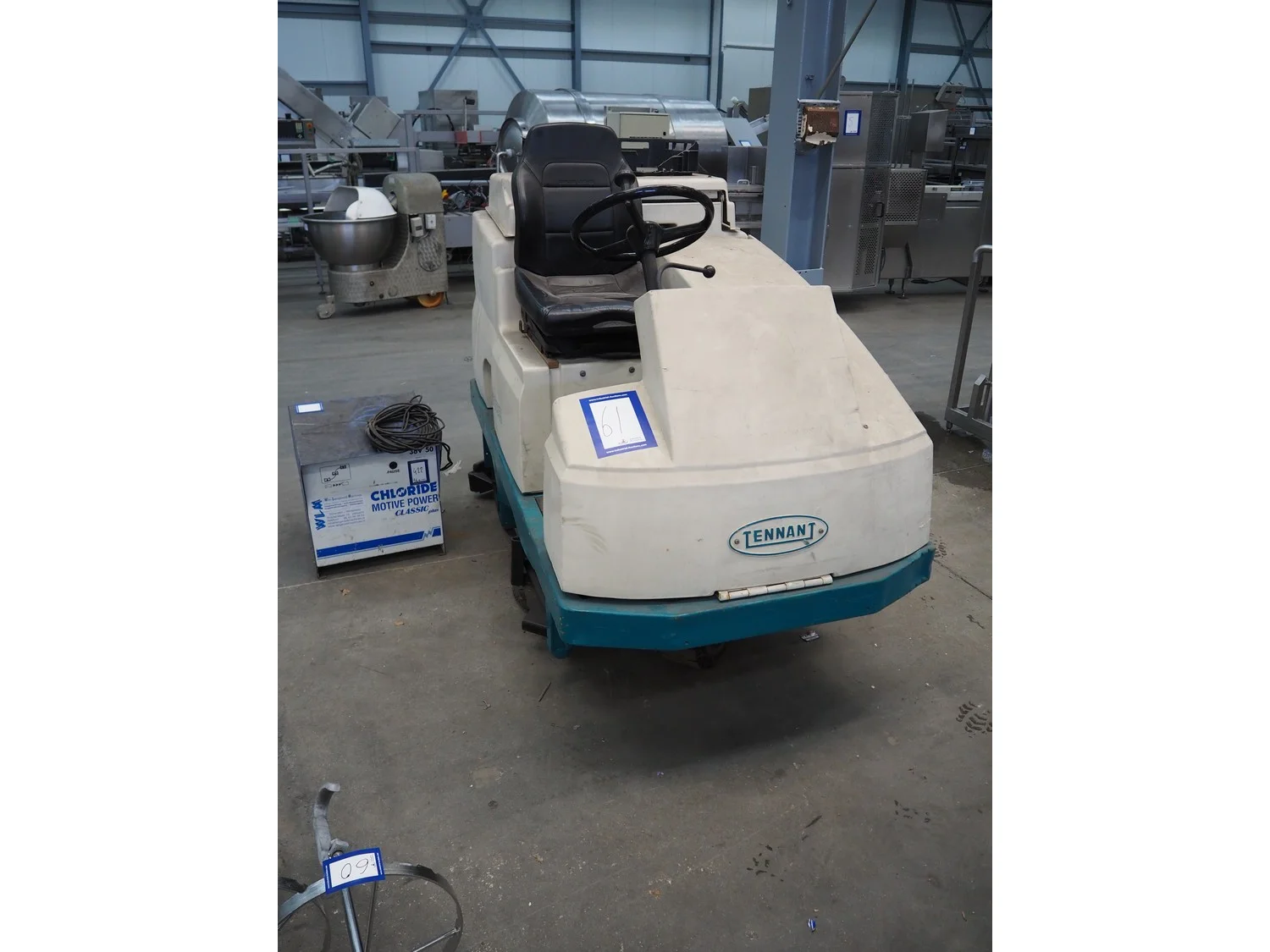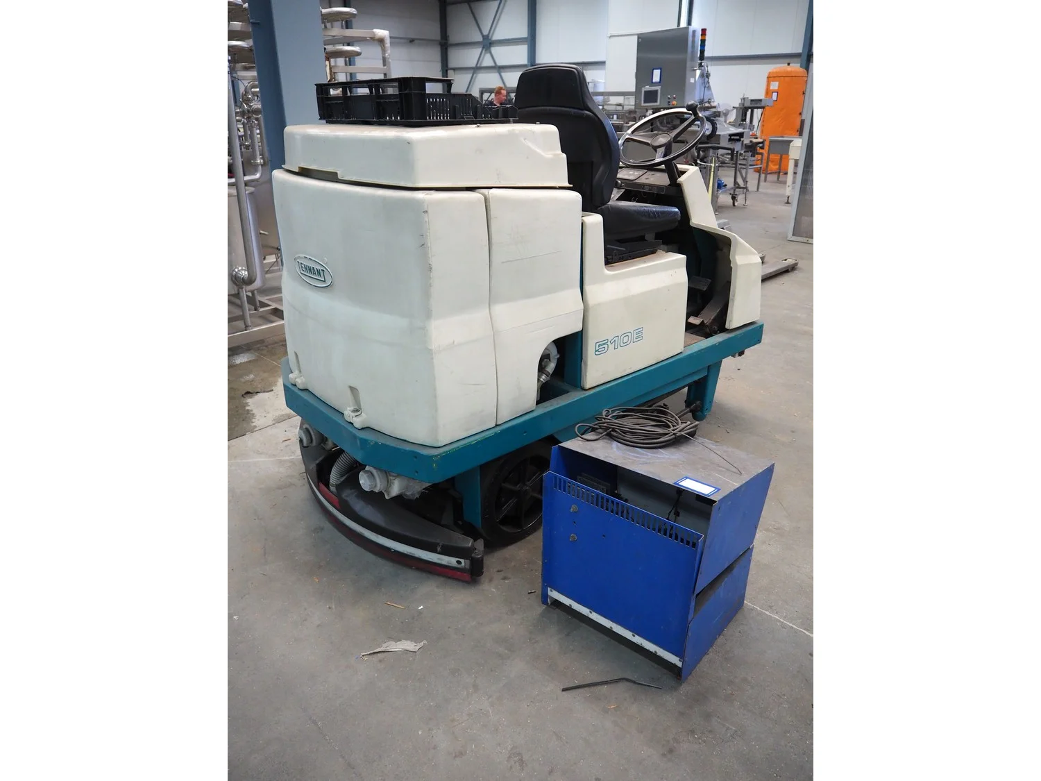 Tennant floor scrubbing machine, model: 510E, dimensions: 1200 mm x 2100 mm x 1600 mm. With Chloride motive power battery charger, 36 V.